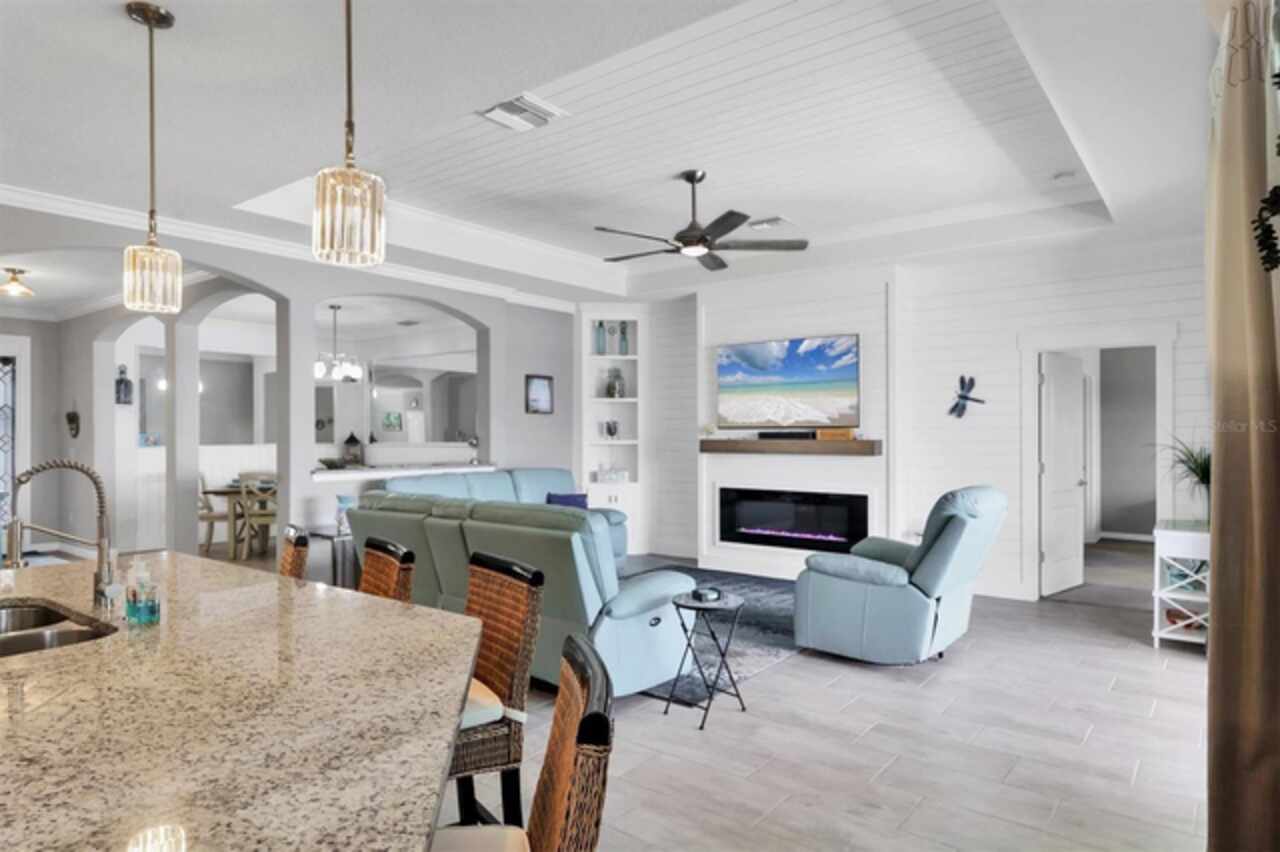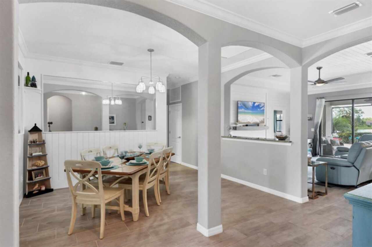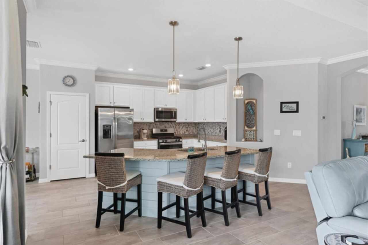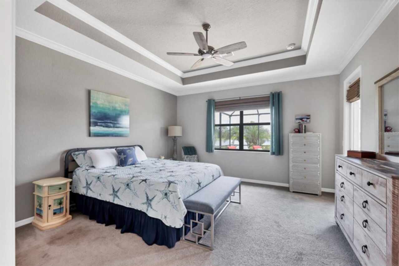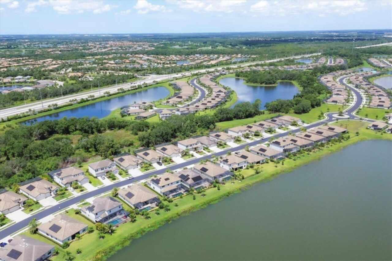 Welcome to your Florida dream home in Polo Run — the first solar-powered neighborhood in Lakewood Ranch. This stunning Lennar Princeton II model offers a blend of luxury, energy efficiency and peace of mind, all set on a premium homesite with breathtaking sunrise and sunset views over the water. This home features four spacious bedrooms and two baths within an open floor plan. Elegant architectural details include arched doorways, crown molding, neutral tile flooring and tray ceiling with custom wood inlays. This home is designed for gathering with the central, airy great room, featuring a newly installed shiplap accent wall and built-in electric fireplace with shelving (2023). Right off the great room, the kitchen offers a setting for entertaining with its angled island, pendant lighting, white cabinetry, stainless steel appliances and a cozy breakfast nook overlooking the pool. Sliding glass doors lead to an expansive paver lanai where you can relax beside your private saltwater pool and spa, heated by solar power and updated with a new pool pump in 2023. The lanai offers spectacular water views and a tranquil setting to enjoy morning coffee and evening sunsets. The serene primary suite also enjoys sweeping lake views and features a tray ceiling, large walk-in closet and a spacious en-suite bath with dual sinks and a walk-in shower. Three additional bedrooms and a guest bath offer comfort and flexibility for family and guests. This home is filled with upgrades, including a new HVAC system and Halo UV light air purifier installed in 2023, a tankless water heater, a water softener, hurricane shutters, and a whole-home gas generator for added security and efficiency. Curb appeal abounds with a tasteful stone façade, paver driveway and lush tropical landscaping, all maintained by the HOA. A spacious three-car garage provides plenty of room for vehicles and storage. Polo Run residents enjoy a vibrant, maintenance-free lifestyle with access to resort-style amenities, including a clubhouse, resort-style pool, fitness center, bocce ball, tennis, pickleball and basketball courts. The community also features a dog park, children's playground, and a full calendar of social activities like exercise classes, water aerobics, trivia nights and card games. Conveniently near shopping, dining and with quick access to Interstate 75, this solar-powered home offers luxury, location and peace of mind in one of Lakewood Ranch’s premier communities. Don’t miss your opportunity to live beautifully and sustainably in Polo Run and schedule your private tour today.