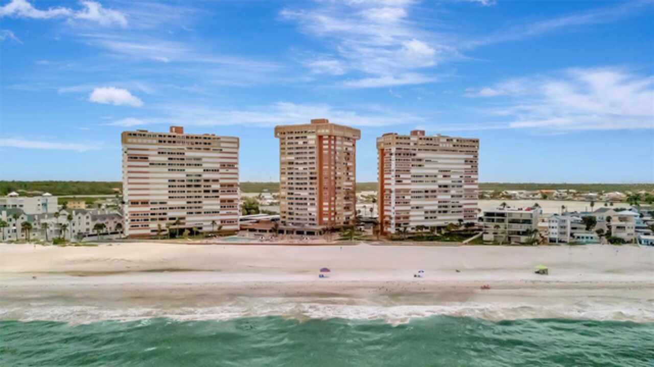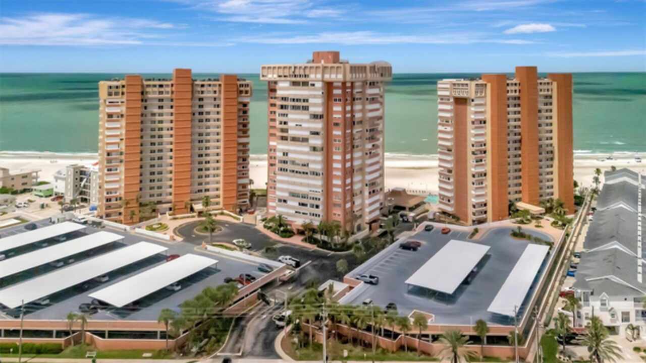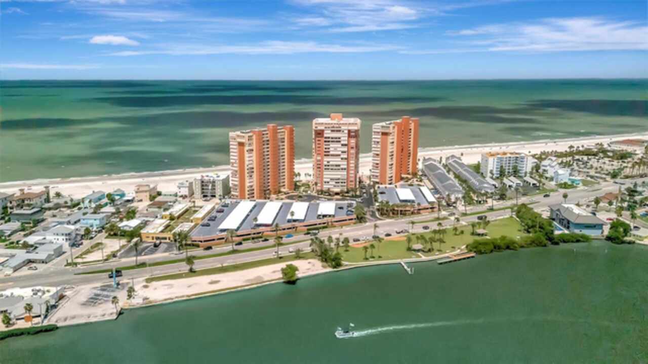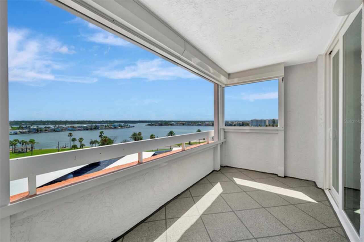Experience the ultimate coastal lifestyle in this rare southwest corner residence at Redington Towers, offering sweeping water views of both the Gulf of Mexico and the Intracoastal Waterway. This two-bedroom, two-bath retreat is perfectly positioned to capture morning sunrises over the Intracoastal and evening sunsets over the Gulf from three private balconies—an ideal setting for your morning coffee or evening glass of wine. Inside, the open-concept kitchen is a chef’s dream with sleek granite countertops, stainless steel appliances, abundant cabinetry, and a convenient breakfast bar. Just off the kitchen, a charming nook provides the perfect space for a home office or cozy breakfast area, all while taking in the tranquil water views. The spacious primary suite offers a private balcony, an updated ensuite bath, and ample closet space, creating a true owner’s retreat. The second bedroom, currently set up as a home office with a Murphy bed, is equally versatile for guests or additional workspace. Modern conveniences include impact-rated sliding doors, storm shutters, and two assigned under-building parking spaces. Redington Towers offers resort-style amenities including 24/7 security at a staffed guard gate and direct private beach access via a secure beachfront walkway. Residents enjoy a heated, resort-style swimming pool with changing facilities, EV charging stations, and ample storage for bicycles, kayaks, and paddleboards. The soon-to-be-restored community center will feature a state-of-the-art fitness facility, billiards and card rooms, library, and a beachside clubhouse for social gatherings. Step outside the gates and you are minutes from local parks, restaurants, and shops, with Boca Ciega Millennium Park nearby for nature trails, dog parks, and kayaking. Tampa International Airport is about 45 minutes away, and the trolley makes it easy to explore Treasure Island, John’s Pass Village, and Clearwater Beach. Schedule your private showing today and discover the breathtaking beauty of Redington Towers.