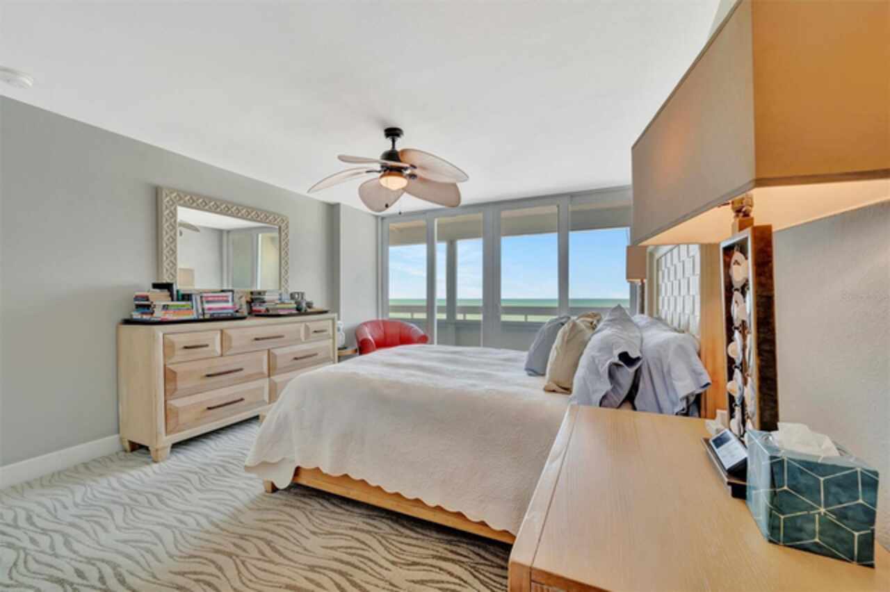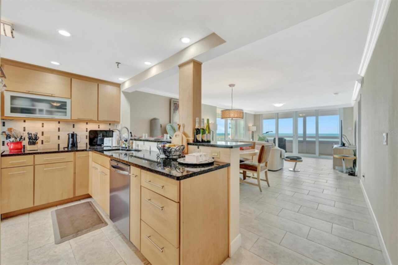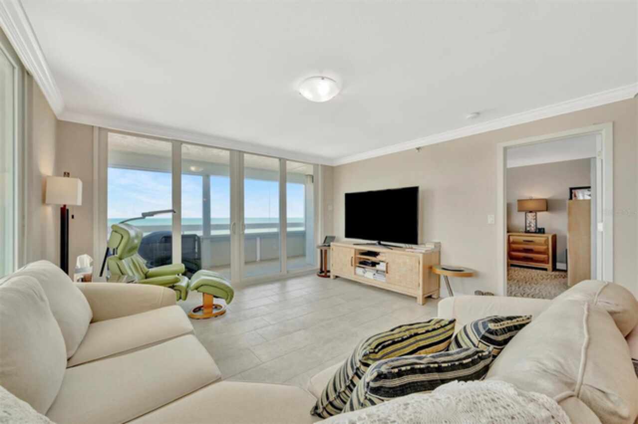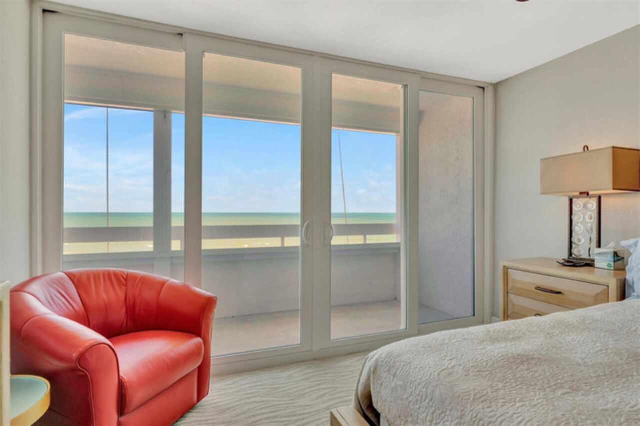 Experience the ultimate coastal lifestyle in this rare southwest corner residence at Redington Towers, offering sweeping water views of both the Gulf of Mexico and the Intracoastal Waterway. This two-bedroom, two-bath retreat is perfectly positioned to capture morning sunrises over the Intracoastal and evening sunsets over the Gulf from three private balconies—an ideal setting for your morning coffee or evening glass of wine. Inside, the open-concept kitchen is a chef’s dream with sleek granite countertops, stainless steel appliances, abundant cabinetry, and a convenient breakfast bar. Just off the kitchen, a charming nook provides the perfect space for a home office or cozy breakfast area, all while taking in the tranquil water views. The spacious primary suite offers a private balcony, an updated ensuite bath, and ample closet space, creating a true owner’s retreat. The second bedroom, currently set up as a home office with a Murphy bed, is equally versatile for guests or additional workspace. Modern conveniences include impact-rated sliding doors, storm shutters, and two assigned under-building parking spaces. Redington Towers offers resort-style amenities including 24/7 security at a staffed guard gate and direct private beach access via a secure beachfront walkway. Residents enjoy a heated, resort-style swimming pool with changing facilities, EV charging stations, and ample storage for bicycles, kayaks, and paddleboards. The soon-to-be-restored community center will feature a state-of-the-art fitness facility, billiards and card rooms, library, and a beachside clubhouse for social gatherings. Step outside the gates and you are minutes from local parks, restaurants, and shops, with Boca Ciega Millennium Park nearby for nature trails, dog parks, and kayaking. Tampa International Airport is about 45 minutes away, and the trolley makes it easy to explore Treasure Island, John’s Pass Village, and Clearwater Beach. Schedule your private showing today and discover the breathtaking beauty of Redington Towers.