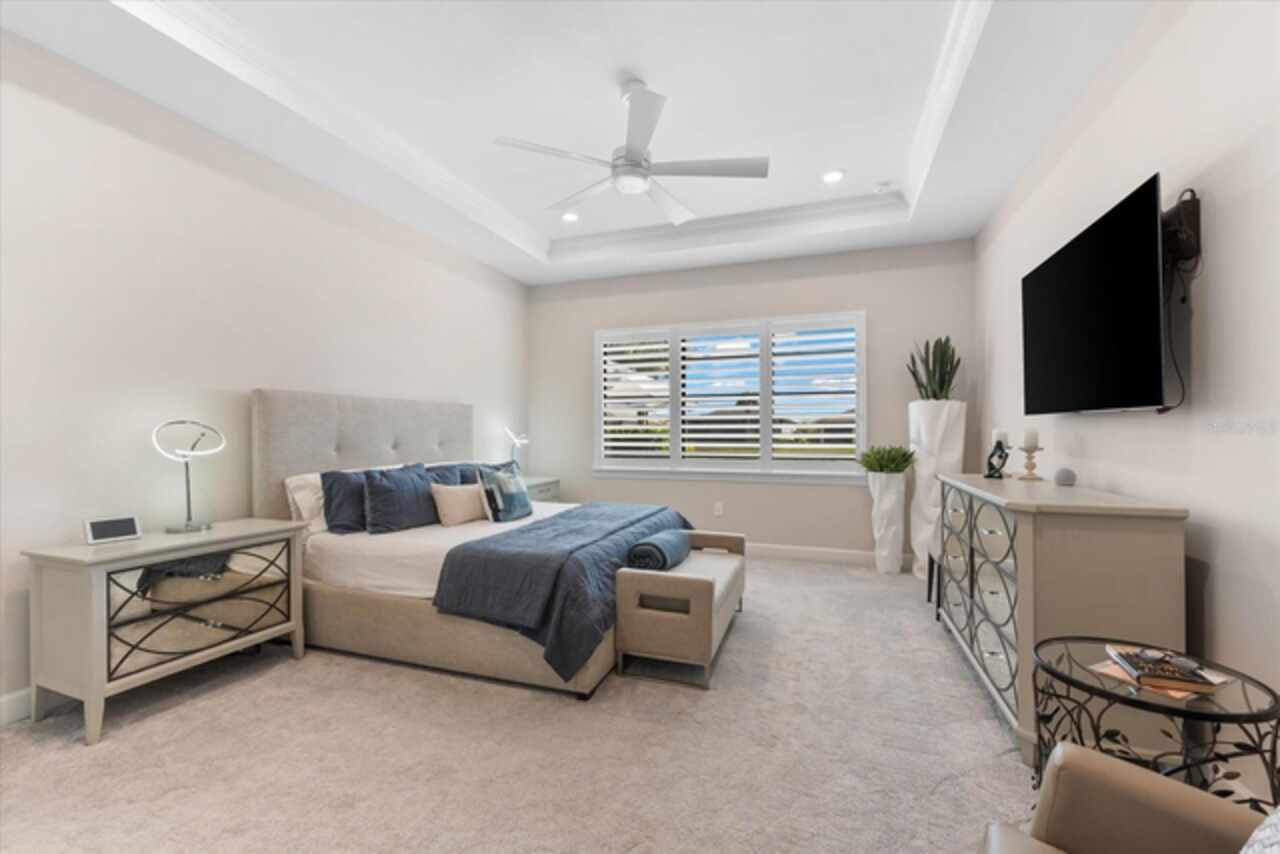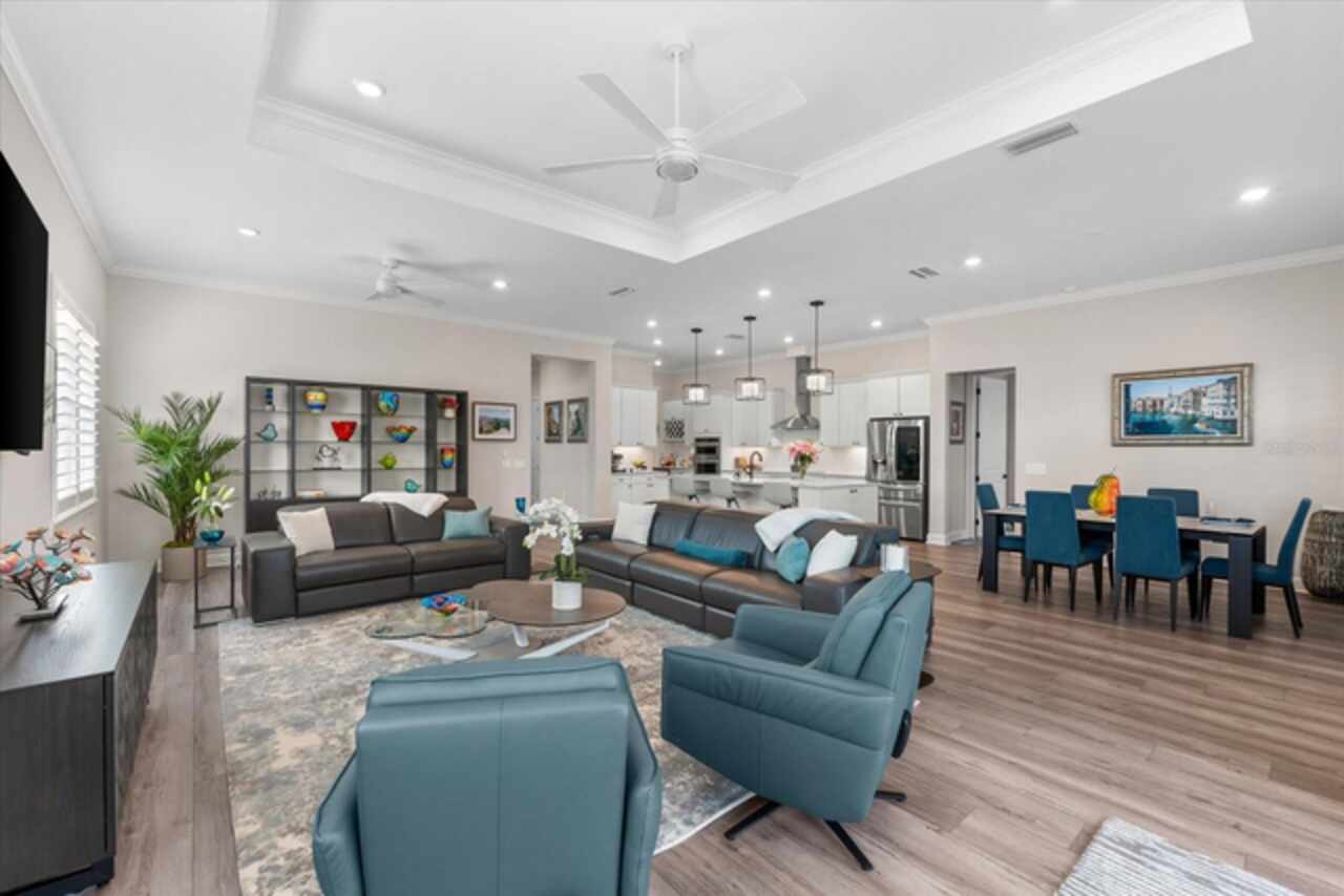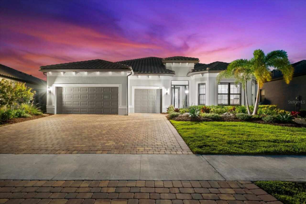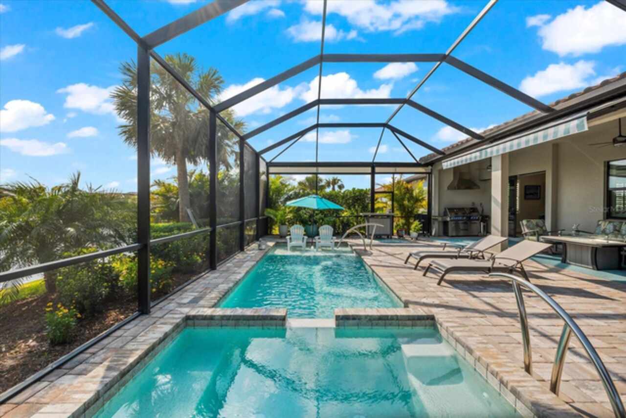 WHOLE HOUSE GENERATOR* IMPACT DOORS AND WINDOWS* PRICED TO SELL*Modern Comfort Meets Resort-Style Living in Del Webb Lakewood Ranch. Welcome to easy, elegant living in the heart of Del Webb Lakewood Ranch—one of the area's most desirable 55+ communities. Set on a premium south-facing waterfront lot, this beautifully upgraded Renown floor plan offers everything you need for comfort, style, and low-maintenance Florida living. Step inside to discover an open, airy layout with 3 spacious bedrooms, 3.5 bathrooms, and a flexible bonus room—perfect for a home office, hobby space, or additional living area. Thoughtful upgrades shine throughout the home, from tray ceilings and crown molding to plantation shutters and impact-resistant windows and doors. The gourmet kitchen is a standout feature, complete with Bosch induction cooktop, built-in double ovens, stainless steel range hood, 2-zone wine fridge, wine rack, reverse osmosis system, touchless faucet, custom cabinetry, and a perfectly organized walk-in pantry. The oversized island is the heart of the home—ideal for casual dining, entertaining, or prepping meals in style. The owner’s suite is your personal retreat, featuring a luxurious bath with dual vanities, an oversized walk-in shower, private water closet, and two custom walk-in closets. Two additional guest suites, each with their own private bath and walk-in closet, offer comfort and privacy for visitors. Enjoy peace of mind with a whole-house 24kW generator, water softener system, and an extended 3-car garage with built-in storage and epoxy floors. A separate powder room, drop zone, and large laundry room add to the home’s smart and functional design. Love the outdoors? You’ll appreciate the custom-designed heated saltwater pool and spa, extended brick-paver lanai, automatic sunshades, awning, and panoramic water views—perfect for relaxing or entertaining year-round. Large pocket sliding doors open wide to blend indoor and outdoor living effortlessly. Living in Del Webb Lakewood Ranch means more than just a beautiful home—it’s a lifestyle. Enjoy access to top-tier amenities including 6 tennis courts, 8 pickleball courts, bocce ball, a fitness center with group classes, a resort-style and lap pool, on-site restaurant and bar, and endless social opportunities organized by a full-time Lifestyle Director. With close proximity to Gulf Coast beaches, airports, shopping, dining, and culture, this home truly has it all. Move-in ready and meticulously maintained—don’t miss the opportunity to make it yours.