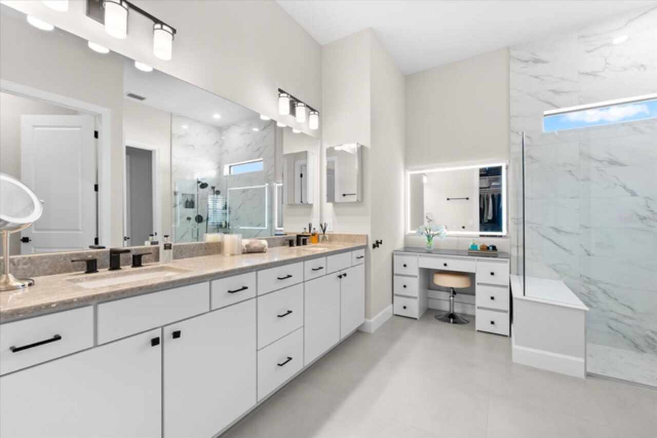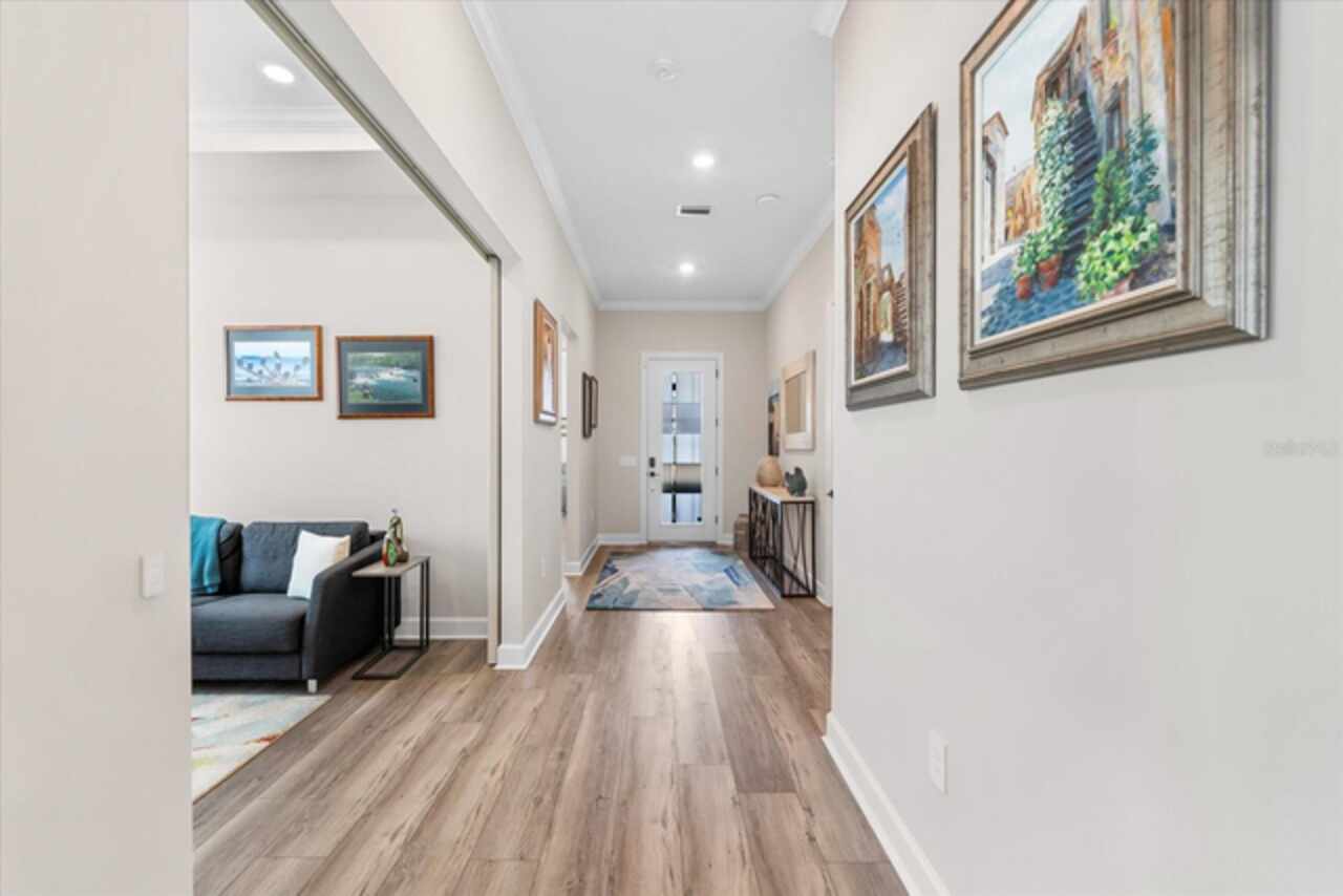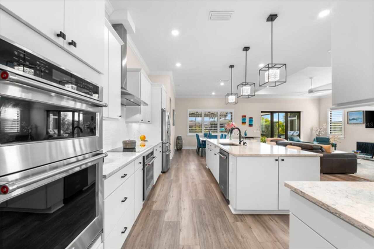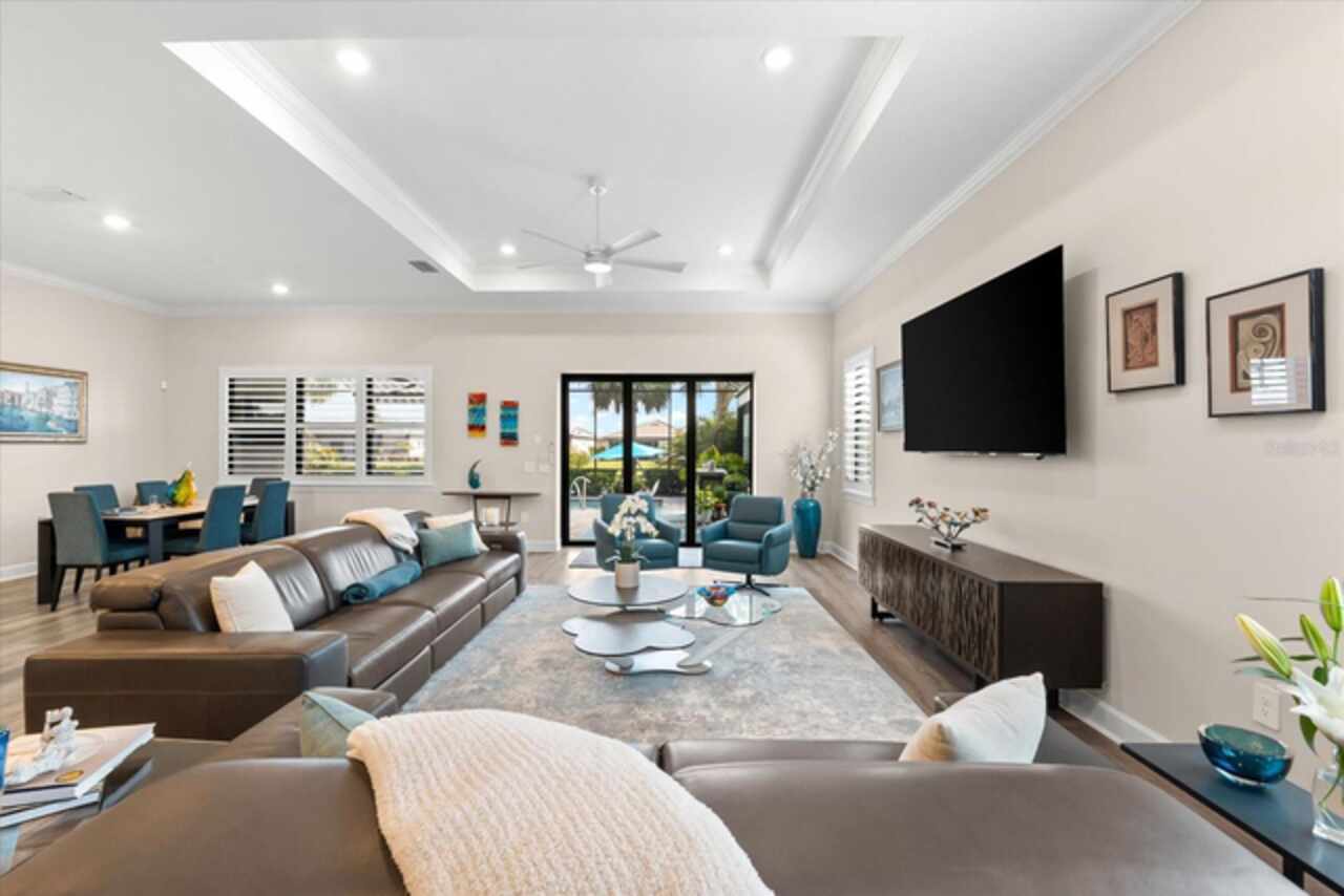 WHOLE HOUSE GENERATOR* IMPACT DOORS AND WINDOWS* PRICED TO SELL*Modern Comfort Meets Resort-Style Living in Del Webb Lakewood Ranch. Welcome to easy, elegant living in the heart of Del Webb Lakewood Ranch—one of the area's most desirable 55+ communities. Set on a premium south-facing waterfront lot, this beautifully upgraded Renown floor plan offers everything you need for comfort, style, and low-maintenance Florida living. Step inside to discover an open, airy layout with 3 spacious bedrooms, 3.5 bathrooms, and a flexible bonus room—perfect for a home office, hobby space, or additional living area. Thoughtful upgrades shine throughout the home, from tray ceilings and crown molding to plantation shutters and impact-resistant windows and doors. The gourmet kitchen is a standout feature, complete with Bosch induction cooktop, built-in double ovens, stainless steel range hood, 2-zone wine fridge, wine rack, reverse osmosis system, touchless faucet, custom cabinetry, and a perfectly organized walk-in pantry. The oversized island is the heart of the home—ideal for casual dining, entertaining, or prepping meals in style. The owner’s suite is your personal retreat, featuring a luxurious bath with dual vanities, an oversized walk-in shower, private water closet, and two custom walk-in closets. Two additional guest suites, each with their own private bath and walk-in closet, offer comfort and privacy for visitors. Enjoy peace of mind with a whole-house 24kW generator, water softener system, and an extended 3-car garage with built-in storage and epoxy floors. A separate powder room, drop zone, and large laundry room add to the home’s smart and functional design. Love the outdoors? You’ll appreciate the custom-designed heated saltwater pool and spa, extended brick-paver lanai, automatic sunshades, awning, and panoramic water views—perfect for relaxing or entertaining year-round. Large pocket sliding doors open wide to blend indoor and outdoor living effortlessly. Living in Del Webb Lakewood Ranch means more than just a beautiful home—it’s a lifestyle. Enjoy access to top-tier amenities including 6 tennis courts, 8 pickleball courts, bocce ball, a fitness center with group classes, a resort-style and lap pool, on-site restaurant and bar, and endless social opportunities organized by a full-time Lifestyle Director. With close proximity to Gulf Coast beaches, airports, shopping, dining, and culture, this home truly has it all. Move-in ready and meticulously maintained—don’t miss the opportunity to make it yours.