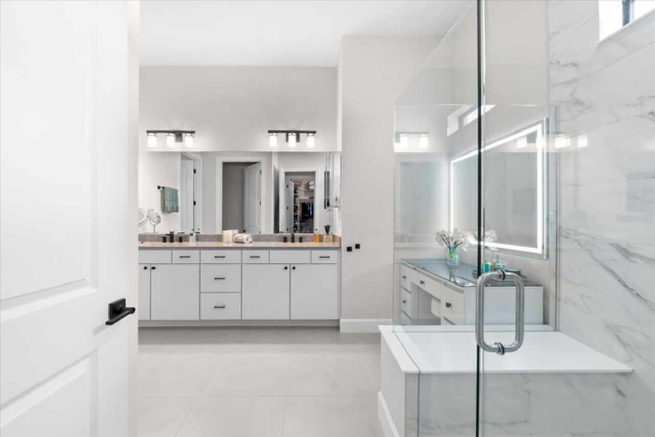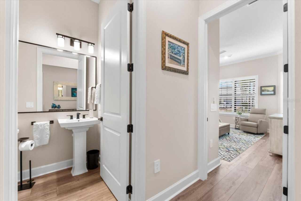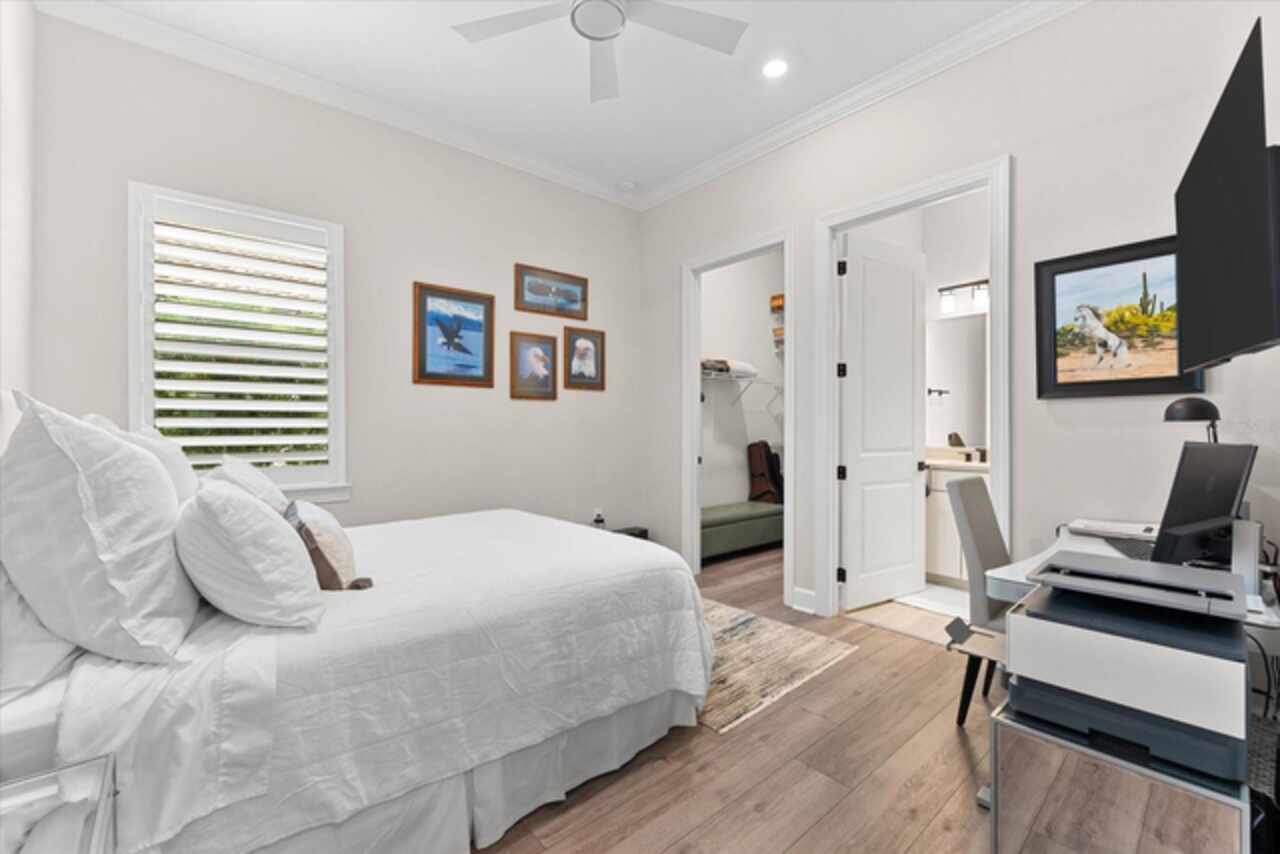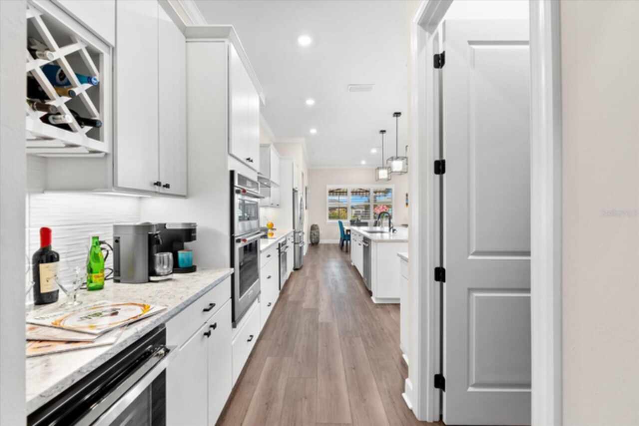 WHOLE HOUSE GENERATOR* IMPACT DOORS AND WINDOWS* PRICED TO SELL*Modern Comfort Meets Resort-Style Living in Del Webb Lakewood Ranch. Welcome to easy, elegant living in the heart of Del Webb Lakewood Ranch—one of the area's most desirable 55+ communities. Set on a premium south-facing waterfront lot, this beautifully upgraded Renown floor plan offers everything you need for comfort, style, and low-maintenance Florida living. Step inside to discover an open, airy layout with 3 spacious bedrooms, 3.5 bathrooms, and a flexible bonus room—perfect for a home office, hobby space, or additional living area. Thoughtful upgrades shine throughout the home, from tray ceilings and crown molding to plantation shutters and impact-resistant windows and doors. The gourmet kitchen is a standout feature, complete with Bosch induction cooktop, built-in double ovens, stainless steel range hood, 2-zone wine fridge, wine rack, reverse osmosis system, touchless faucet, custom cabinetry, and a perfectly organized walk-in pantry. The oversized island is the heart of the home—ideal for casual dining, entertaining, or prepping meals in style. The owner’s suite is your personal retreat, featuring a luxurious bath with dual vanities, an oversized walk-in shower, private water closet, and two custom walk-in closets. Two additional guest suites, each with their own private bath and walk-in closet, offer comfort and privacy for visitors. Enjoy peace of mind with a whole-house 24kW generator, water softener system, and an extended 3-car garage with built-in storage and epoxy floors. A separate powder room, drop zone, and large laundry room add to the home’s smart and functional design. Love the outdoors? You’ll appreciate the custom-designed heated saltwater pool and spa, extended brick-paver lanai, automatic sunshades, awning, and panoramic water views—perfect for relaxing or entertaining year-round. Large pocket sliding doors open wide to blend indoor and outdoor living effortlessly. Living in Del Webb Lakewood Ranch means more than just a beautiful home—it’s a lifestyle. Enjoy access to top-tier amenities including 6 tennis courts, 8 pickleball courts, bocce ball, a fitness center with group classes, a resort-style and lap pool, on-site restaurant and bar, and endless social opportunities organized by a full-time Lifestyle Director. With close proximity to Gulf Coast beaches, airports, shopping, dining, and culture, this home truly has it all. Move-in ready and meticulously maintained—don’t miss the opportunity to make it yours.