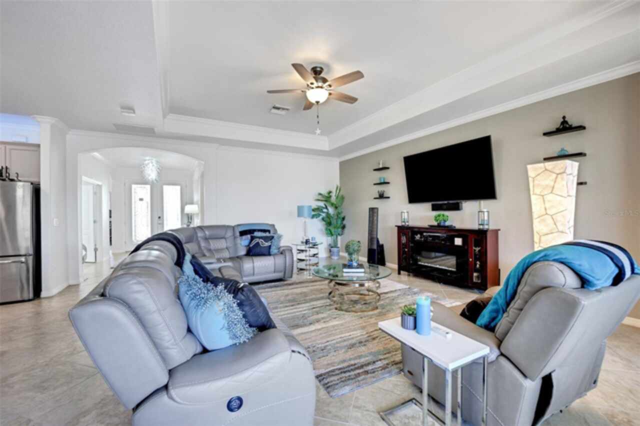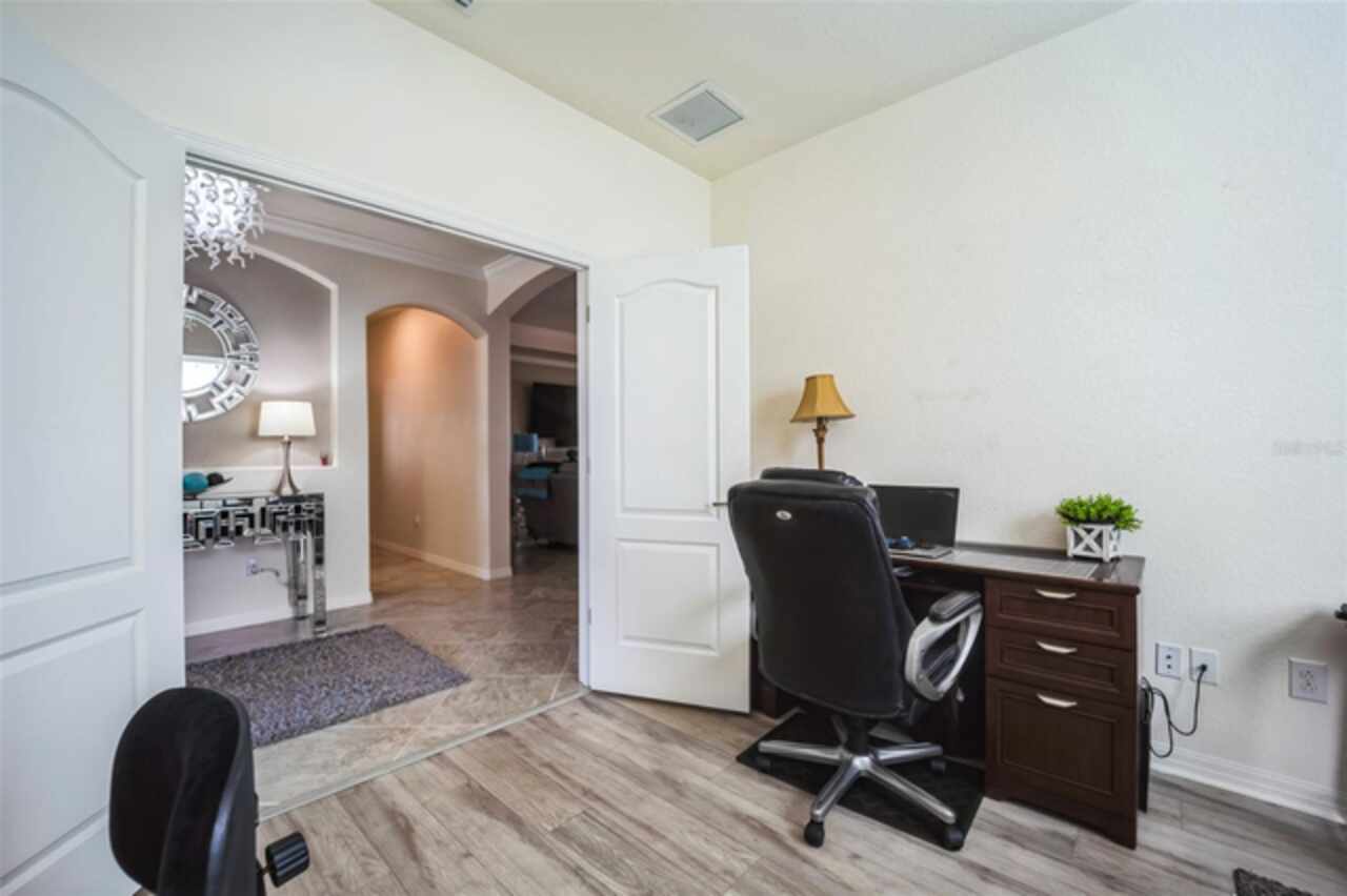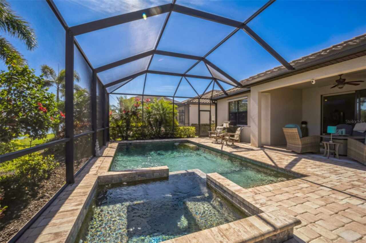 Under contract-accepting backup offers. Welcome to your Florida dream house. This beautiful and highly desirable Summerville II is situated in the amazing, master-planned community of Lakewood Ranch. As you enter the home, the vacation ambiance of this open-floor plan is immediately apparent with its large glass slider that provides views of the pool, lush landscaping, and a lake. This home has a lot of exciting features including 3 bedrooms, 3 full baths, a bonus room, and a 3-car garage. You'll find granite countertops in the kitchen and laundry, and beautiful white quartzite in all of the bathrooms. Luxury vinyl plank flooring is in all bedrooms and the bonus room, with ceramic tiles throughout the rest of the home. This wonderfully appointed home has tray ceilings, crown molding and an oversize kitchen that features a large dining area, almost 12' of island seating, stainless steel appliances, and a large ungraded kitchen sink and faucet...all perfect for entertaining guests. The spacious primary bedroom suite is gorgeously appointed with a tray ceiling, crown molding, a large soaking tub, a large walk-in shower, vanities on both sides of the bathroom, and you'll absolutely love the 2 large, walk-in closets with built-ins to maximize your storage space. Ceiling fans are located throughout the home. Polo Run is a gated neighborhood and amenities include a large, resort style heated pool, a fitness room, a yoga room, bocce ball, basketball courts, tennis courts, pickleball courts, a dog park, and a community center with grills, a playground and an outdoor shower. Lakewood Ranch is a fantastic community that has something for everyone including great shopping, fine dining, easy access to SRQ airport, and it's just a short drive to Siesta Key, one of the top beaches in America. You'll love this community. Please schedule your appointment to visit today. You'll be happy that you did.