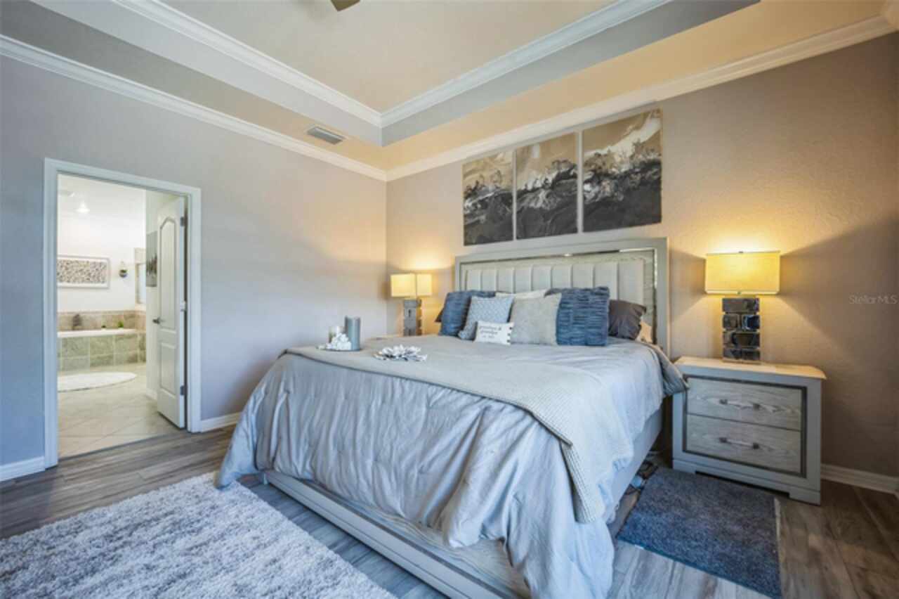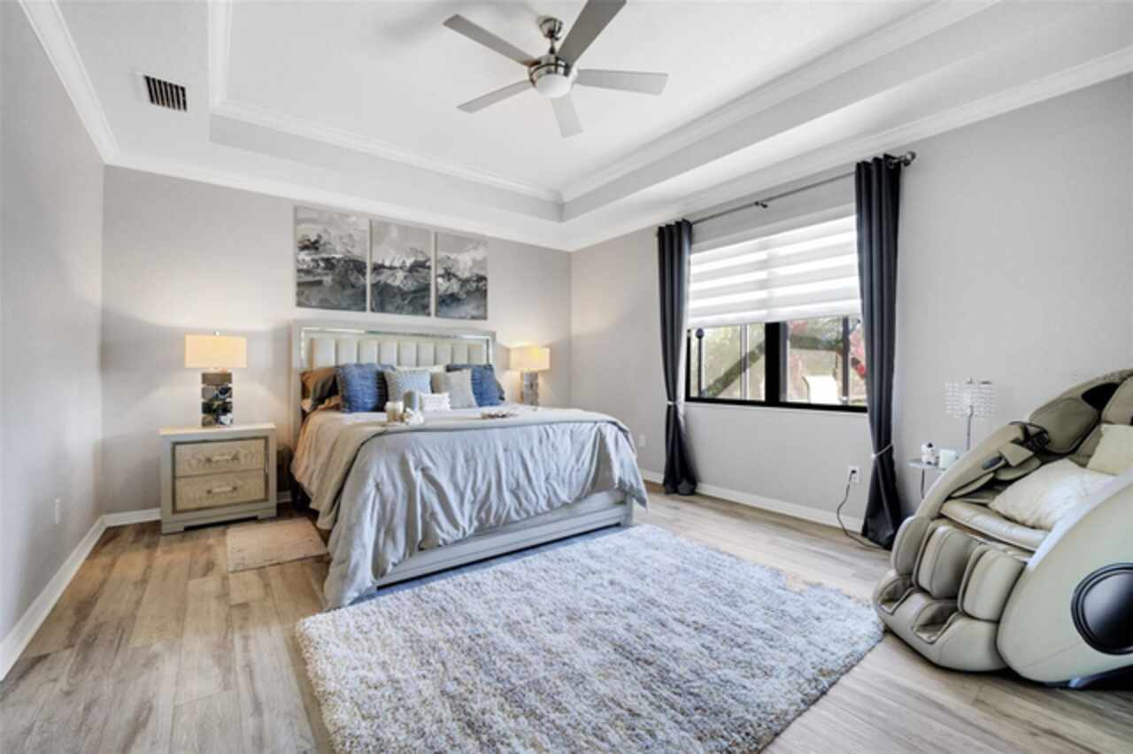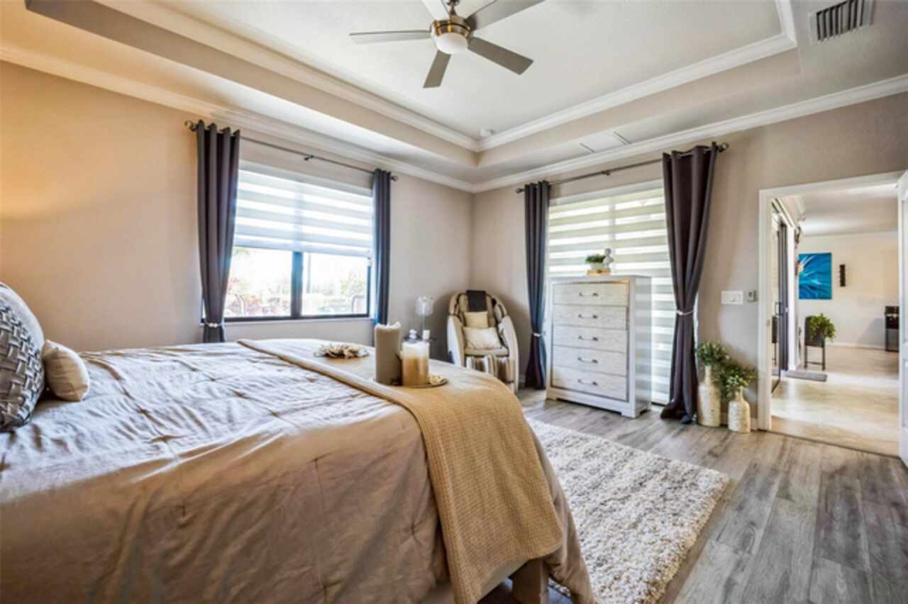 Under contract-accepting backup offers. Welcome to your Florida dream house. This beautiful and highly desirable Summerville II is situated in the amazing, master-planned community of Lakewood Ranch. As you enter the home, the vacation ambiance of this open-floor plan is immediately apparent with its large glass slider that provides views of the pool, lush landscaping, and a lake. This home has a lot of exciting features including 3 bedrooms, 3 full baths, a bonus room, and a 3-car garage. You'll find granite countertops in the kitchen and laundry, and beautiful white quartzite in all of the bathrooms. Luxury vinyl plank flooring is in all bedrooms and the bonus room, with ceramic tiles throughout the rest of the home. This wonderfully appointed home has tray ceilings, crown molding and an oversize kitchen that features a large dining area, almost 12' of island seating, stainless steel appliances, and a large ungraded kitchen sink and faucet...all perfect for entertaining guests. The spacious primary bedroom suite is gorgeously appointed with a tray ceiling, crown molding, a large soaking tub, a large walk-in shower, vanities on both sides of the bathroom, and you'll absolutely love the 2 large, walk-in closets with built-ins to maximize your storage space. Ceiling fans are located throughout the home. Polo Run is a gated neighborhood and amenities include a large, resort style heated pool, a fitness room, a yoga room, bocce ball, basketball courts, tennis courts, pickleball courts, a dog park, and a community center with grills, a playground and an outdoor shower. Lakewood Ranch is a fantastic community that has something for everyone including great shopping, fine dining, easy access to SRQ airport, and it's just a short drive to Siesta Key, one of the top beaches in America. You'll love this community. Please schedule your appointment to visit today. You'll be happy that you did.