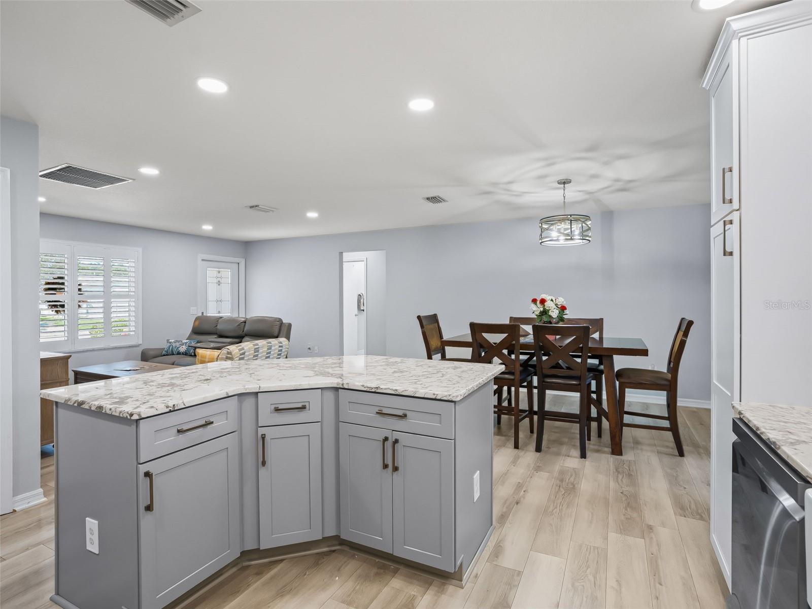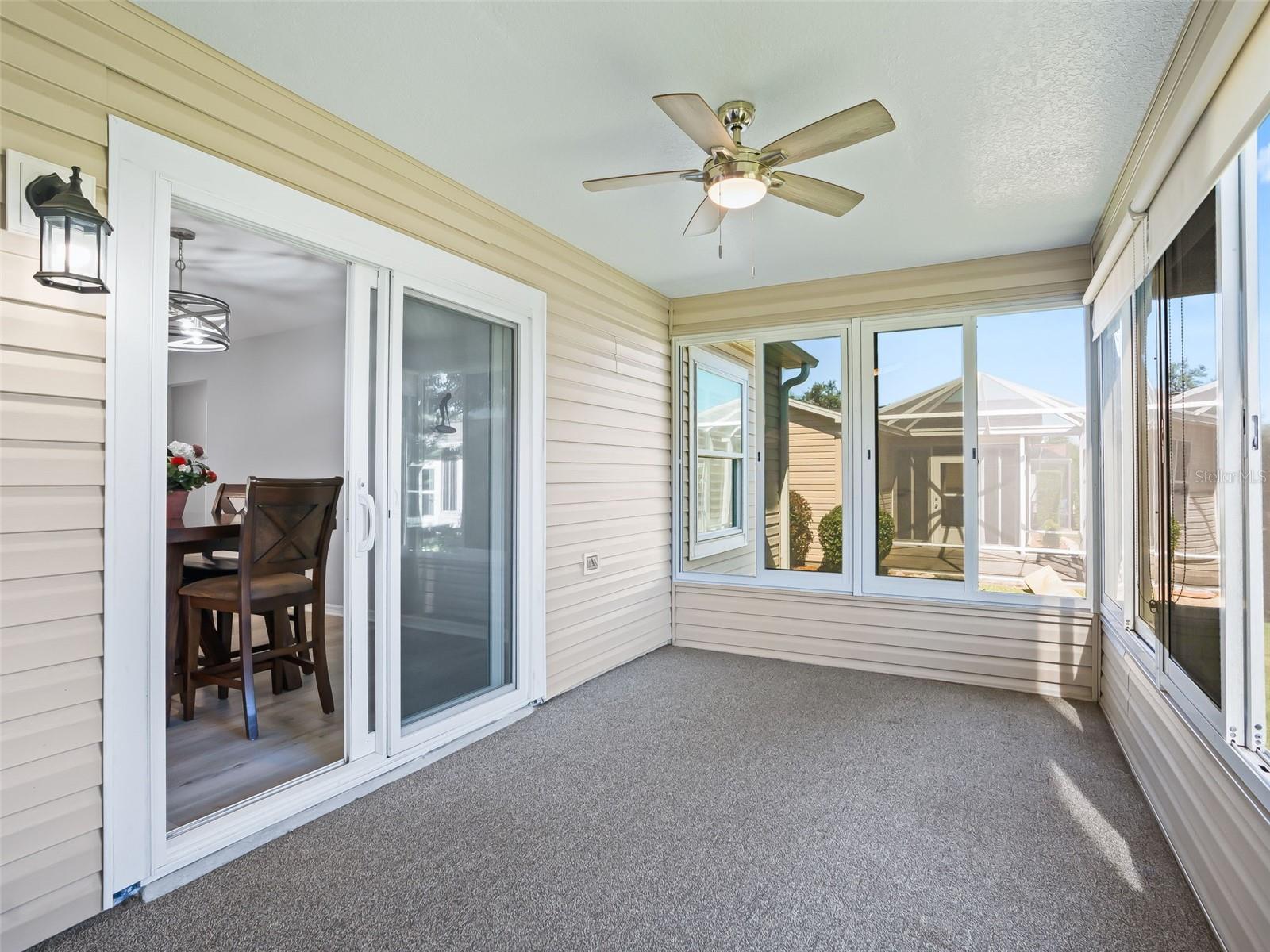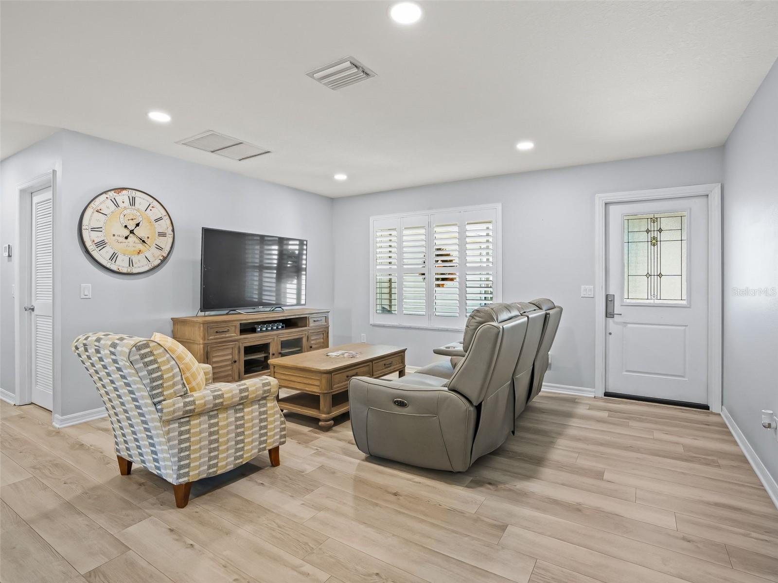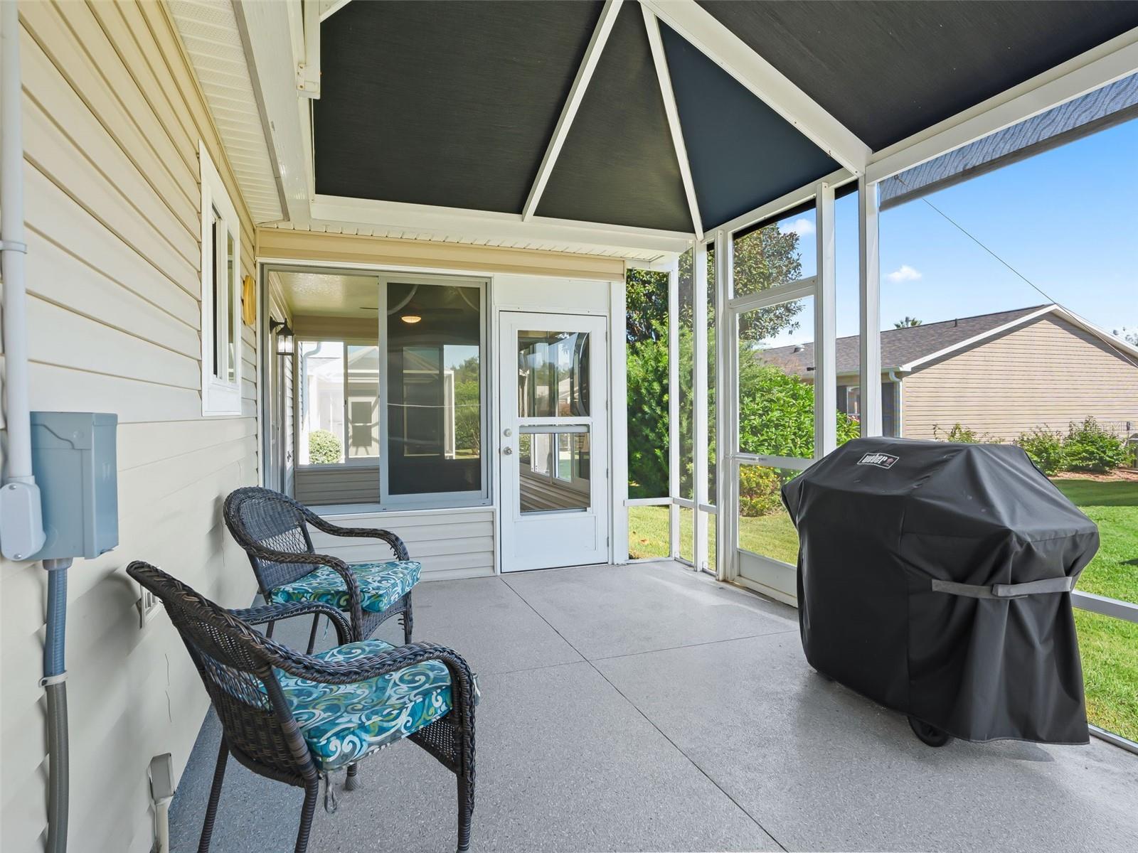 Welcome home to this beautifully UPDATED AMARILLO model (1, 392 SF heated) in the Village of Piedmont with NO BOND! ROOF 2020, HVAC 2015. PLANTATION SHUTTERS, knockdown (NO POPCORN) ceilings, and NO CARPET- luxury laminate flooring throughout with no transitions!! All three bedrooms feature CUSTOM CALIFORNIA CLOSETS, including LARGE WALK-IN master closet. The completely UPGRADED KITCHEN offers STAINLESS STEEL Appliances, CROWNED SHAKER CABINETS TO THE CEILING w/ PULL-OUTS, GORGEOUS WHITE GRANITE, specialty TILE BACKSPLASH, and a FARMHOUSE SINK. Both baths have GRANITE-topped white vanities and UPGRADED LIGHTING. Enjoy year-round comfort in the EAST-FACING ENCLOSED LANAI with NEW 2024 non-impact windows and door, leading to a COVERED BIRDCAGE with a 2024 BULLFROG SPA/HOT TUB—perfect for relaxing after a day of recreation or an evening out. There’s also a SCREENED FRONT PORCH, UPDATED LIGHT FIXTURES AND FANS throughout, and an INSIDE LAUNDRY with washer, dryer, and cabinetry. The garage is a dream: utility sink, built-in cabinets, workbench, ABUNDANT STORAGE, and an extra refrigerator/freezer included. MOSTLY FURNISHED/ PART TURNKEY—just bring a few personal touches and start enjoying The Villages lifestyle!