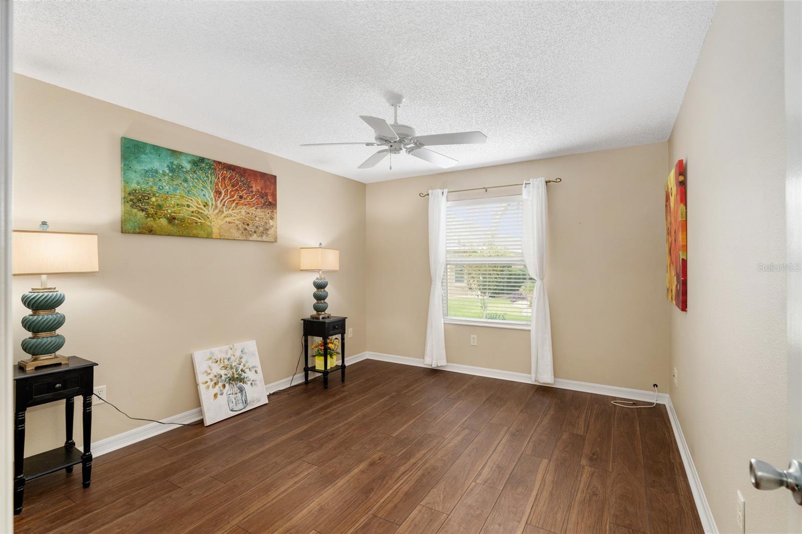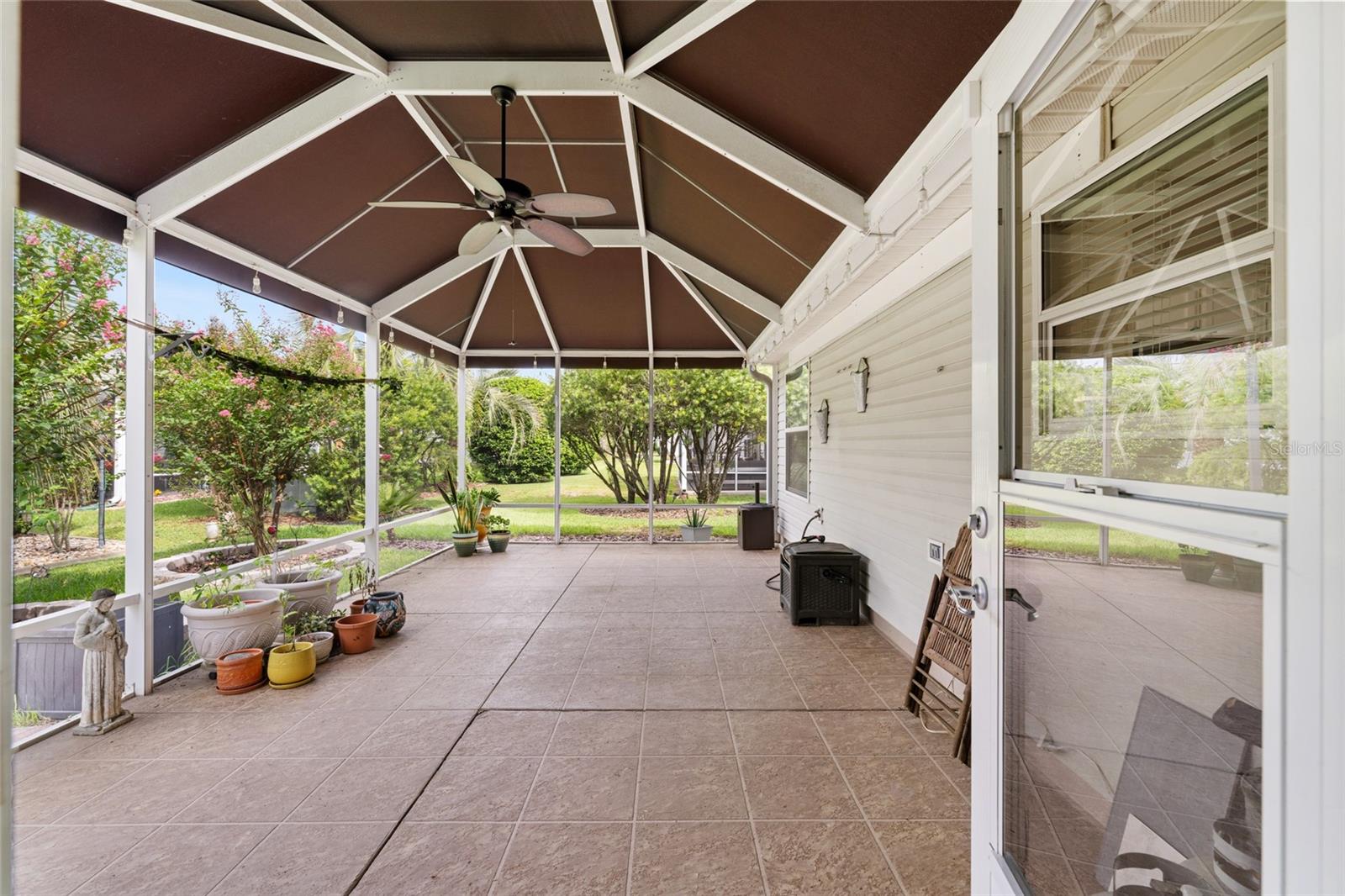 Under contract-accepting backup offers. Can you believe the price of this UPDATED 3/2 Bougainvillea (formerly Banyan) Model which is MOVE-IN READY in the desirable VILLAGE OF PIEDMONT near Lopez Country Club? What's important- ROOF 2022, HVAC 2016 AND WATER HEATER 2019. And the low bond balance will be paid at closing! The front curb appeal is so inviting with lava rock and mature landscaping leading to the covered porch. There has been a recent addition of the pitched front porch roof extension to provide cover of the front door. This makes this model unique as compared to similar ones. As you enter, you notice the OPEN FLOOR PLAN and CONTINUOUS LAMINATE FLOORING (no carpet!) with the comfortable living area front and center. The kitchen has been made bright and inviting with NEW GRANITE, FIXTURES and light toned cabinets. The stainless appliances were replaced in 2019 except for the new dishwasher (2024). The kitchen also boasts TILE BACKSPLASH, Solar Tube, and Under-Cabinet Lighting with a GAS STOVE! The Primary Bedroom is spacious with en-suite and a large walk-in closet. The bathroom has a tile floor and updated walk-in shower, linen closet, and the same beautiful Granite counter. The Guest Bedrooms are comfortable and inviting with ceiling fans and both have closets. There is an updated guest bathroom with tub/shower combo and linen closet between them. The large laundry room (inside) has a pantry and storage cabinets and leads to the 2 car garage with additional storage space in the attic and added cabinets. The lanai/enclosed Florida Room with glass/screens is cool and comfortable with roll-up blinds and an attached television which conveys with the home. It leads to an extended birdcage area with canopy for shade which provides extra seating and an entertaining option with new lighting. This area leads to outside for gardening and grilling with a new hose attachment. The backyard area is surrounded by mature landscaping to provide privacy from seasonal neighbors. You will be thrilled with the easy access to shopping, dining and the well-known Villages Squares! You're minutes away from many pools, recreation centers, golf cart path and Savannah Performing Arts Center. This is such a nice home and priced to sell. Make an appointment to see it today- you won't be sorry!
