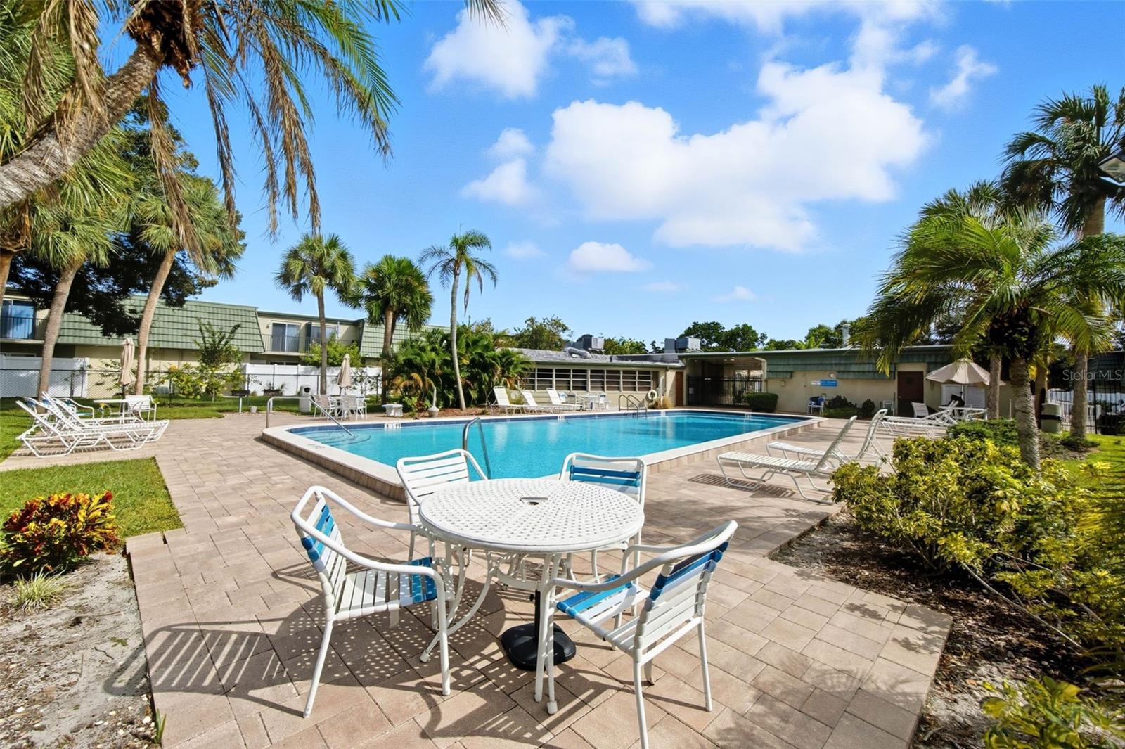 Opportunity Knock. Grab this lovely townhome in NON flood area. All Furniture Included. Welcome to Fountain Square Condo located in Clearwater, Florida, offers a 3 bedroom, 2.5 bathroom townhouse. The community is located off of North Highland Avenue, just south of Sunset Point Road. This home features a spacious master bedroom with ample walk in closet. Ensuite full bath in second Bedroom. Kitchen was tastefully renovated and appliances installed just five years ago. Fenced private backyard is a great outdoor space for grilling, and enjoying the beautiful weather of Florida. Assigned Parking spot exactly in front of the backyard door. For your enjoyment, a large swimming pool and a fitness center are conveniently located across the building. The monthly condo fee includes water, trash, cable, exterior maintenance, insurance, pest control, pool Maintenance. Convenience Location across the street from Walmart Neighborhood, Plaza with supermarket, breakfast place, gas station, restaurants, Planet Fitness, and medical centers. Few minute drive to Dunedin. Seller Financing available to qualified buyers. Quiet and Pleasant complex with ample visitor parking.