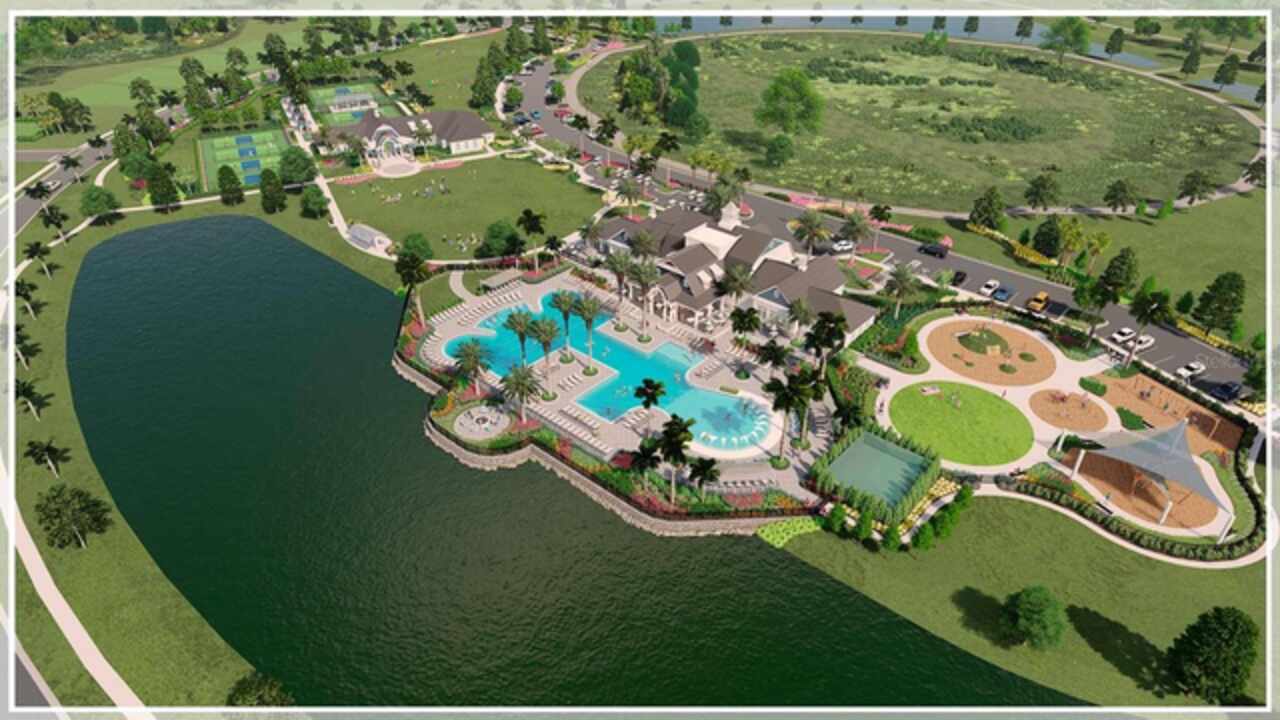 Under Construction. Welcome to the Ruby Tail, a beautifully designed floorplan by David Weekley Homes in Palmera that combines modern luxury with thoughtful functionality. This spacious home features four bedrooms and three and a half bathrooms, including a private en suite in the fourth bedroom—perfect for guests or multigenerational living. A large study offers the ideal space for a home office, library, or creative retreat. Flooded with natural light from numerous hurricane impact windows, the interior feels bright and airy throughout. At the heart of the home, you'll find a massive kitchen with an oversized island, an abundance of cabinetry, and a unique coffee and wine bar nook that adds a touch of charm and convenience. The open-concept living room flows seamlessly to the extended lanai through sliding glass doors, providing stunning water views and an ideal setting for outdoor relaxation or entertaining. The extra-large owner’s suite offers a true retreat with a spacious layout and an impressively sized walk-in closet. This home also includes lawn and irrigation maintenance, along with a TV and high-speed WiFi package, so you can enjoy low-maintenance living from day one. Community amenities are resort-caliber, featuring a sparkling pool, a state-of-the-art fitness center, pickleball courts, a golf simulator, and a full-time lifestyle director to help you make the most of every day. Located just 15 minutes from the beach, this home is your opportunity to embrace the best of Florida living in a vibrant, active community. **Your Clients are invited to enjoy pricing usually reserved for our new Team members during our Employee Pricing Event! From September 1-30, 2025, they’ll receive a 7% Home Discount on select Quick Move-in homes. Home must close by 10/31/25. Maximum discount not to exceed $40, 000.