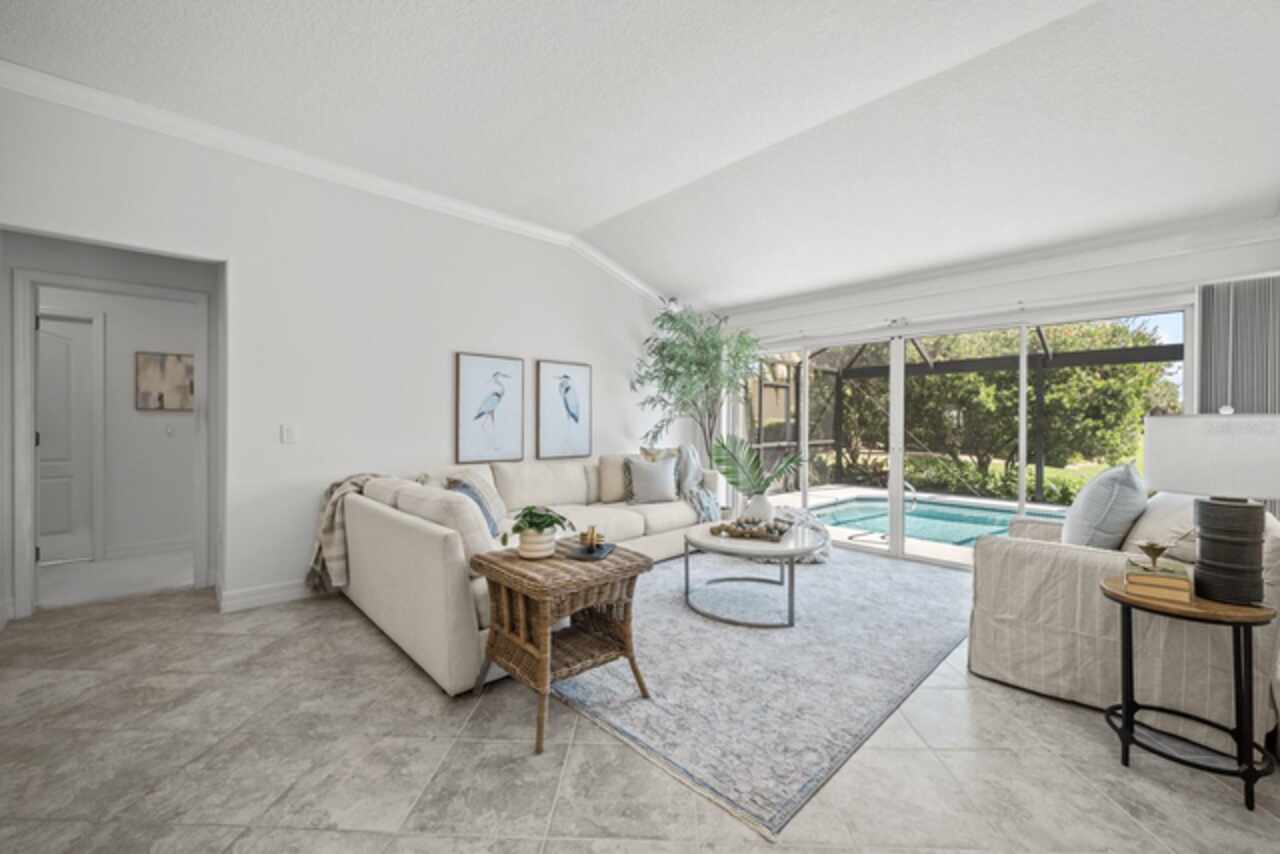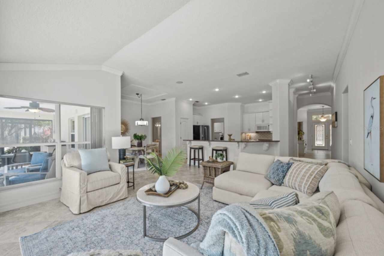 The great room beckons with a view overlooking a 12’ x 35’ sparkling pool and a custom "picture- window-pool-screen” view of the Grand Haven 11th Fairway Pond. Nestled, as it is, in the pond’s corner, the home’s view widens to an over-1000’ panorama of the far shore. The distance protects your privacy, and with a pair of binoculars you’ll often see a sunbathing gator or osprey. Because the covered lanai faces east, the outside living room enjoys perpetual shade. Inside, this home has been meticulously cared for and conveys warmth and invitation. The kitchen’s recent updates to its cabinetry, countertops, and appliances – make it the focal point to the home. The home is hurricane hardened, sporting cinder-block construction, inverter electric generator, corrugated-steel shutters, and a hurricane curtain system that encloses the pool lanai. The widened garage parks two cars and adds an extra 6’x17’ feet of storage. This rare combination of postcard-worthy views and tranquility awaits!