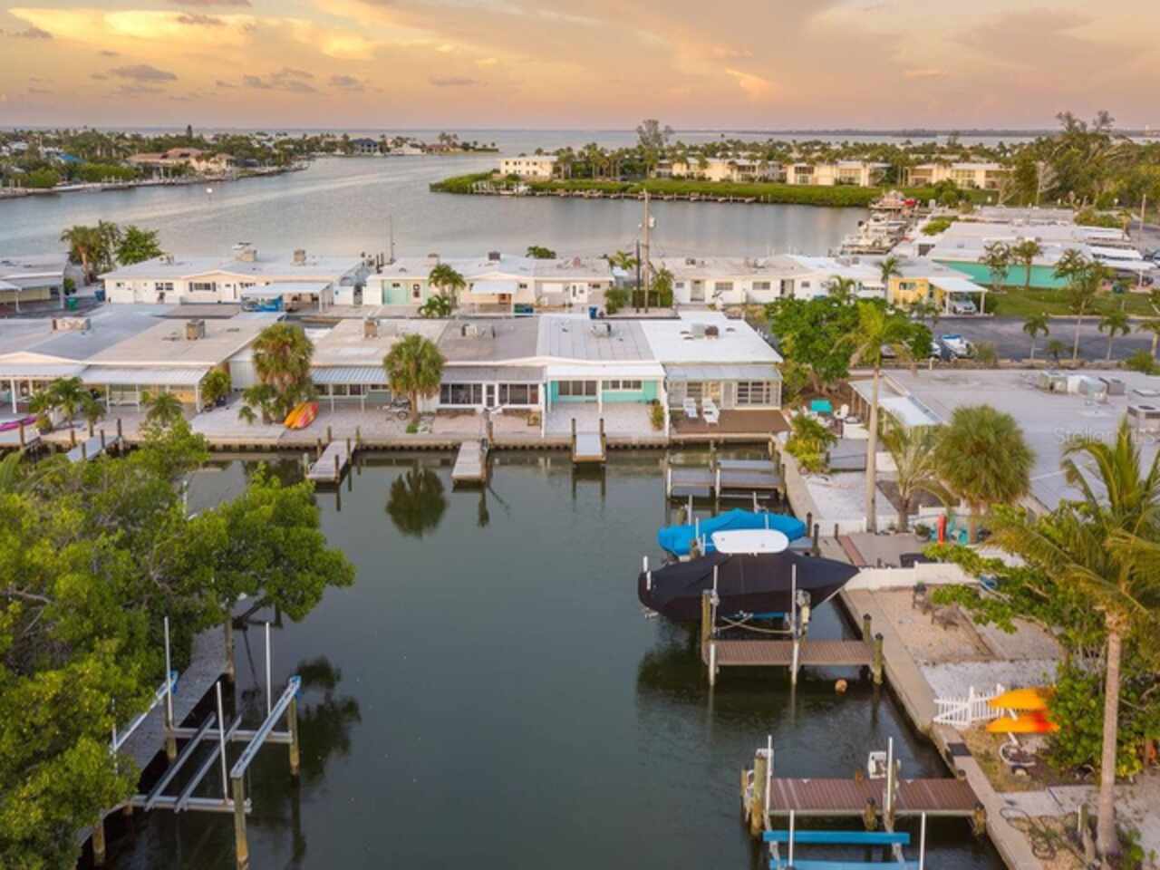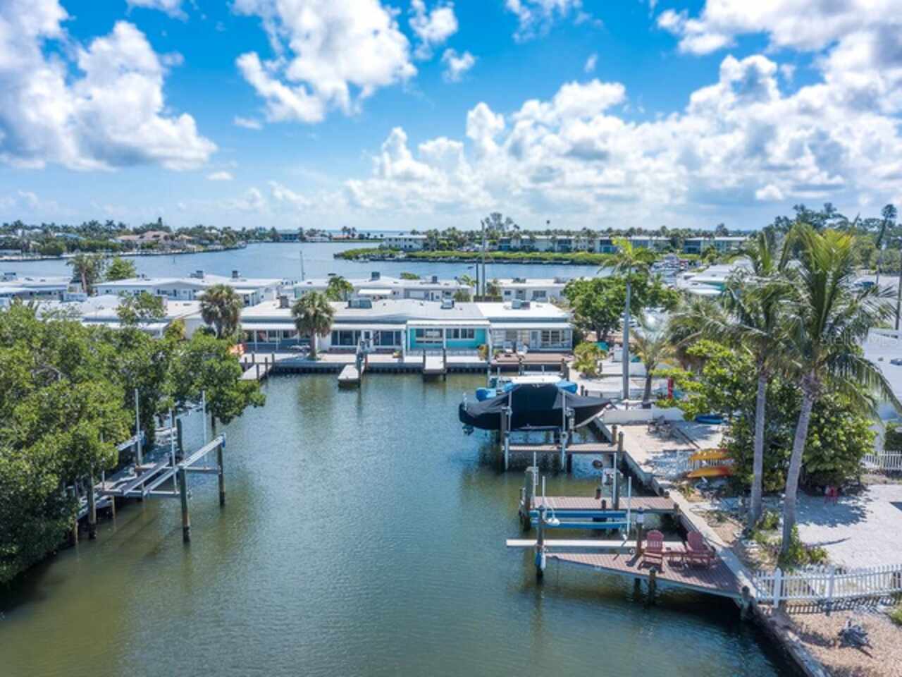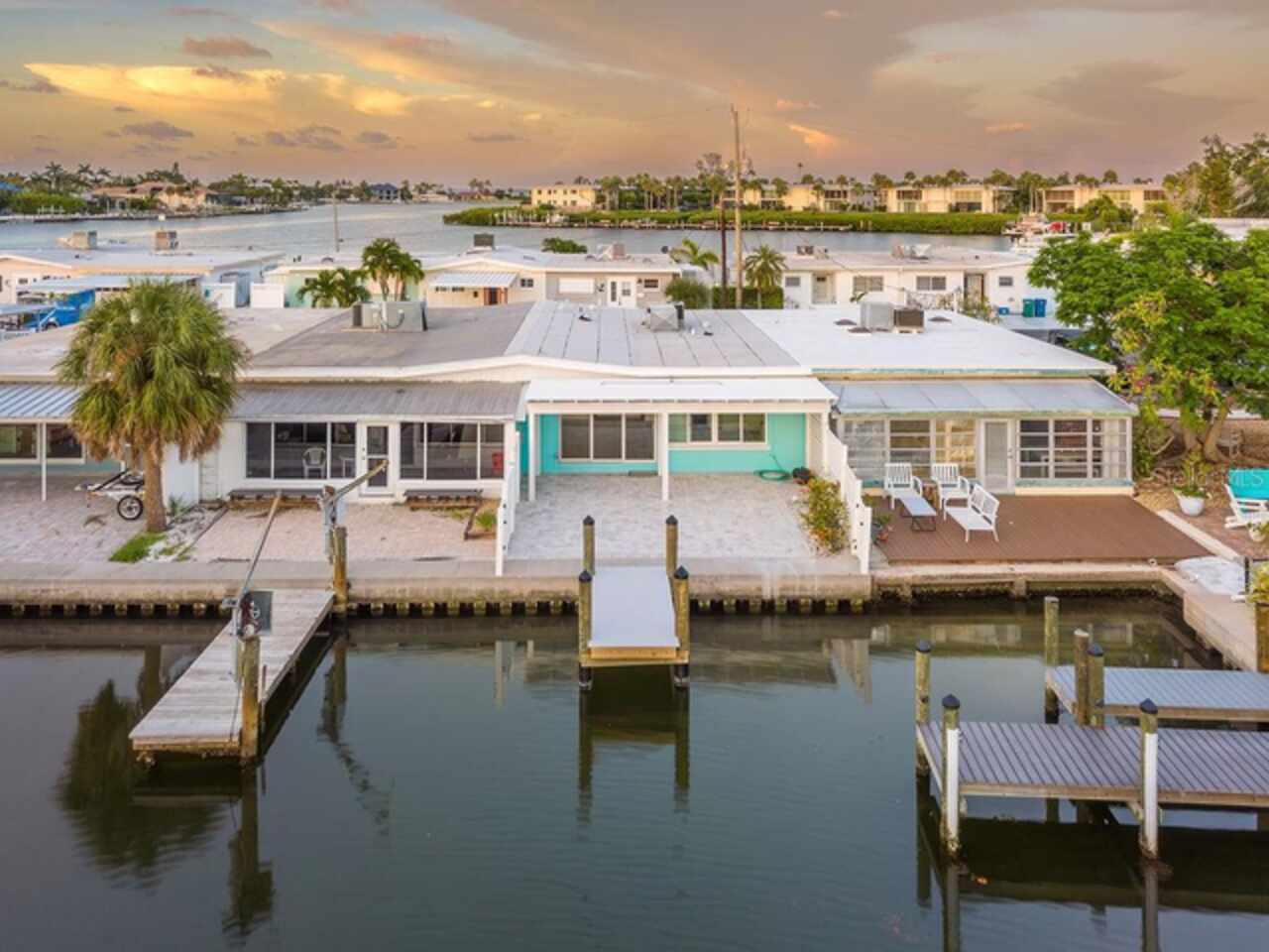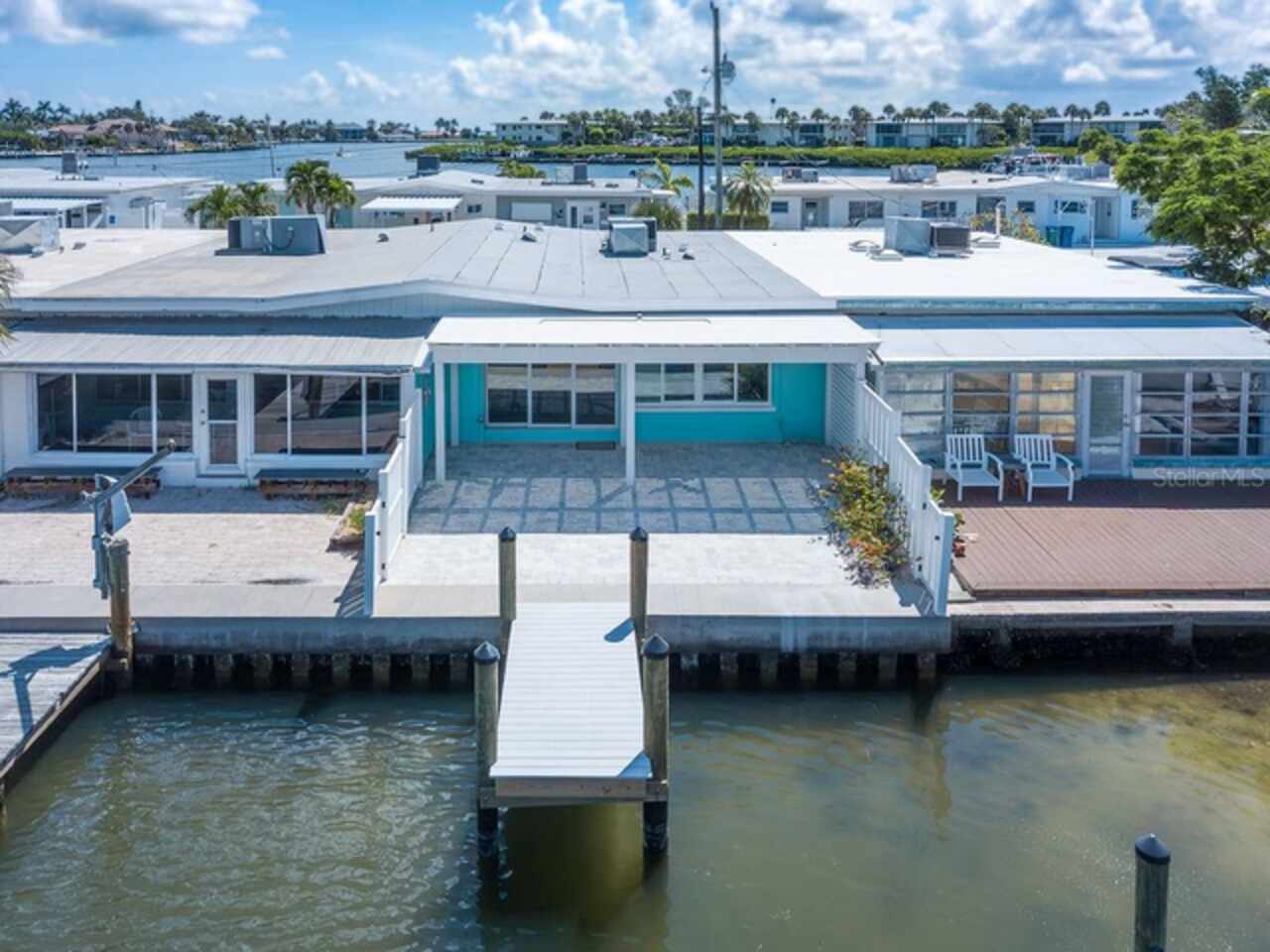This adorable 2 BD/2.5 BA turnkey vacation villa is the perfect island getaway located in the heart of Holmes Beach. Offered fully renovated top to bottom this villa has a bright open floor plan and tranquil water views. Open floor plan with well appointed kitchen, spacious living area, ensuite master bedroom, interior laundry room and more. Features include new bright kitchen with quartz counters, gorgeous baths, luxury vinyl plank throughout, impact windows and doors, new AC, plumbing, electric, roof, and more! Enjoy the island lifestyle under the oversized covered patio on a sunset facing canal that opens to Watson’s Bayou and the Intracoastal Waterway. There is a new dock with options for boat lift, two parking spaces with one car carport and storage shed, too. Historic Seaside Gardens offers a great location with NO HOA. Low cost Civic association maintains common areas and water/sewer are included. Boat ramp, tennis, shuffleboard, pickle ball and the dog park are just steps away. This is an active weekly vacation rental community offering a turnkey investment. Don't miss out on this perfect little slice of island life!