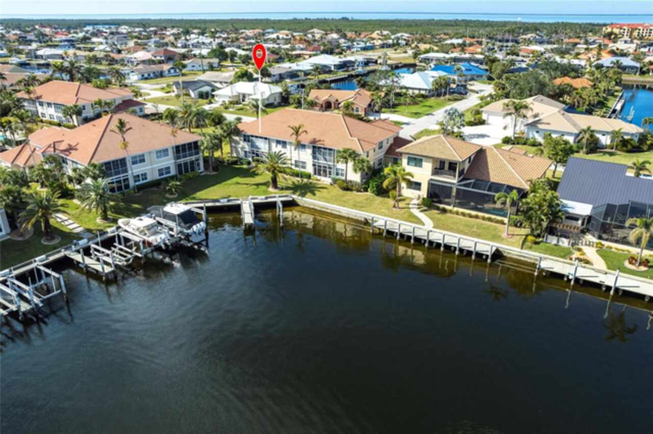 REDUCED TO SELL!! Bring your BIG BOAT- largest slip in the community Enjoy resort style living in this beautiful, tastefully appointed FULLY FURNISHED 3 bedroom, 2 bath sailboat waterfront condo with deeded dock in the Tarpon Cove community in popular Punta Gorda Isles. From your back door you can enjoy some of the best fishing in SW Florida. In addition to the dock, there’s a 27, 000 lb boat lift. So bring your boat! This is not your typical condo with a 2 car attached garage, living and dining rooms, spacious kitchen, Florida room, and ample storage throughout. You will enter through the courtyard into the foyer that leads to the bright and open living area with tile throughout with new wood plank tile flooring in bedrooms and dining area, new decorator light and fan fixtures, tray ceilings in the foyer and dining area, color accent walls, and crown molding and blinds throughout. There are ample windows and sliding doors that allow an abundance of natural light to flood the main living areas and allow you to enjoy the view of the waterway. Spacious kitchen boasts warm wood cabinetry with under-cabinet task lighting, stainless appliances with 3-door fridge, pantry, lots of counter space, and cozy breakfast nook for enjoying your morning coffee. The Florida room provides extra living space and will be great for entertaining with bar, refrigerator, sink, and grill. Master suite has walk in closet and private en suite bath with his and her sinks, jetted soaking tub, and glass block Roman shower. Plus, there is a separate room for storage. Other features include dedicated laundry room with washer & dryer, utility sink, and overhead cabinets; irrigation system; and water and sewer included in your condo fee! Beautiful curb appeal with landscape curbing and decorative rock; bring paved drive and walkway, and mature trees and flowing shrubs. Tarpon Cove offers heated pool for year-round enjoyment and clubhouse. This community is just a short distance to historic downtown Punta Gorda and popular Fishermen’s Village with quaint shops and cafes. Proximity to local beaches, dining, shopping, and golf courses makes this property ideal for the Florida lifestyle. Also, easy access to public boat ramps providing access to many waterways including beautiful Charlotte Harbor, the Peace and Myakka Rivers, and the blue waters of the Gulf of Mexico. Don’t wait to start enjoying your piece of Florida paradise!