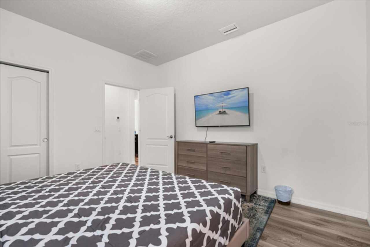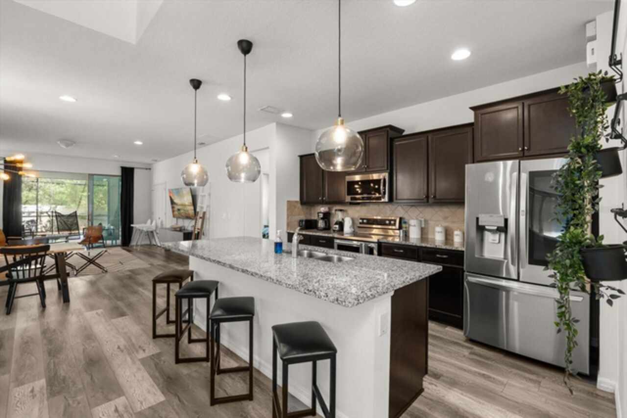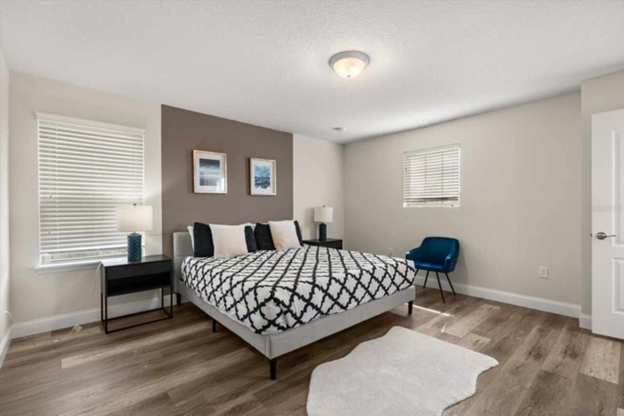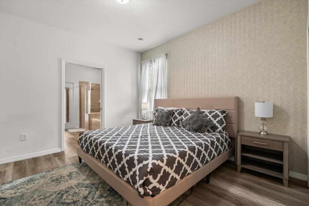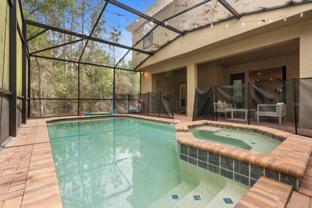 Under contract-accepting backup offers. Welcome to this beautifully maintained six-bedroom, 4.5-bath home, built in 2018, offering 3, 142 square feet of living space. On a cul-de-sac with no rear neighbors, the property boasts a screened-in heated pool, providing a private oasis for relaxation and entertainment. The home features an open-concept kitchen with granite countertops, seamlessly flowing into the spacious living area. The primary suite is conveniently on the first floor, with a second primary suite upstairs. Additional highlights include a versatile loft area on the second floor, ideal for a game room or additional living space. This home is turnkey ready and being offered fully furnished, great for short-term rentals in the neighborhood of Windsor at Westside. Qualified buyers may receive a 1-year interest rate buydown for the first year paid for by the Seller's preferred lender when financing this home (subject to credit approval and program availability) - call today for details.