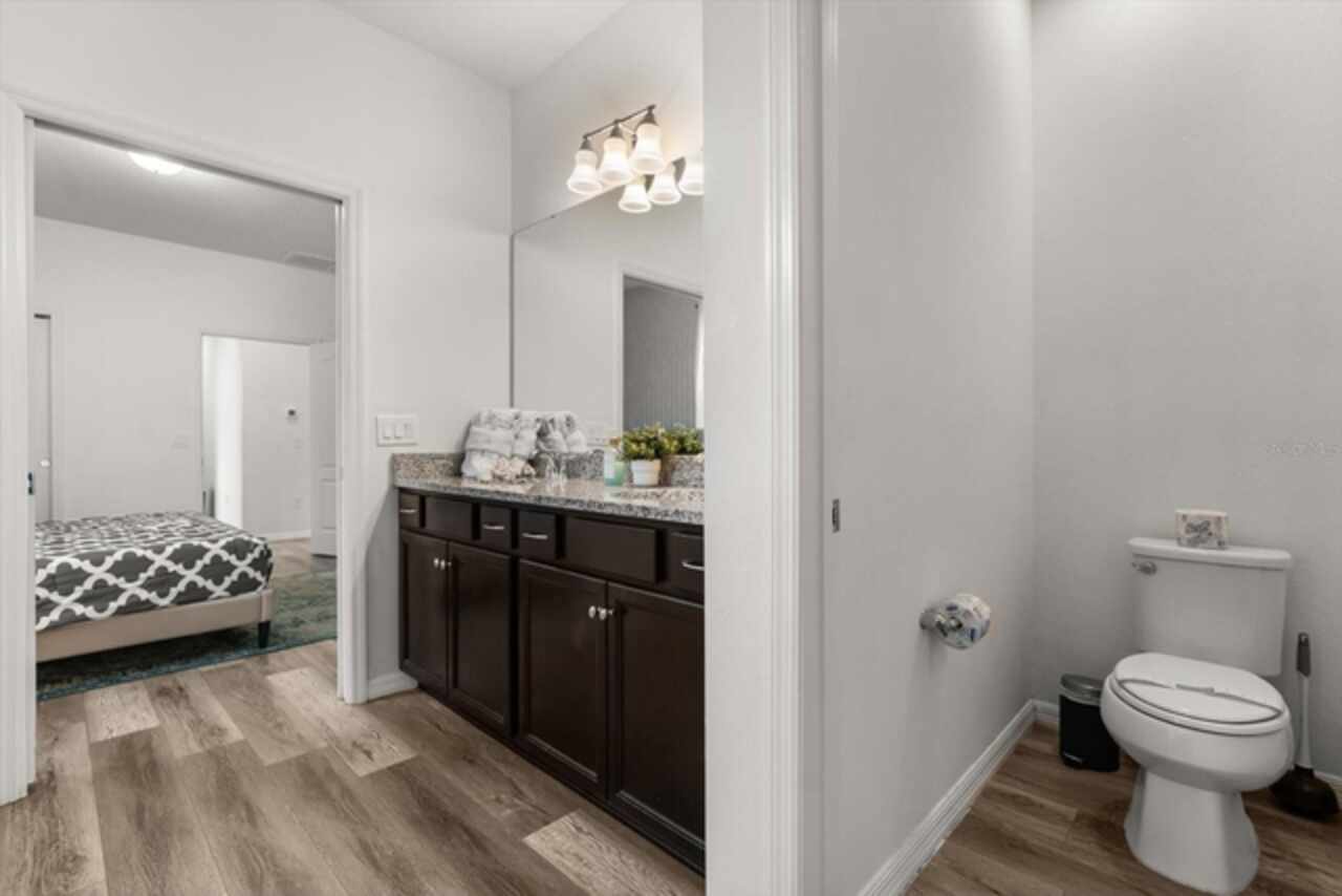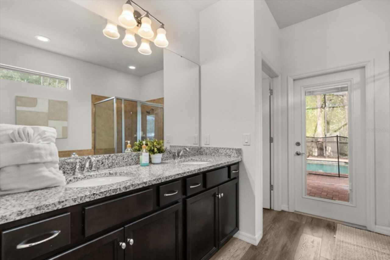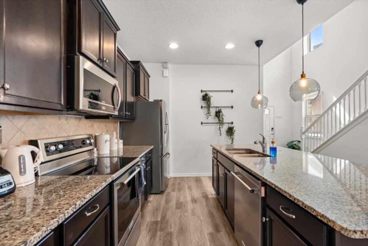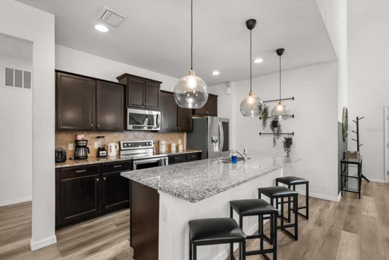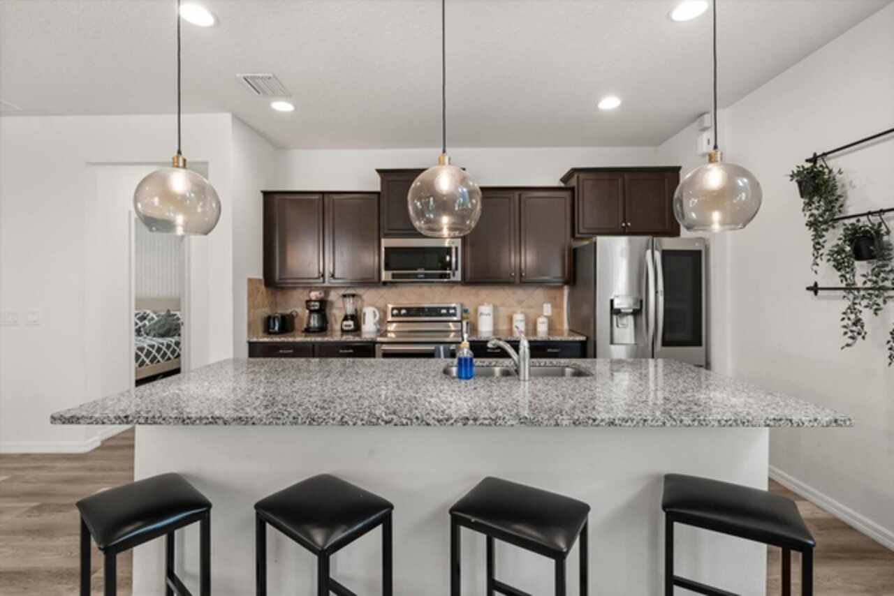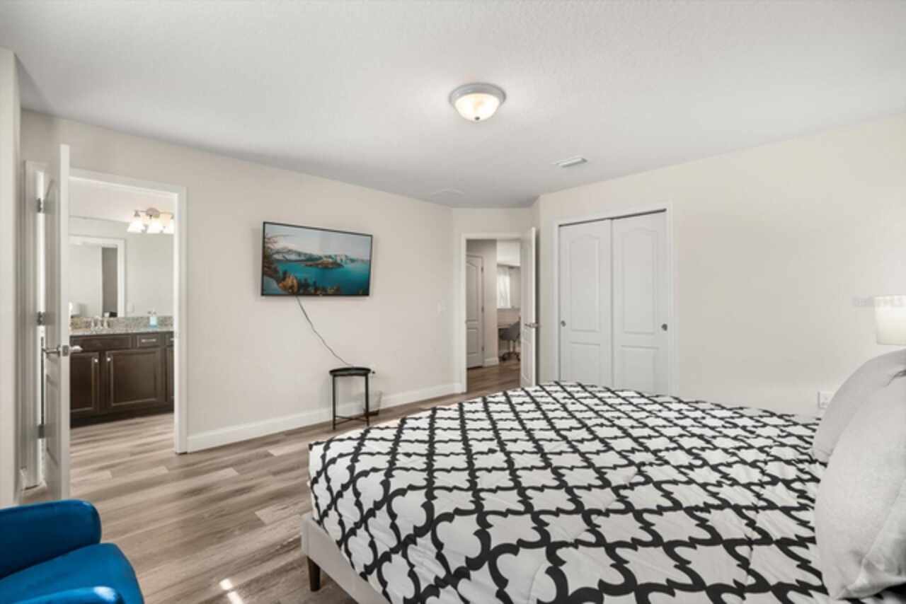 Under contract-accepting backup offers. Welcome to this beautifully maintained six-bedroom, 4.5-bath home, built in 2018, offering 3, 142 square feet of living space. On a cul-de-sac with no rear neighbors, the property boasts a screened-in heated pool, providing a private oasis for relaxation and entertainment. The home features an open-concept kitchen with granite countertops, seamlessly flowing into the spacious living area. The primary suite is conveniently on the first floor, with a second primary suite upstairs. Additional highlights include a versatile loft area on the second floor, ideal for a game room or additional living space. This home is turnkey ready and being offered fully furnished, great for short-term rentals in the neighborhood of Windsor at Westside. Qualified buyers may receive a 1-year interest rate buydown for the first year paid for by the Seller's preferred lender when financing this home (subject to credit approval and program availability) - call today for details.