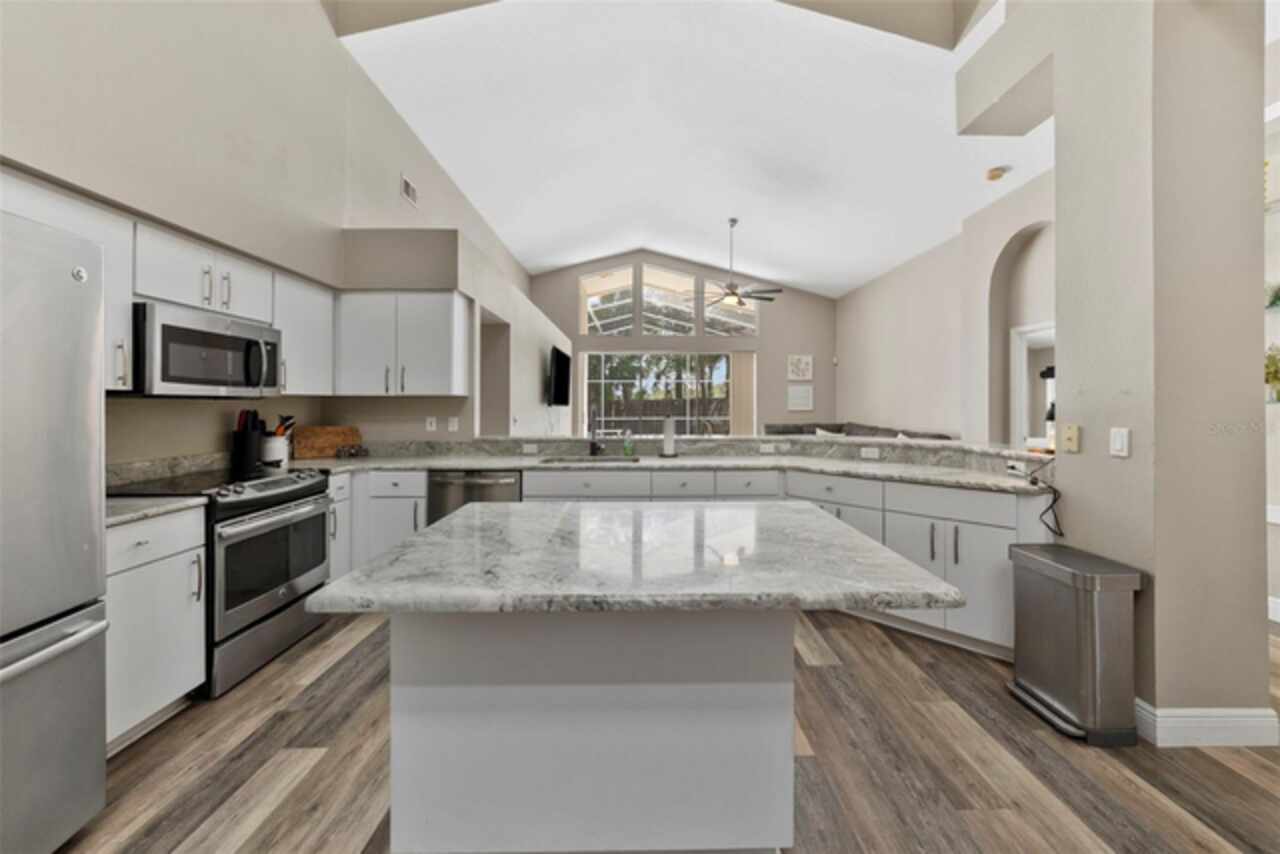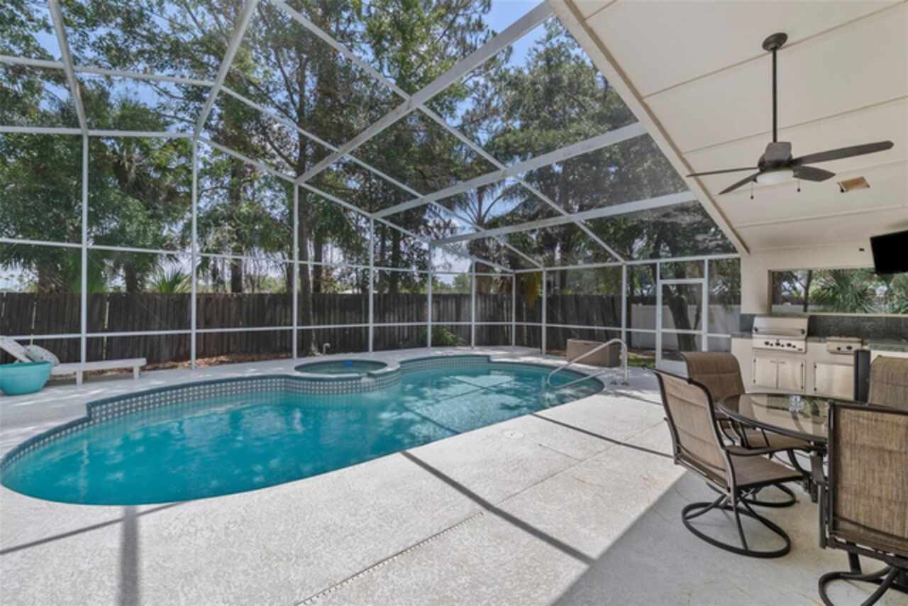 Under contract-accepting backup offers. Welcome to 18017 Palm Breeze Dr – a beautifully updated 4-bedroom, 3-bath home in the heart of New Tampa’s Cross Creek community! This spacious 2, 546 sq ft residence features luxury vinyl floors, high ceilings, and a stunning kitchen with stone counters, solid wood cabinets, and stainless appliances. The split-bedroom layout includes a generous primary suite with walk-in closet and spa-like bath. Enjoy Florida living in your private screened pool oasis complete with an outdoor kitchen —perfect for entertaining! Located on a quiet, sidewalk-lined street with low HOA and no CDD, this home offers both comfort and convenience, just minutes from top-rated schools, shops, and dining. Don’t miss out on this rare gem! Call today for a showing.