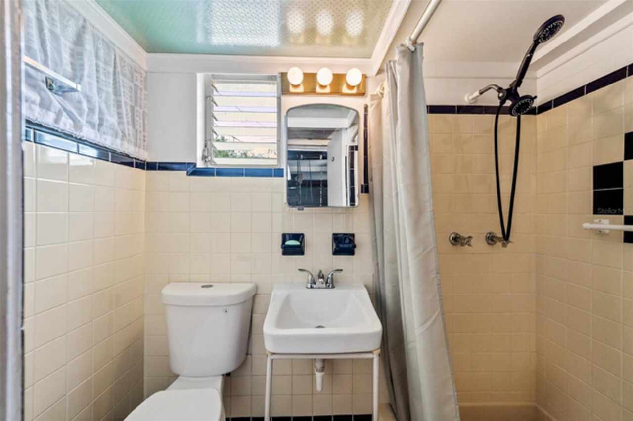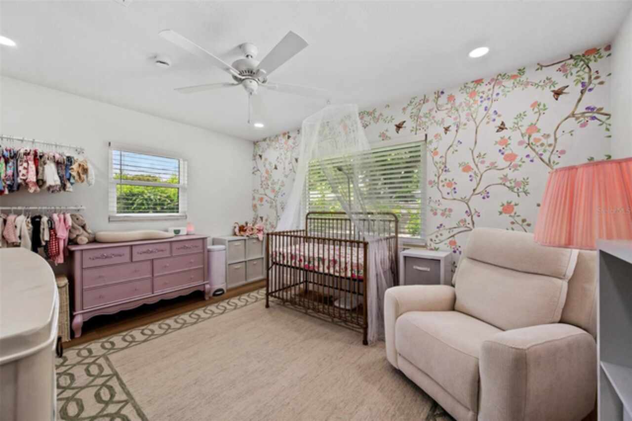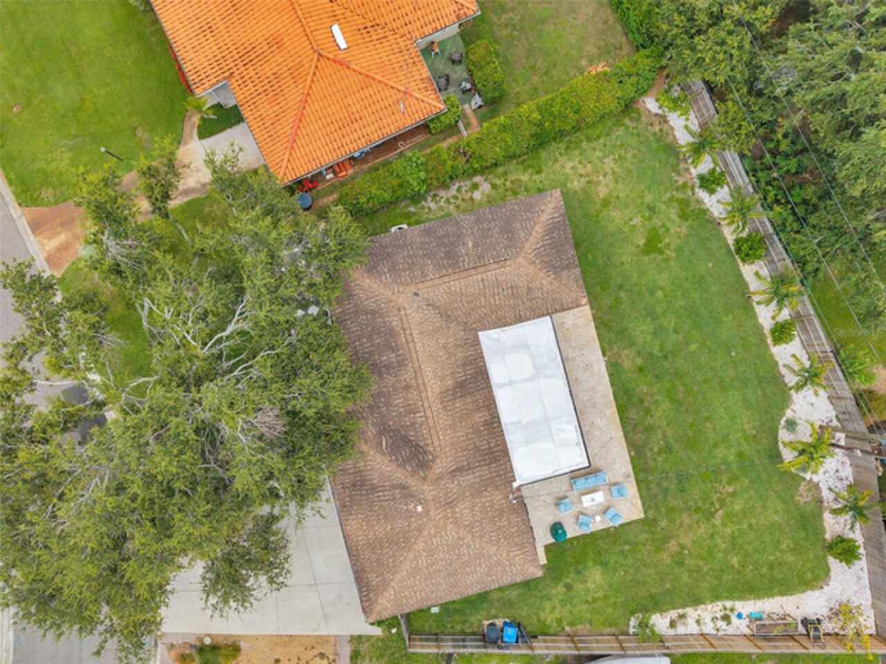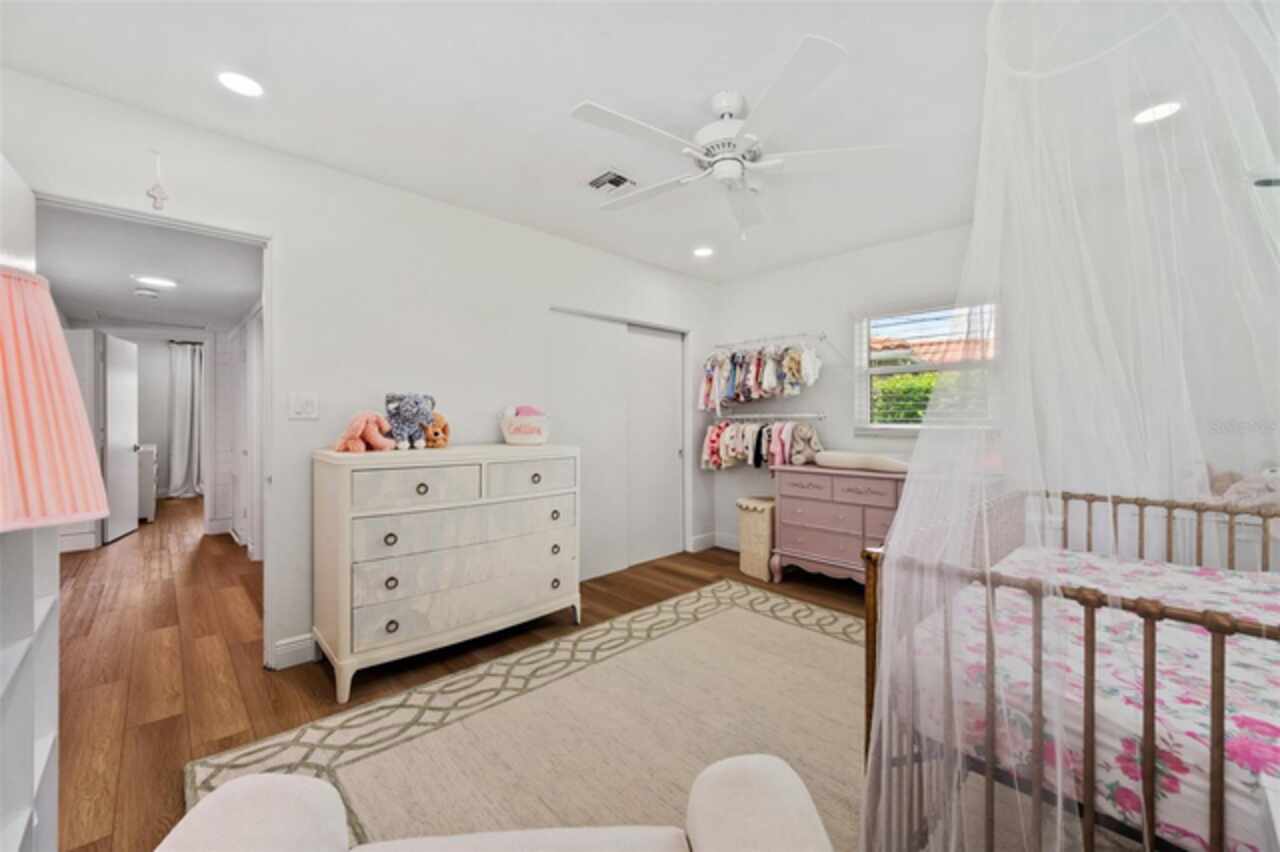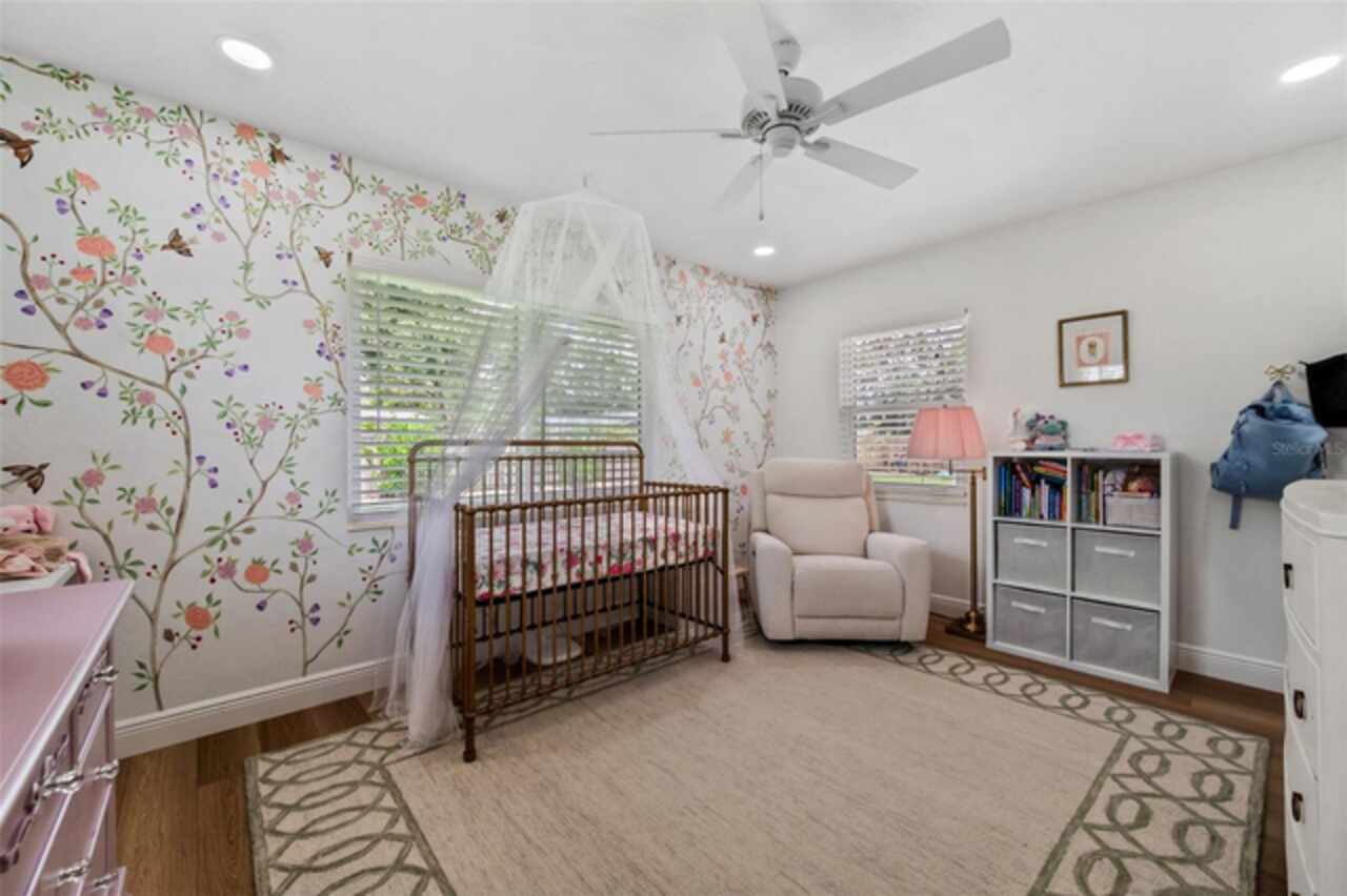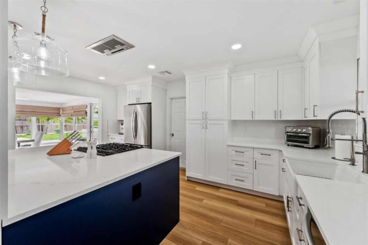 Welcome to this fully remodeled 2-bedroom, 2-bathroom block home with 1, 421 sq ft of living space, a 1-car garage, and timeless coastal charm. Situated high and dry on a quiet street with no flood zone concerns. A welcoming front porch and a large, beautiful shade tree add charm and curb appeal to the front yard. Step inside to an open-concept layout with soft coastal tones, recessed lighting, and luxury vinyl plank flooring throughout. The spacious living room features a shiplap accent wall, and the primary bedroom also includes a stylish shiplap feature for added character. The updated eat-in kitchen is a showstopper with a large center island, propane gas range, ceiling-mounted hood, apron-front farm sink, subway tile backsplash, granite countertops, shaker cabinetry, bar seating, and an undermount microwave. A sun-drenched bonus room at the rear offers formal dining or flex space, complete with a dry bar, wine cooler, and access to the expansive travertine tile patio and beautifully landscaped, fenced backyard with ample room for a pool. The main bathroom boasts a double vanity and large LED mirror. The garage includes the original second bathroom (not in heated sq ft), providing potential to convert into an owner’s suite. Additional highlights include impact-rated windows and doors, Tesla EV charger, and fresh interior/exterior paint. Just minutes to I-275, shopping, dining, beaches, and vibrant downtown St. Pete.