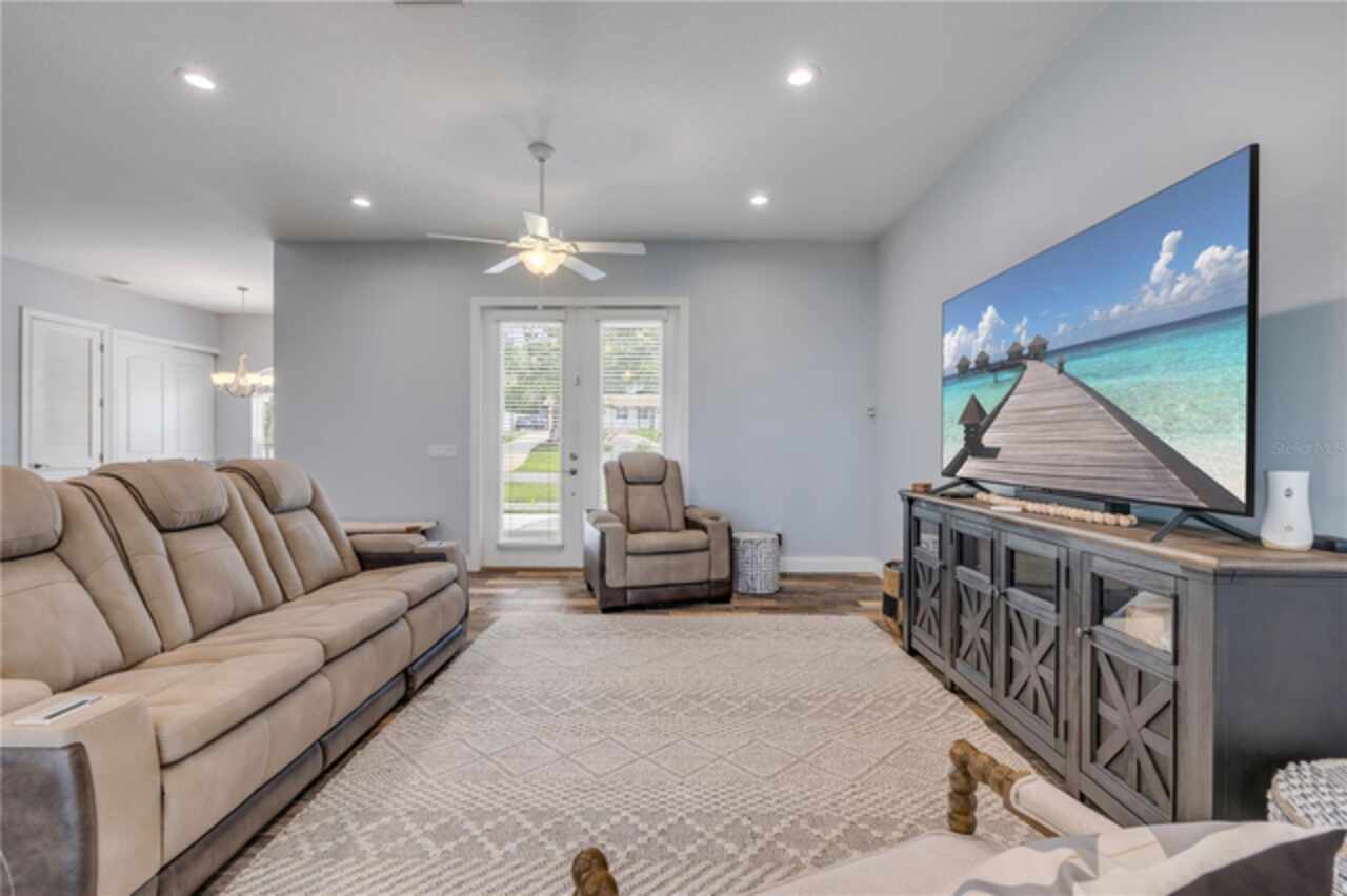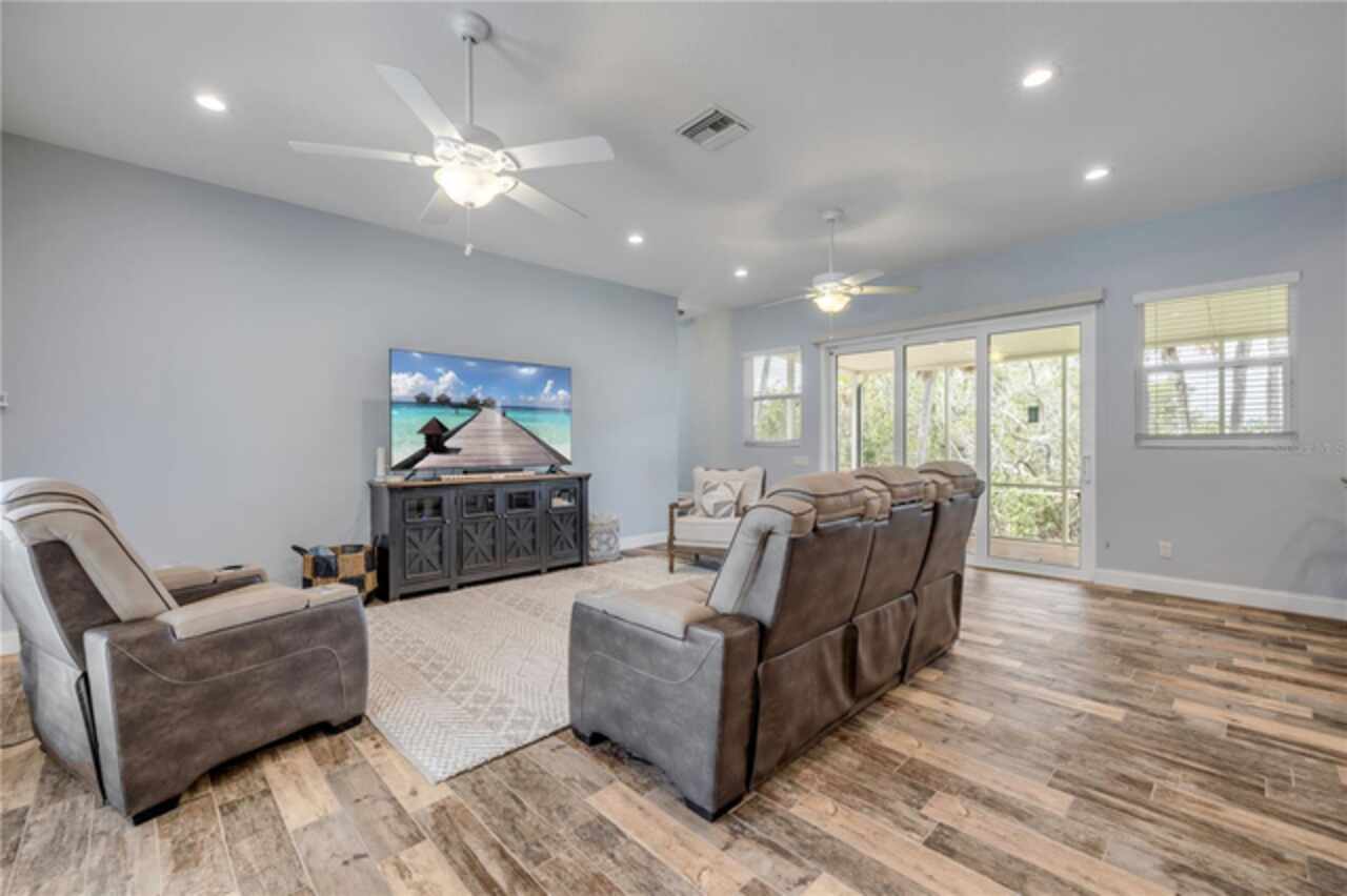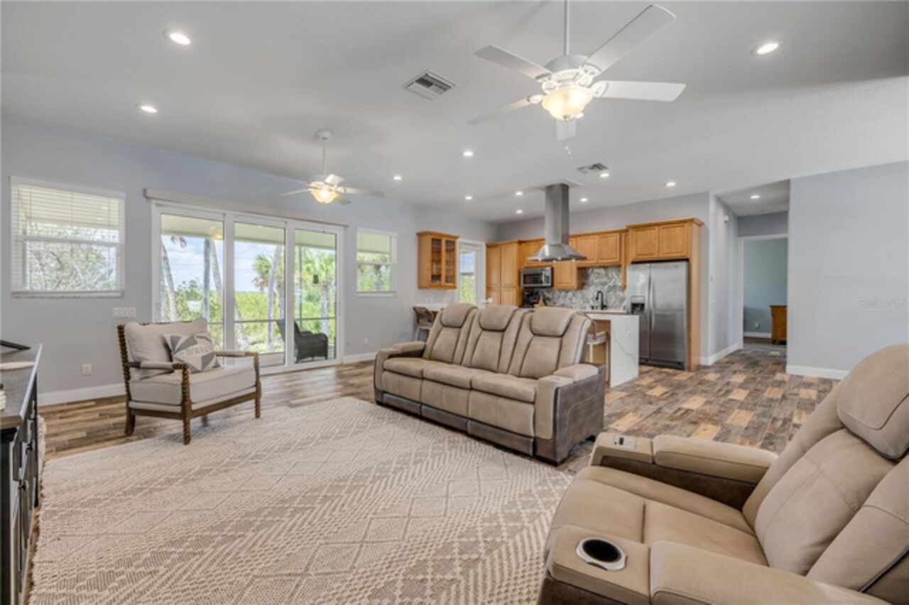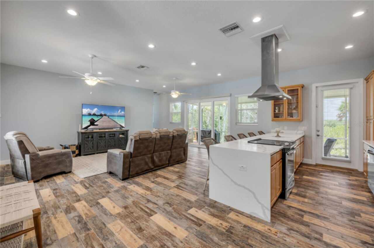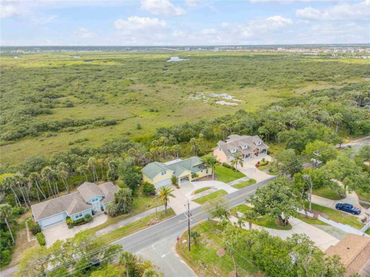 Paradise Found in New Smyrna Beach! Welcome to this immaculate, custom-built beachside retreat just steps from the ocean. Ideally located near a beach walkover, scenic walking trail, kayak launch, and some of the area's best restaurants and shops, this spacious home offers the perfect blend of luxury and coastal living. Built less than 10 years ago with solid concrete block construction, this home features soaring ceilings, an open-concept floor plan, and hurricane-impact windows and sliders that open to a stunning 77’ x 10’ private back porch. Relax while overlooking the serene Intracoastal marshlands and enjoy breathtaking sunsets from the comfort of your own backyard. Inside, you’ll find a gourmet kitchen with brand-new quartz countertops, stainless steel appliances, and stylish tile flooring throughout the first level. Hardwood floors add warmth and elegance upstairs. The primary suite is conveniently located on the main floor and includes an en-suite bath, walk-in closet, and direct access to the back deck. A second guest bedroom and full bath are also located on the main level, while the private third bedroom with a half bath sits upstairs — ideal for guests or a home office. Additional features include a tankless hot water heater, an oversized two-car garage with high-clearance doors for boat and golf cart storage, and a bonus storage closet. A newly added circular driveway provides ample parking and easy access. Nestled in a golf cart-friendly neighborhood with easy routes to the beach, Flagler Avenue, and Canal Street, this beautiful home truly has it all. Whether you’re looking to entertain, unwind, or explore, this is the lifestyle you’ve been dreaming of. Schedule your private showing today — your beachside paradise awaits! (All measurements and information important to the buyer to be verified by the buyer and buyer's agent.)