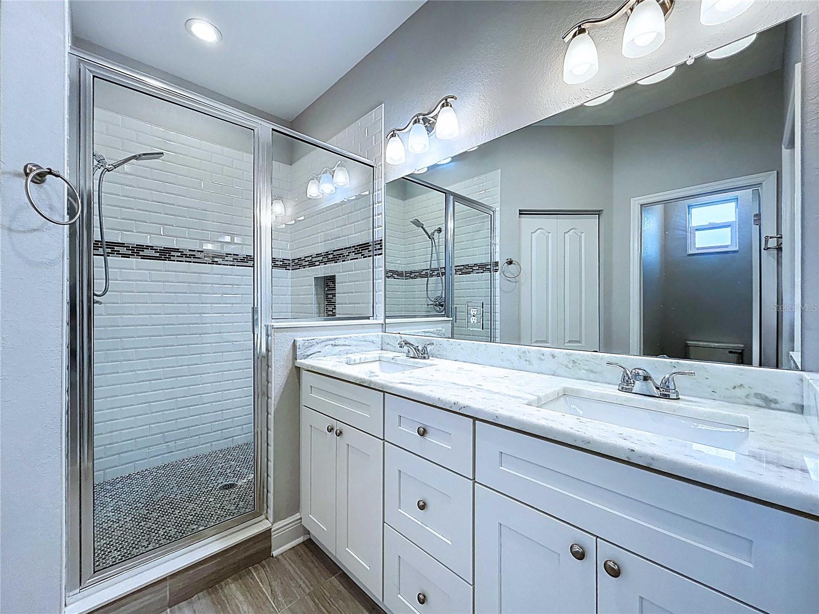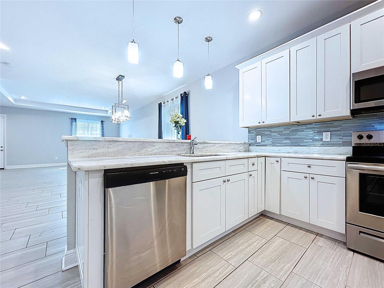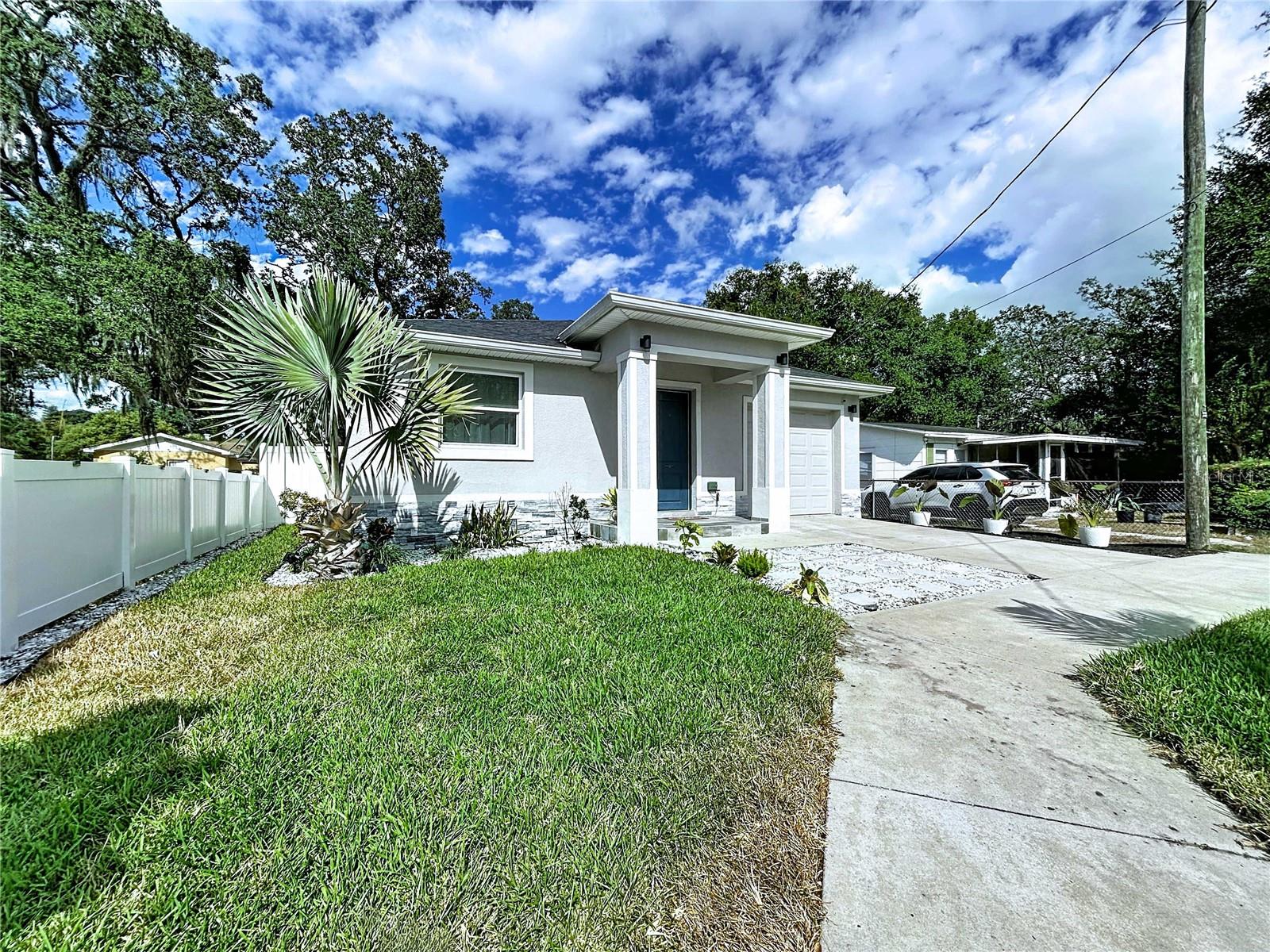 This stunning 3 bedroom, 2 bath residence blends comfort and modern elegance in every detail. Step inside to discover a designer kitchen featuring rich wood cabinetry, sleek stone countertops, stainless steel appliances, a walk-in pantry, and soaring 9’4” ceilings with recessed lighting that create a bright, open feel. The updated porcelain tile flooring flows seamlessly throughout, making it as stylish as it is durable—perfect for entertaining. Relax in your spacious enclosed patio and beautiful lanai, overlooking a fully fenced yard that’s ideal for gatherings, pets, or simply enjoying the outdoors in privacy. The owner’s suite offers a large walk-in closet and generously sized bedroom, while secondary bedrooms provide ample space for family or guests. What many consider upgrades come standard in this home—thoughtful design, premium finishes, and quality craftsmanship throughout. Located close to fine dining, shopping, and endless entertainment options, this home offers not just a place to live, but a lifestyle to love. This home qualifies for East Tampa Down Payment assistance for 1st Time Homebuyers.