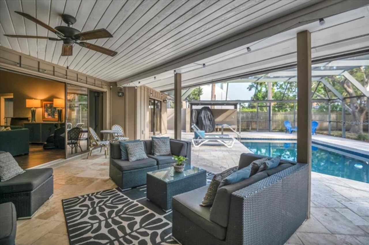 Motivated Seller!! Stunning pool home only 2 miles from world-famous Siesta Key, this West of the Trail pool home in Buccaneer Bay delivers the ultimate Sarasota lifestyle. High and dry through every storm, it combines worry-free living with pure coastal fun. A quick bike ride over the south bridge to Siesta Beach is easy without ever getting on US41! Step inside and feel the openness, vaulted ceilings, a striking stone fireplace, and a light-filled layout that flows effortlessly from the living area to the pool. The chef’s kitchen is made for entertaining with quartz countertops, a marble backsplash, a spacious island (family, friends and great conversation), and sleek stainless-steel appliances. Outside, your private backyard oasis truly is what Florida is all about. A sparkling PebbleTec pool, brand-new pump, travertine deck, creating the perfect setting for entertaining or quiet evenings under the palm trees. And there’s more—an additional 160 sq. ft. of climate-controlled living space in the fully equipped shed, complete with A/C and electricity. It’s the ideal flexible space for a workshop, home office, art studio, or hobby room. Sitting on over a quarter-acre, this home also provides peace of mind with a relined sewer plumbing, hurricane-rated garage door, and a whole-house reverse osmosis system with no salt needed. Homes like this West of Trail don’t come along often—schedule your showing today and start living the Sarasota dream! Preferred lender is offering 1% of the loan amount toward buyer’s closing costs and prepaids with a full-price offer.