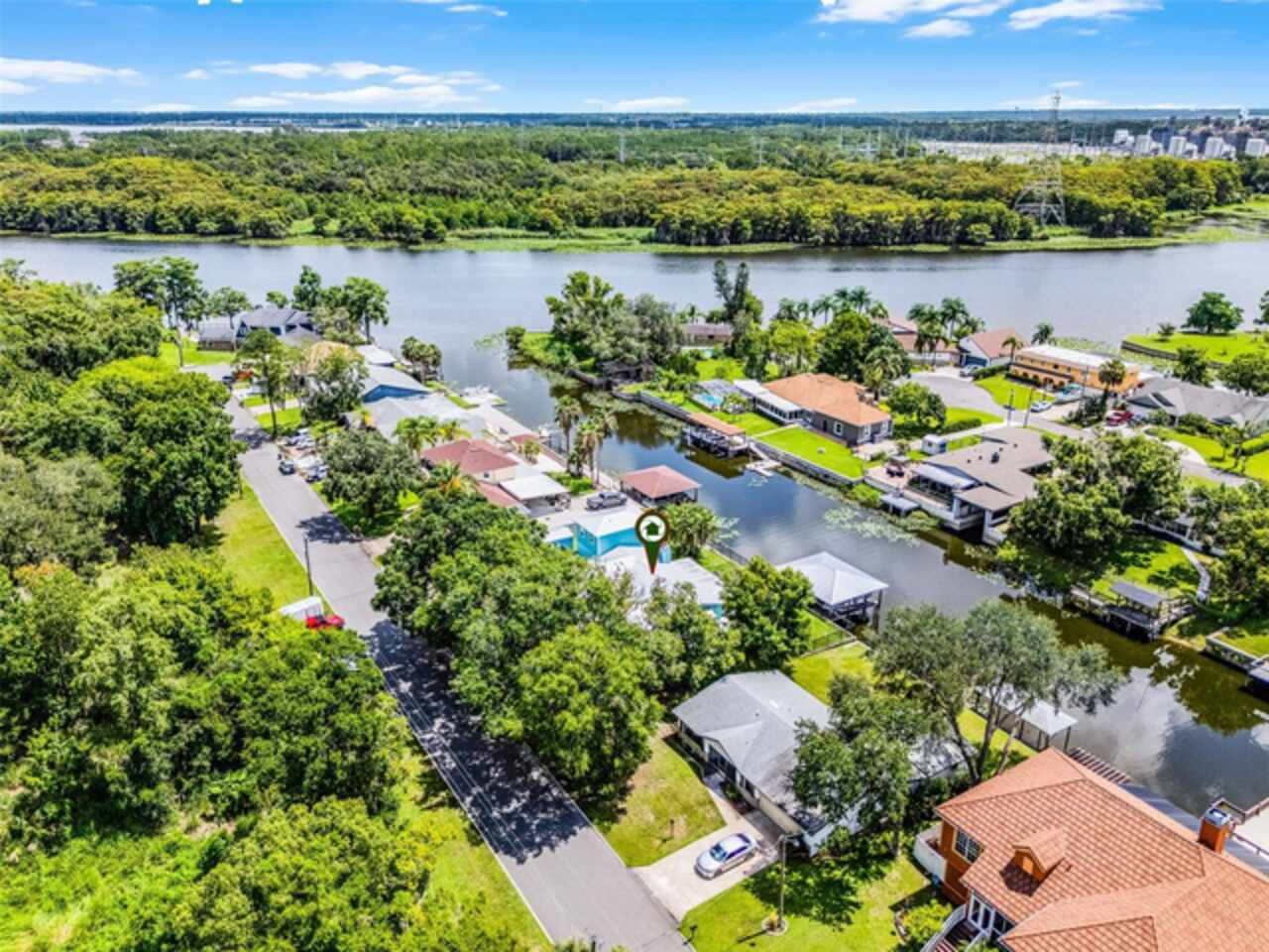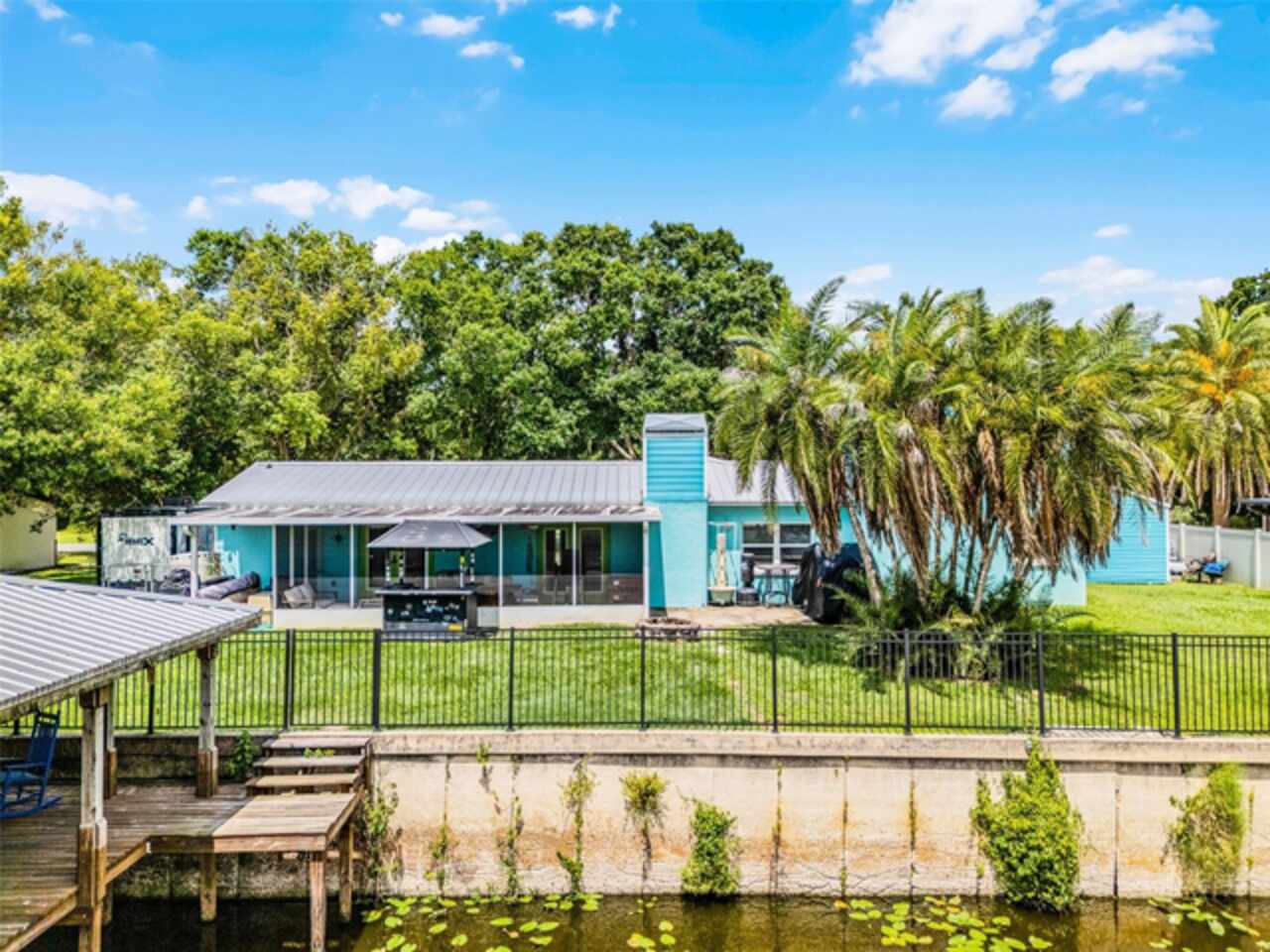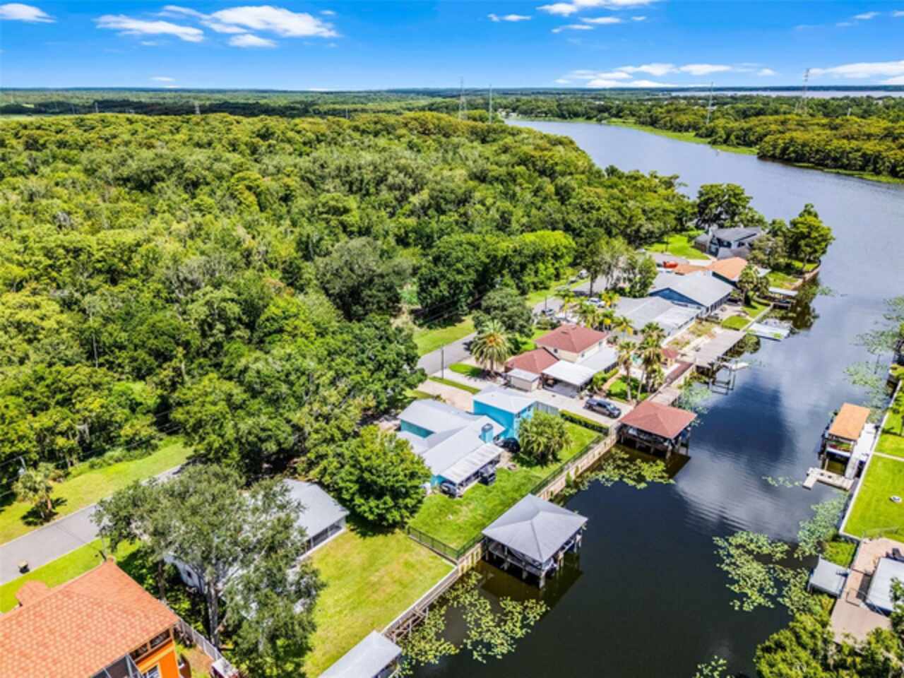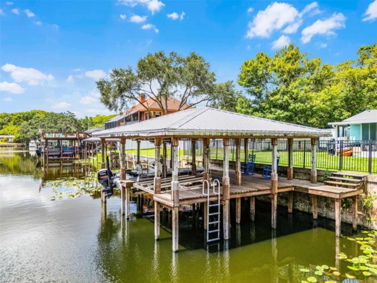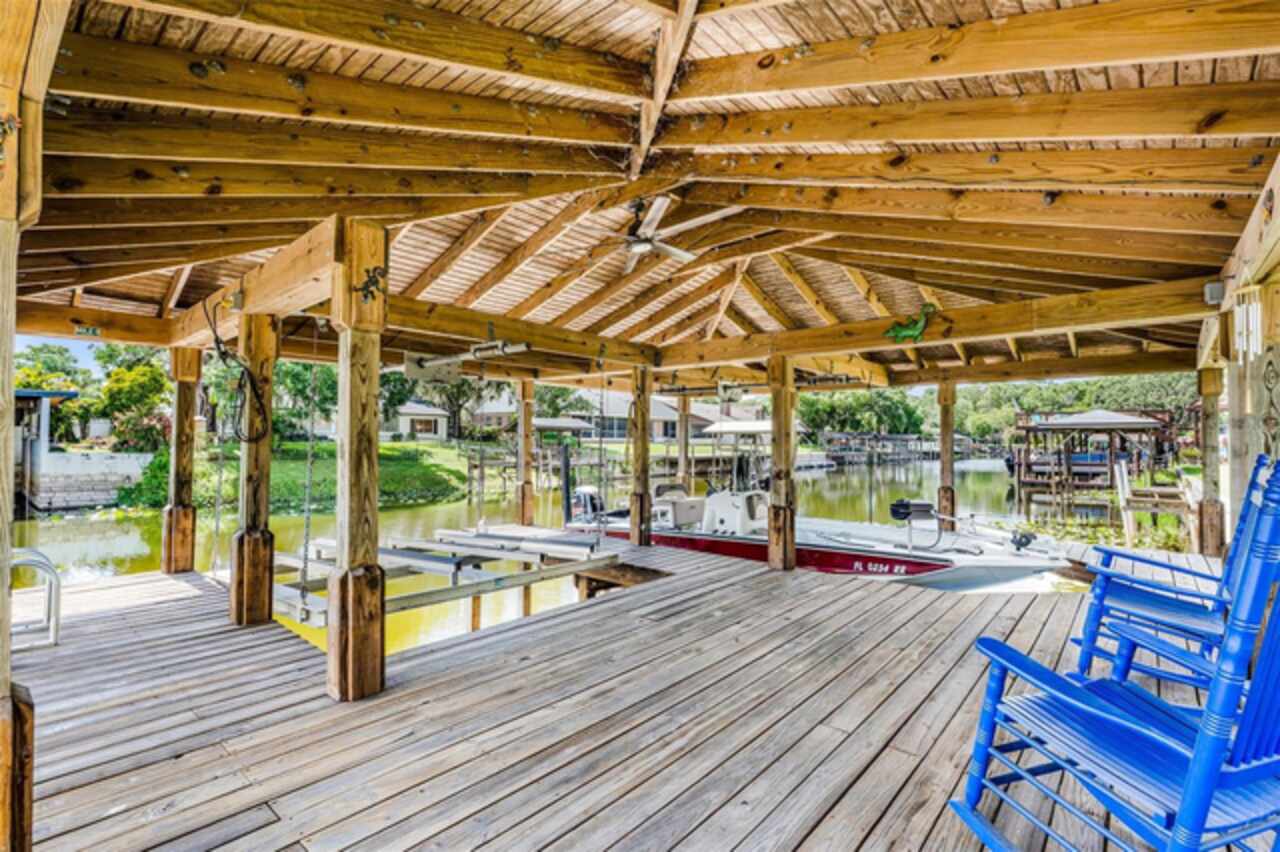 Covered boat dock with metal roof, 22' boat lift, and double jet ski lift. 5 houses off of St. Johns River