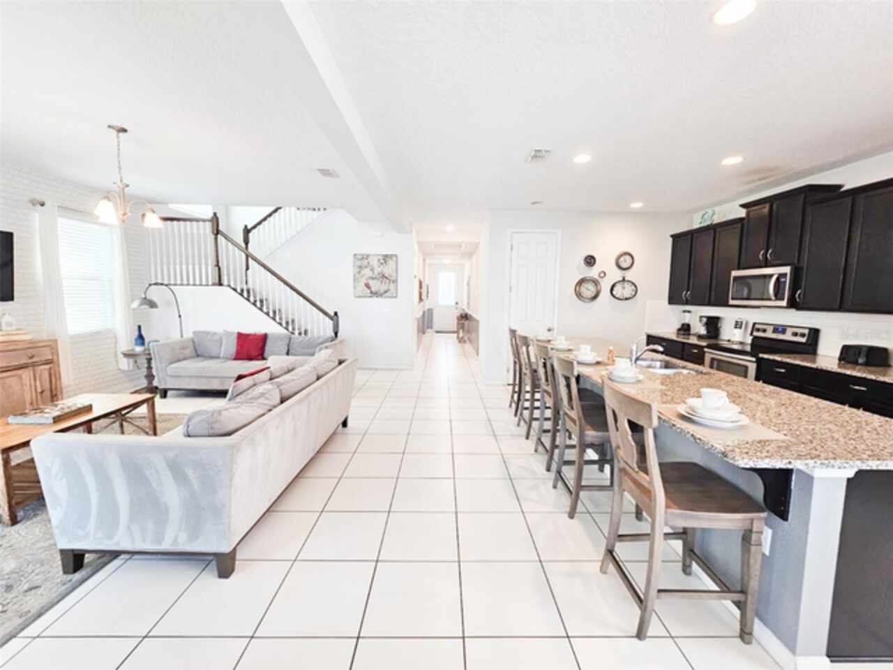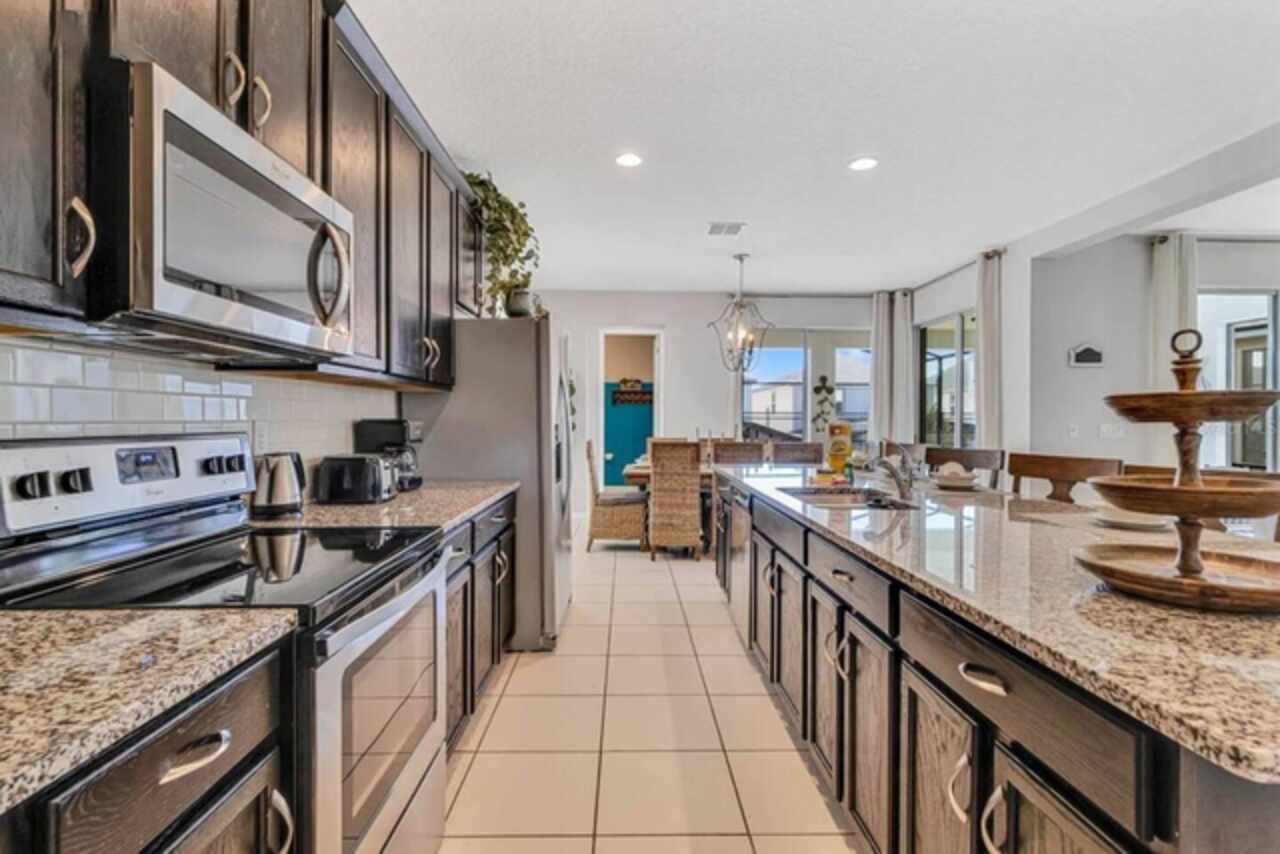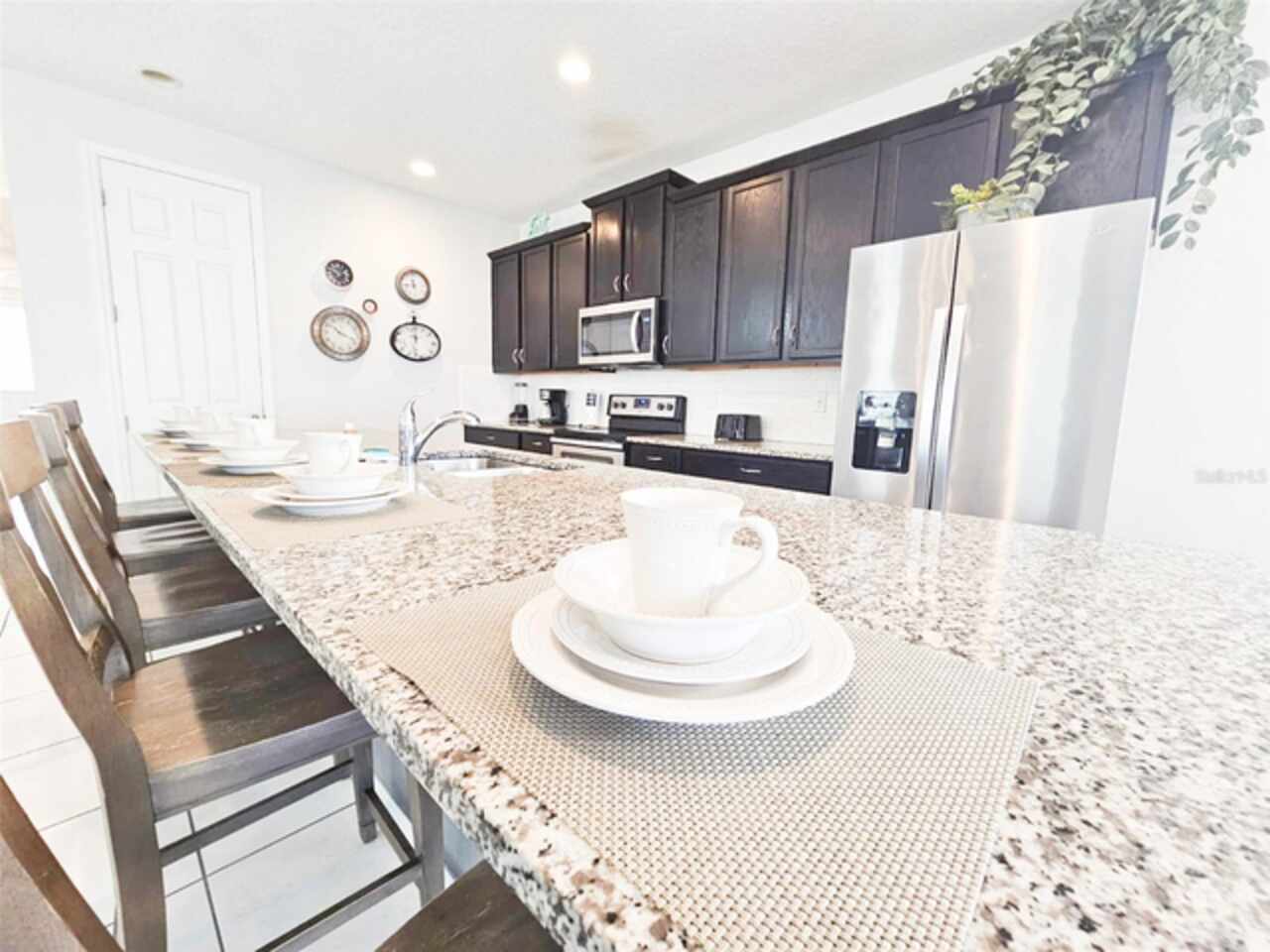 Own your piece of the magic at Solara Resort! This stunning 6-bedroom, 4.5-bath is designed for relaxation, fun, and entertainment. From the moment you step into the grand foyer, you’ll be impressed with the open layout and natural light flowing through the gathering room and loft. The chef-inspired kitchen showcases an oversized island with granite countertops, a breakfast bar, stainless steel appliances, and a walk-in pantry. The first-floor owner’s suite offers a true retreat with a spacious walk-in closet and spa-style bath with dual vanities. Upstairs, you’ll find additional bedrooms, a loft perfect for games or movies, and plenty of space for guests. Step outside to your private covered pool and lanai, perfect for enjoying the Florida sunshine. All of this inside Solara Resort, a gated vacation community with world-class amenities: clubhouse, fitness center, splash park, heated resort-style pool, restaurant, bar, coffee shop, and more! Just minutes from Disney, shopping, and dining, this home makes an ideal short-term rental investment or personal vacation getaway.