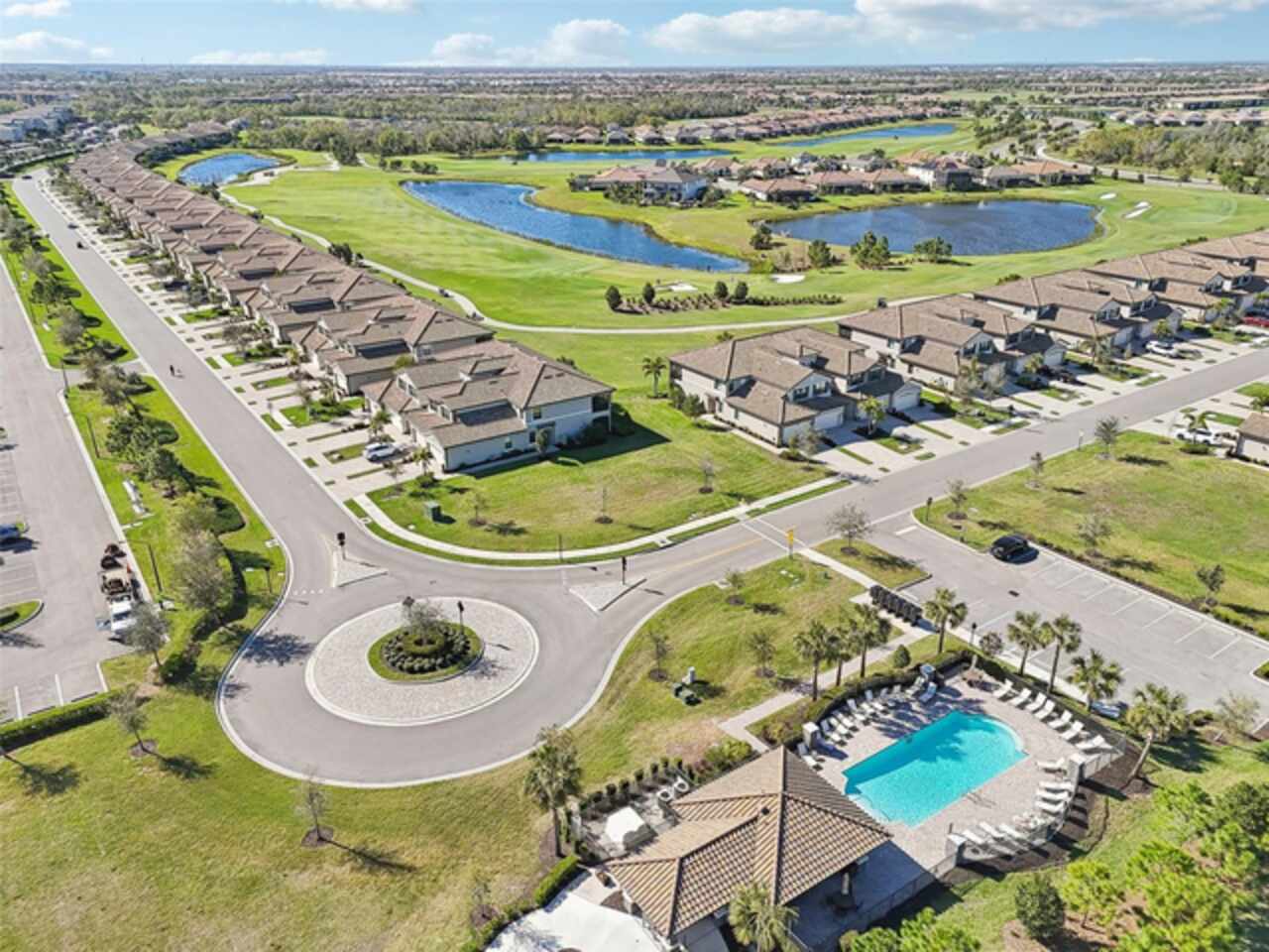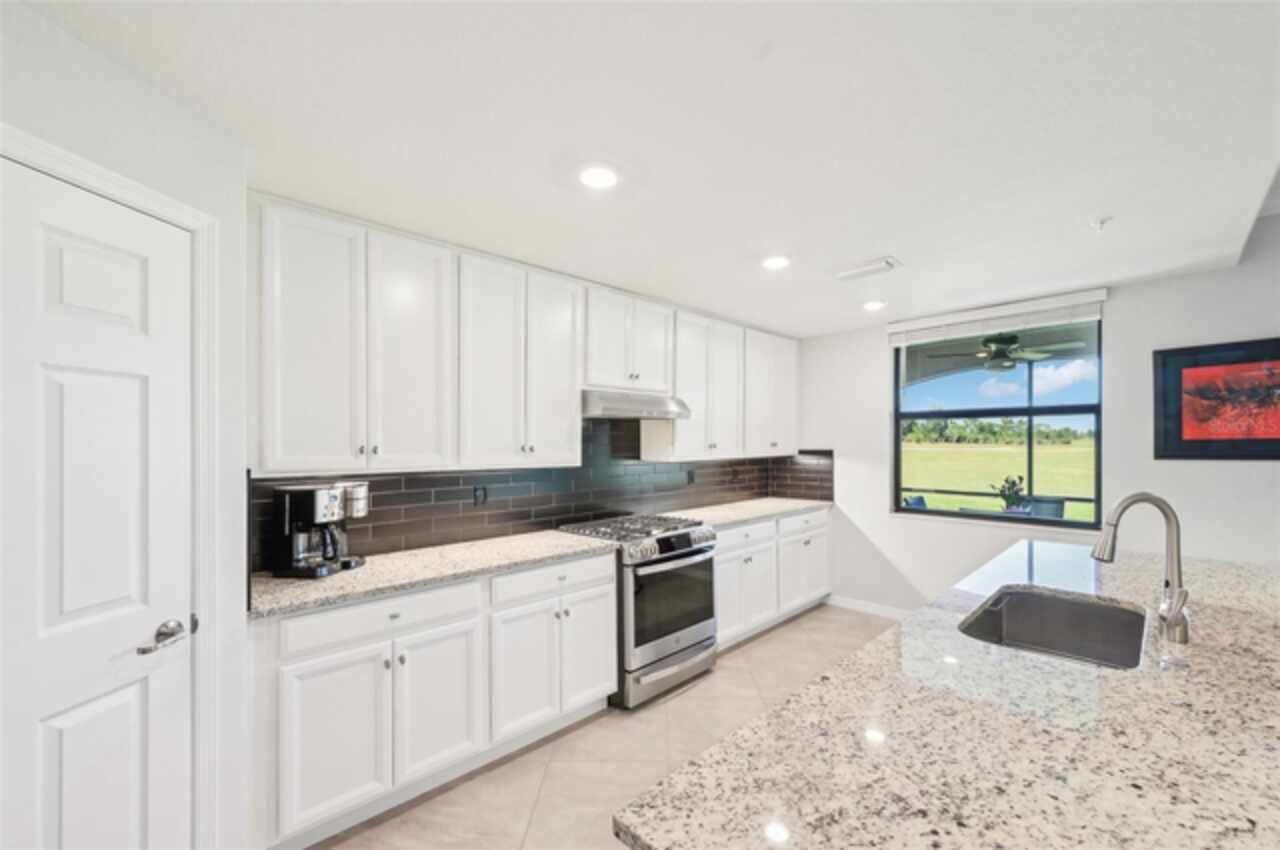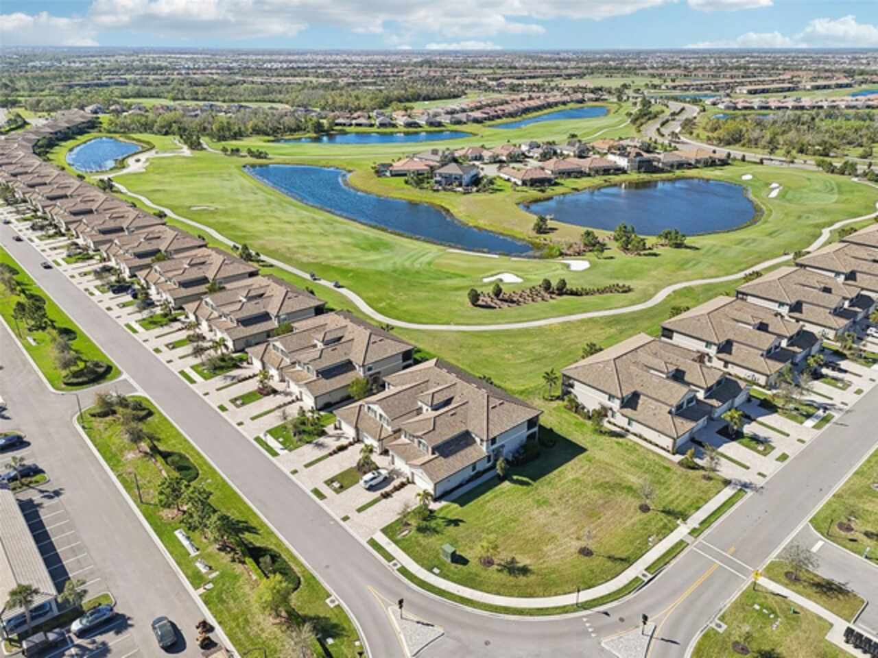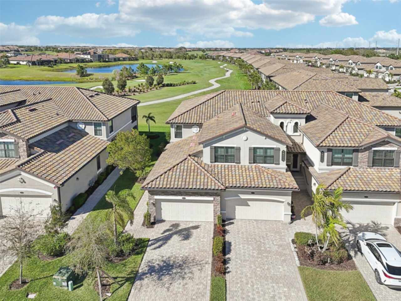Ideally Positioned for Golfside Living – PRIME Corner Location with Stunning Golf Views. Discover Luxury Resort-Style living in Lakewood National Golf Club with this lower-level 3-bedroom, 2-bathroom coach home which sits on a prime corner overlooking Piper 11 & 12, offering breathtaking golf course views, set back for privacy. Unwind with sunset and water views from your lanai or take in the sunrise from the satellite pool across the street. The open-concept split-bedroom floor plan boasts exceptional upgrades and a bright, inviting atmosphere with fresh interior paint. The gourmet kitchen features a large granite center island, newer refrigerator (2024), and stainless steel appliances. Kitchen upgrades include a touch-free faucet, spacious single-bowl sink, gas slide-in range oven with air fryer and convection, tile backsplash, roll-out cabinet shelving and under-cabinet lighting. A sleek stainless steel hood replaces the microwave, enhancing both style and ventilation. Custom built-ins in the dining and family rooms are topped with quartz counters. The primary suite includes dual walk-in closets, an en suite bath with dual vanities and an easy-to-clean shower with coated glass, and lanai access through glass sliders. A laundry room with built-in cabinetry and extra shelving adds convenience. The garage includes an epoxy-coated floor, pull-down attic stairs with plywood flooring for storage, a special generator plug, and plenty of wall-mounted racks for organization. The lanai features a weather-resistant epoxy coating, perfect for enjoying Florida’s sunshine with seamless access from glass sliders. The home also offers impact-rated windows and sliding doors for security and efficiency. Lakewood National Golf Club provides world-class amenities within this guard-gated community with 24-hour security, including a beach-entry lagoon pool, Tiki bar, spa, fitness center, tennis, pickleball, bocce, and practice facilities. The Grand Clubhouse offers fine dining, a bar, and a vibrant social calendar. The community also has miles of scenic walking trails and recreational spaces. As a resident, you'll enjoy membership to the 36-hole Arnold Palmer-designed golf course. Located in Lakewood Ranch, one of the nation’s top master-planned communities, you'll have access to trails, parks, lakes, year-round events, shopping, dining, healthcare, and top-rated schools—all just minutes away. Don’t miss this rare opportunity—schedule your private tour today!