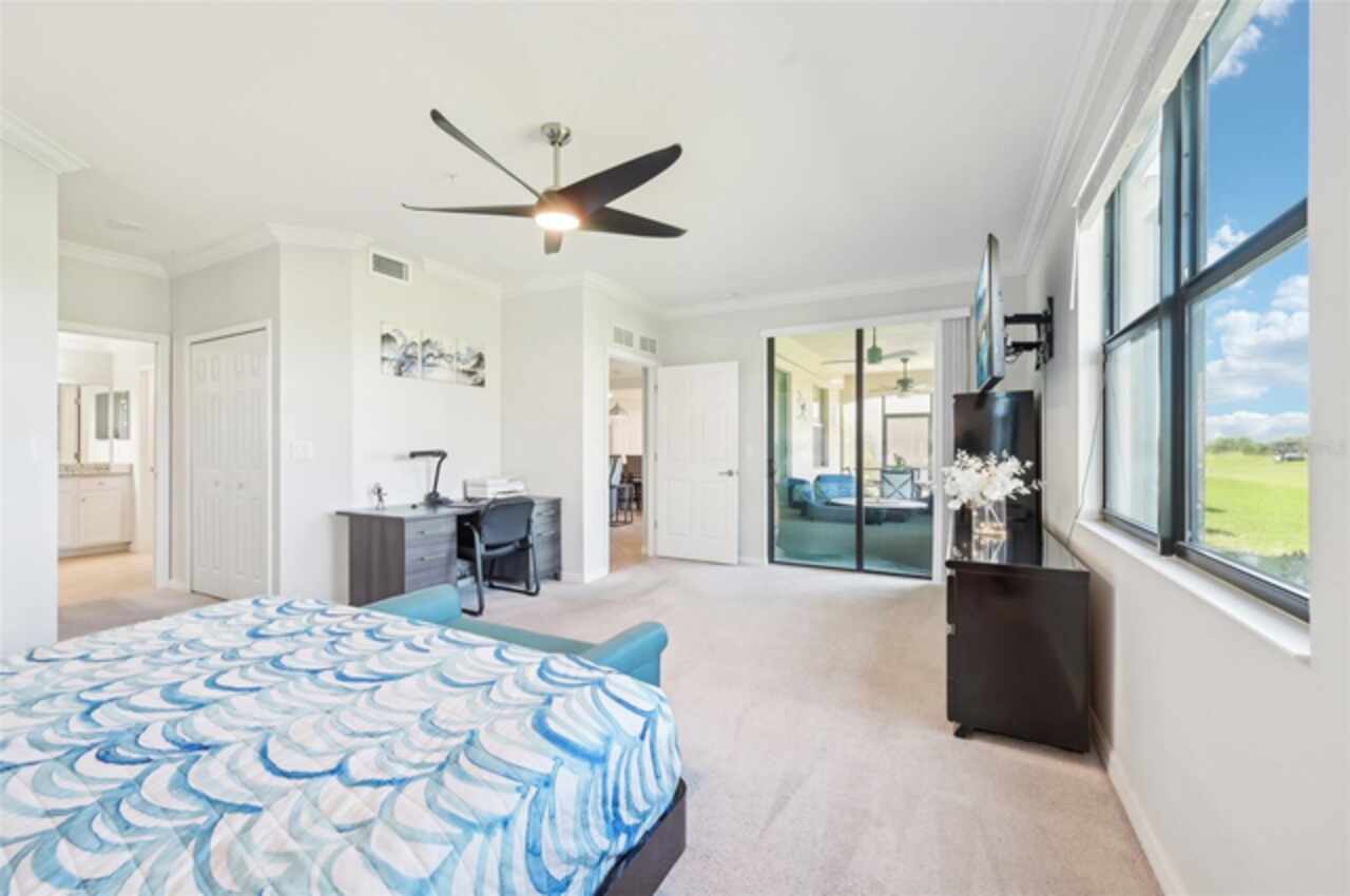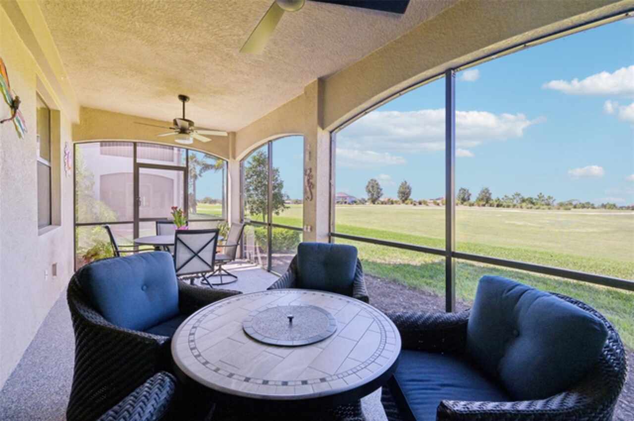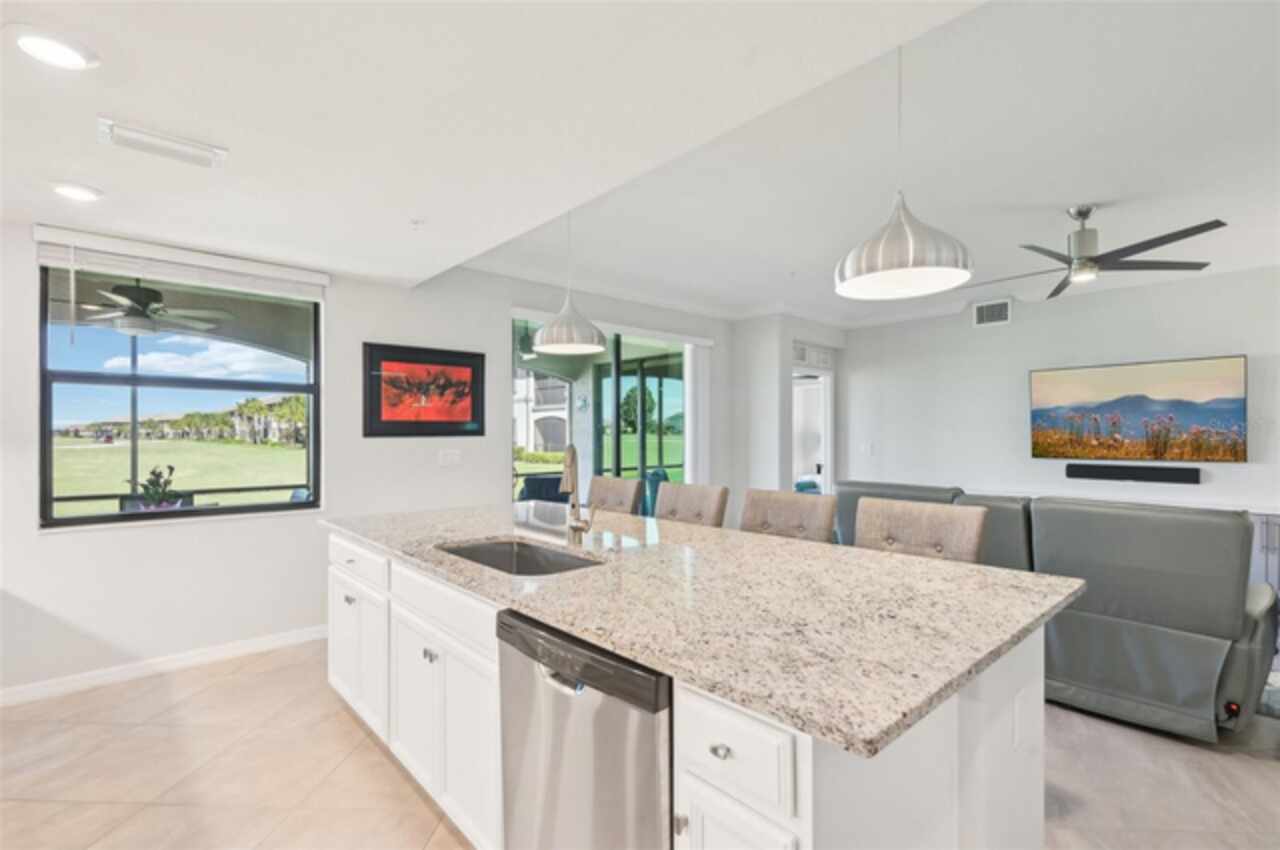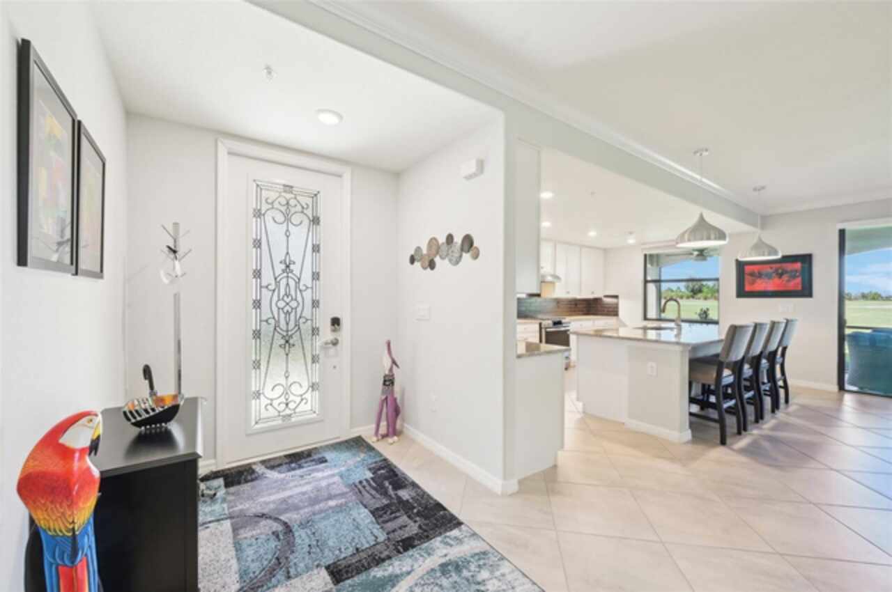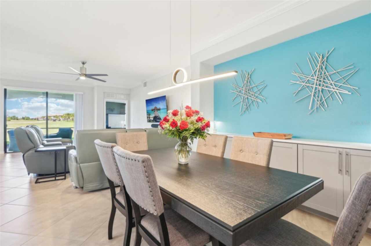 Ideally Positioned for Golfside Living – PRIME Corner Location with Stunning Golf Views. Discover Luxury Resort-Style living in Lakewood National Golf Club with this lower-level 3-bedroom, 2-bathroom coach home which sits on a prime corner overlooking Piper 11 & 12, offering breathtaking golf course views, set back for privacy. Unwind with sunset and water views from your lanai or take in the sunrise from the satellite pool across the street. The open-concept split-bedroom floor plan boasts exceptional upgrades and a bright, inviting atmosphere with fresh interior paint. The gourmet kitchen features a large granite center island, newer refrigerator (2024), and stainless steel appliances. Kitchen upgrades include a touch-free faucet, spacious single-bowl sink, gas slide-in range oven with air fryer and convection, tile backsplash, roll-out cabinet shelving and under-cabinet lighting. A sleek stainless steel hood replaces the microwave, enhancing both style and ventilation. Custom built-ins in the dining and family rooms are topped with quartz counters. The primary suite includes dual walk-in closets, an en suite bath with dual vanities and an easy-to-clean shower with coated glass, and lanai access through glass sliders. A laundry room with built-in cabinetry and extra shelving adds convenience. The garage includes an epoxy-coated floor, pull-down attic stairs with plywood flooring for storage, a special generator plug, and plenty of wall-mounted racks for organization. The lanai features a weather-resistant epoxy coating, perfect for enjoying Florida’s sunshine with seamless access from glass sliders. The home also offers impact-rated windows and sliding doors for security and efficiency. Lakewood National Golf Club provides world-class amenities within this guard-gated community with 24-hour security, including a beach-entry lagoon pool, Tiki bar, spa, fitness center, tennis, pickleball, bocce, and practice facilities. The Grand Clubhouse offers fine dining, a bar, and a vibrant social calendar. The community also has miles of scenic walking trails and recreational spaces. As a resident, you'll enjoy membership to the 36-hole Arnold Palmer-designed golf course. Located in Lakewood Ranch, one of the nation’s top master-planned communities, you'll have access to trails, parks, lakes, year-round events, shopping, dining, healthcare, and top-rated schools—all just minutes away. Don’t miss this rare opportunity—schedule your private tour today!