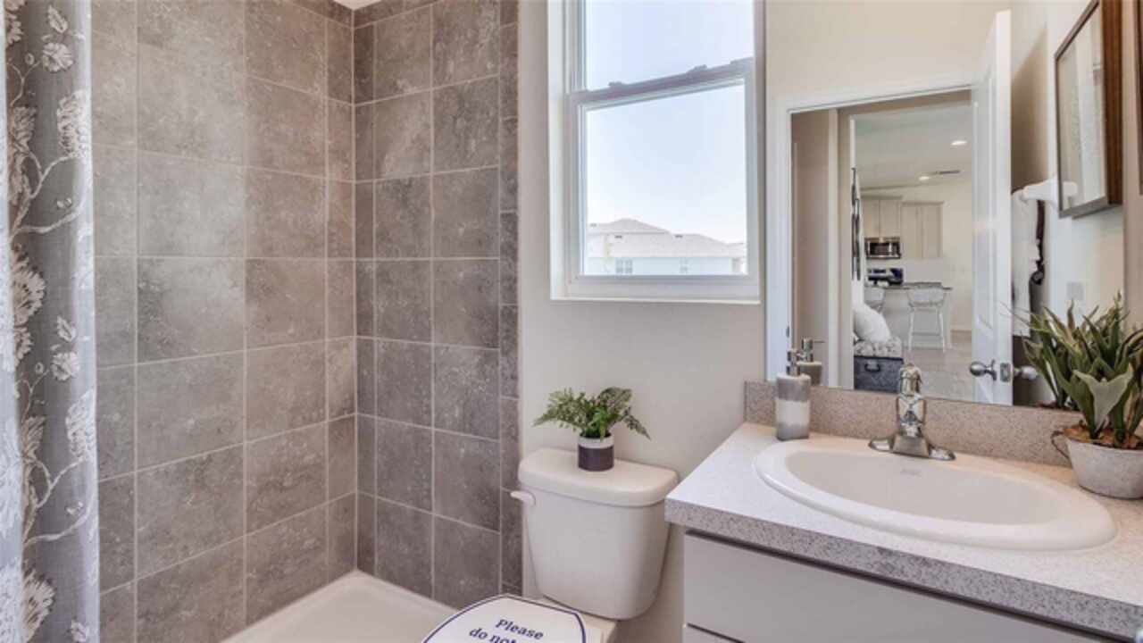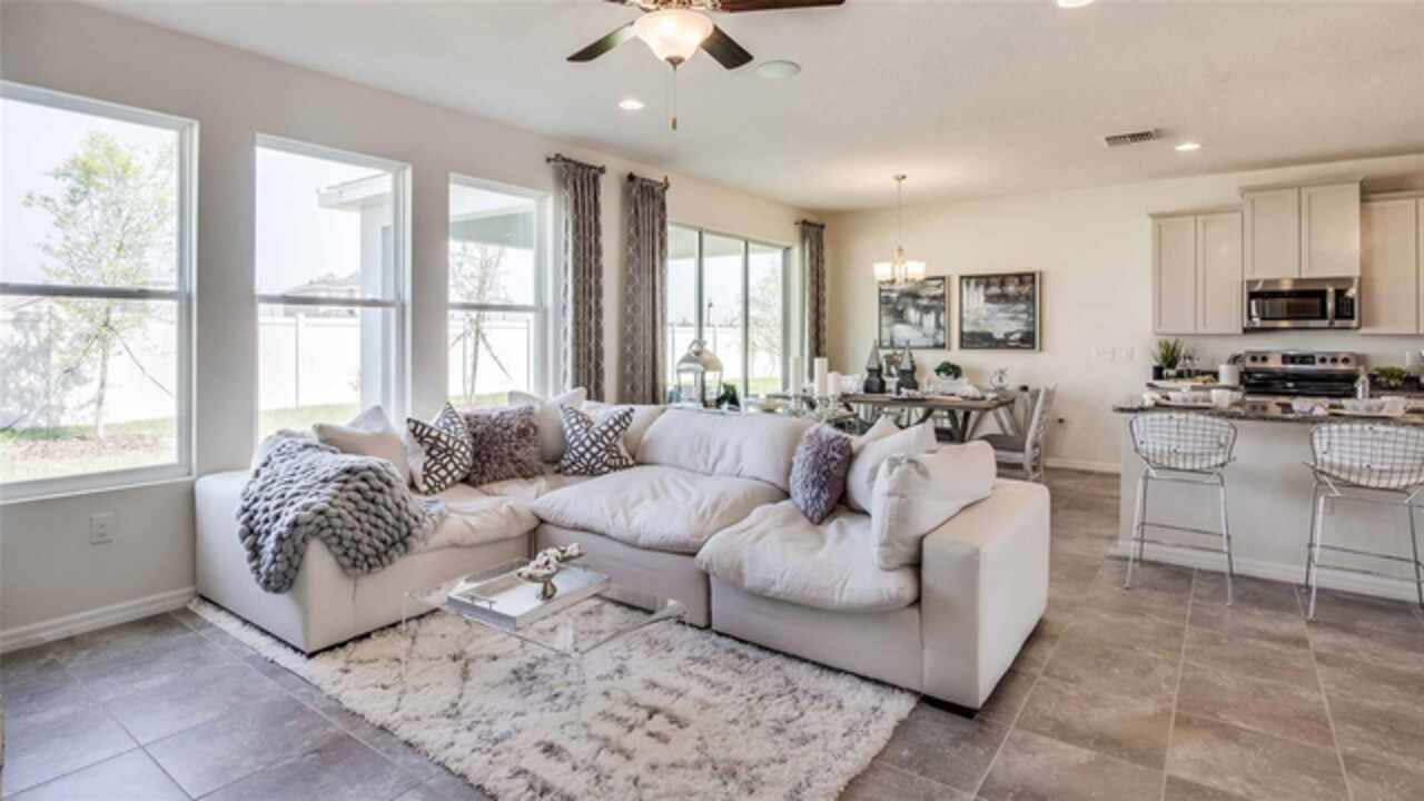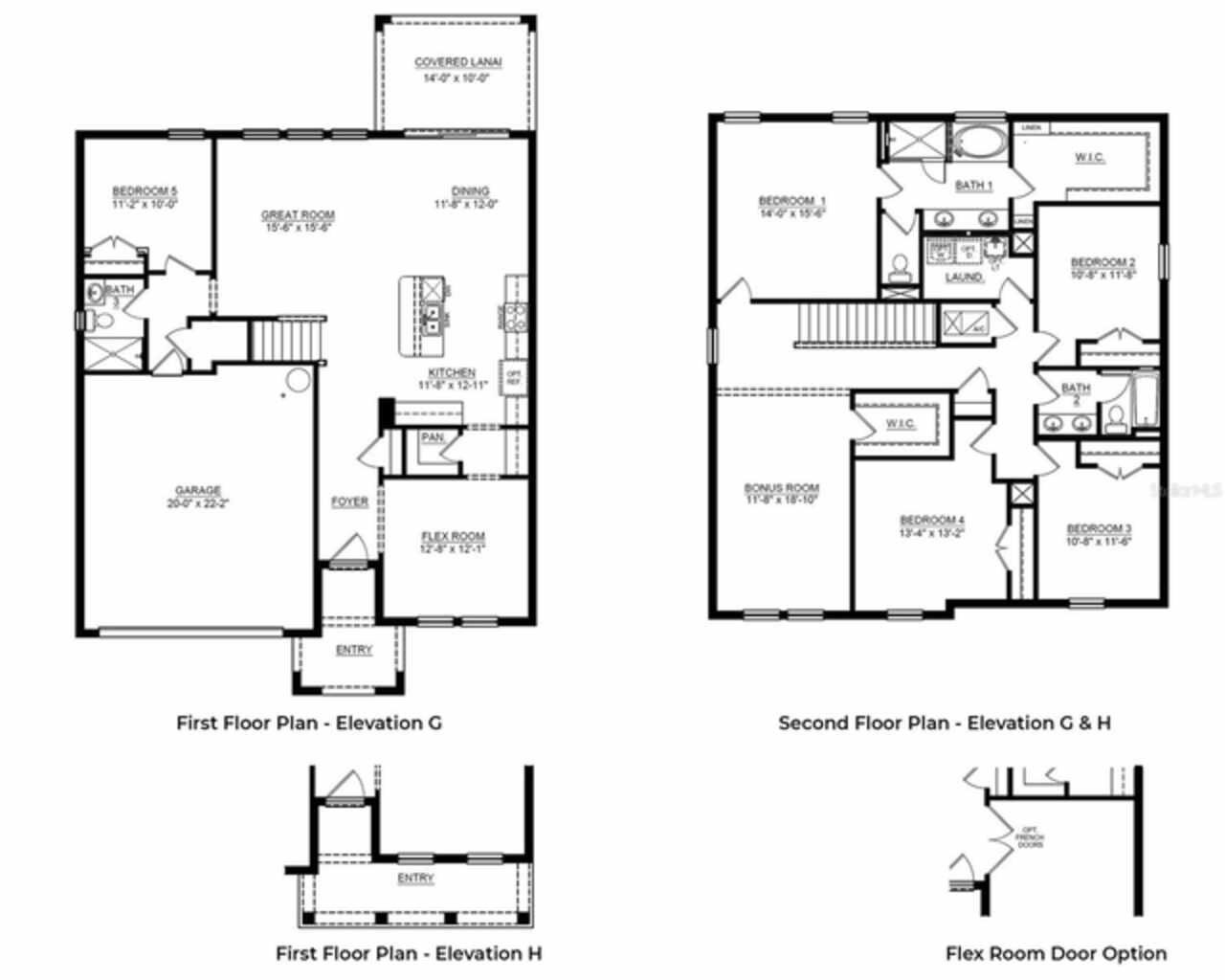 Under Construction. MOVE IN READY! ALL CLOSING COSTS PAID + Special Interest Rates with the use of our preferred lender - Now through Dec. 14th. Don't miss your chance - only a few homes left in this community! This two-story, all concrete block constructed, two-car garage home has a large open concept kitchen overlooking the great room and dining area that leads to a covered lanai. The first floor also provides a flex room upon entering the home, as well as a spacious guest bedroom and full bathroom. Upstairs there is a large bonus room, great for work or for play, as well as Bedroom 1 with ensuite bath, three additional bedrooms, a third full bathroom, and a well-appointed laundry room. This home comes with stainless-steel dishwasher, electric range, and microwave. Pictures, photographs, colors, features, and sizes are for illustration purposes only and will vary from the homes as built. Home and community information including pricing, included features, terms, availability, and amenities are subject to change and prior sale at any time without notice or obligation.