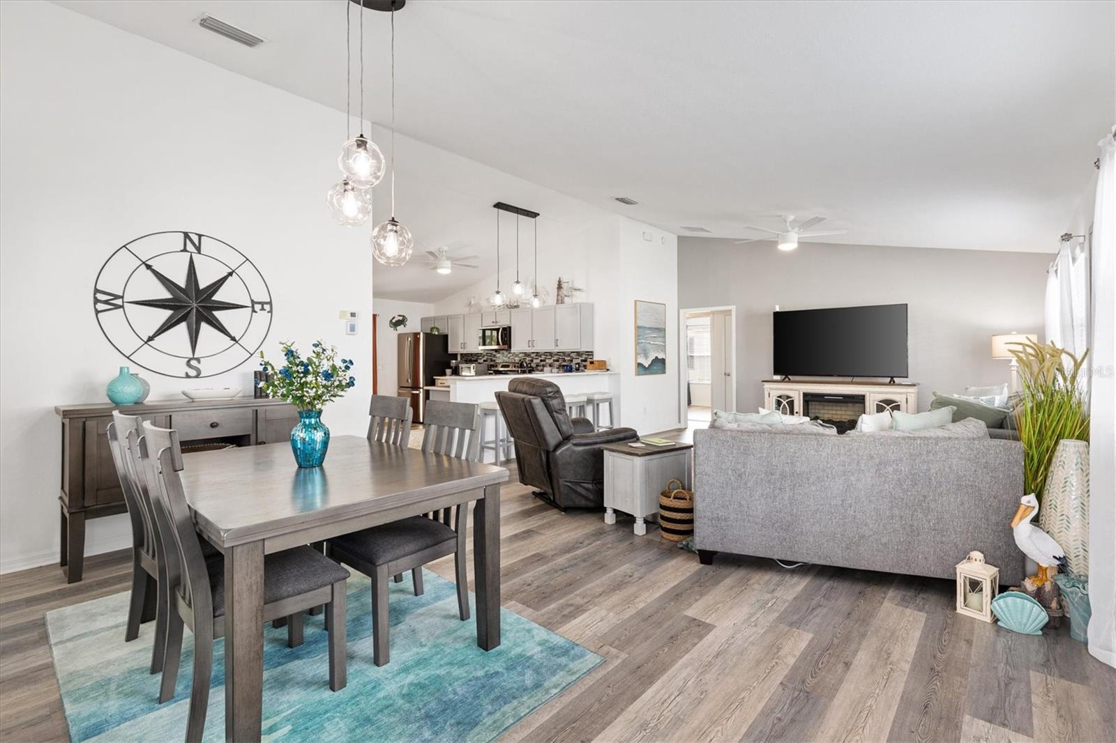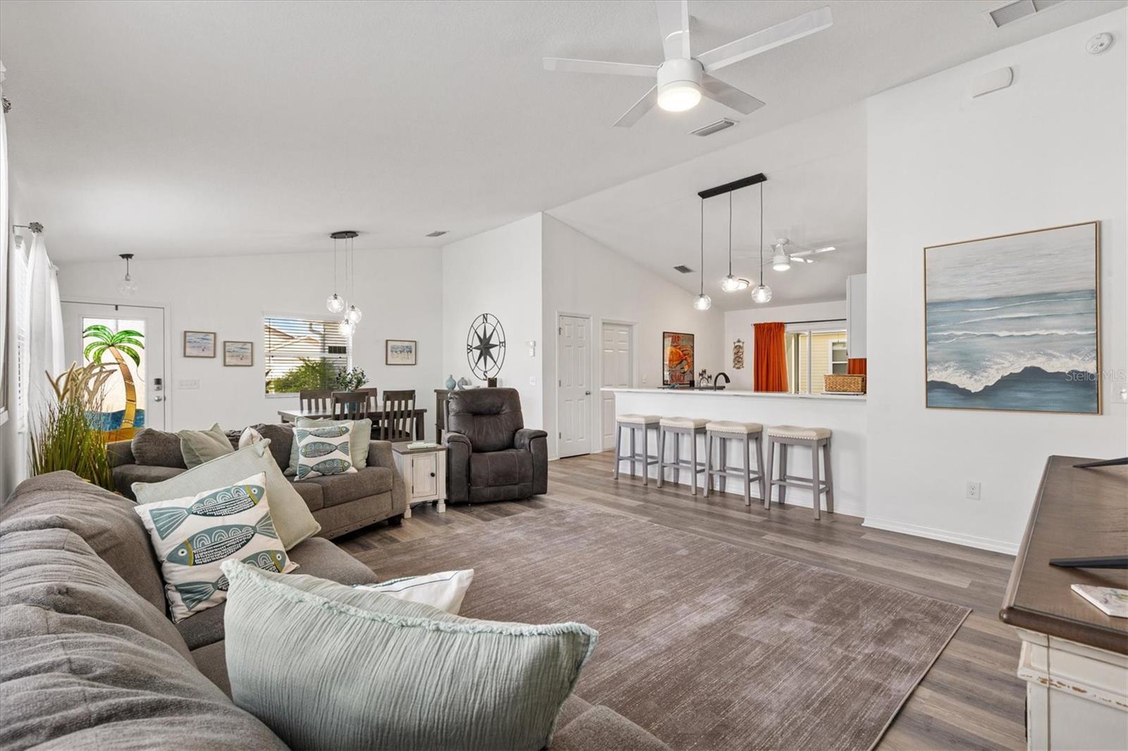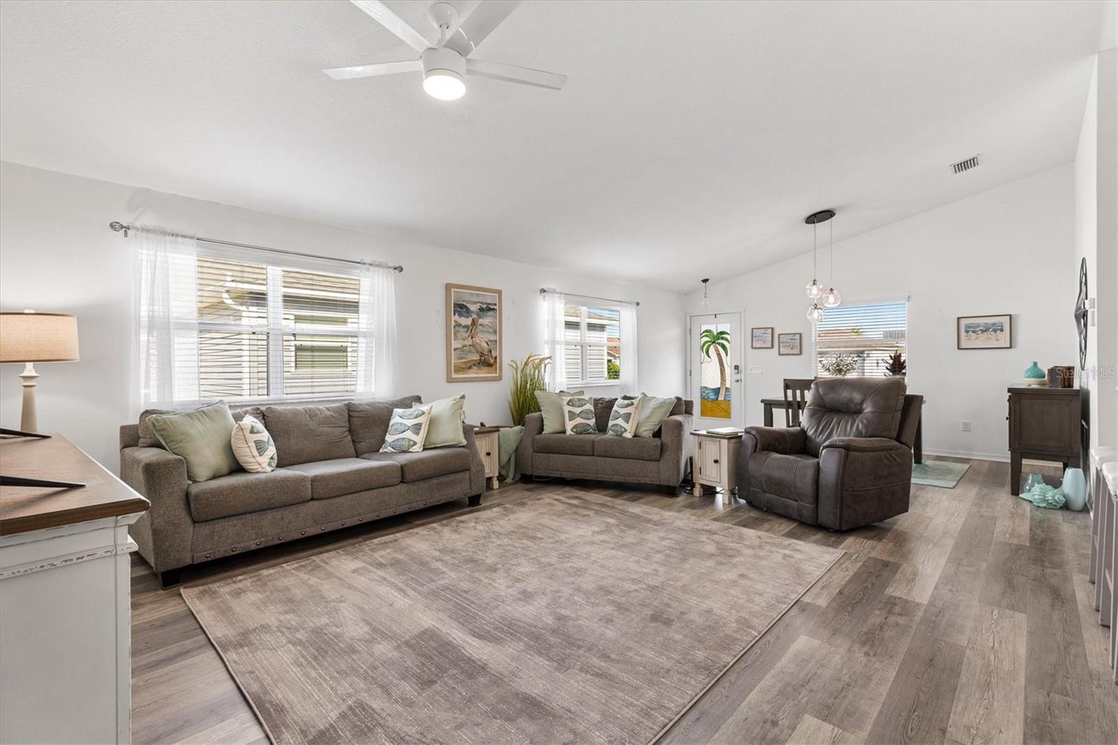 Experience comfortable, low-maintenance living in this beautifully updated 3-bedroom, 2-bath home just minutes from Lake Sumter Landing. This 1, 483-sq-ft residence features Luxury Vinyl Plank flooring throughout and a bright, open layout ideal for both seasonal and full-time enjoyment. The kitchen showcases sleek quartz countertops, modern finishes, and excellent workspace for everyday cooking or entertaining. A new roof and new HVAC provide peace of mind and true move-in-ready convenience. Spacious bedrooms and well-appointed baths offer comfort and flexibility for guests or a home office. With its prime location near dining, shopping, and nightly entertainment, this home delivers an updated, easy-care lifestyle in one of The Villages’ most desirable areas.
