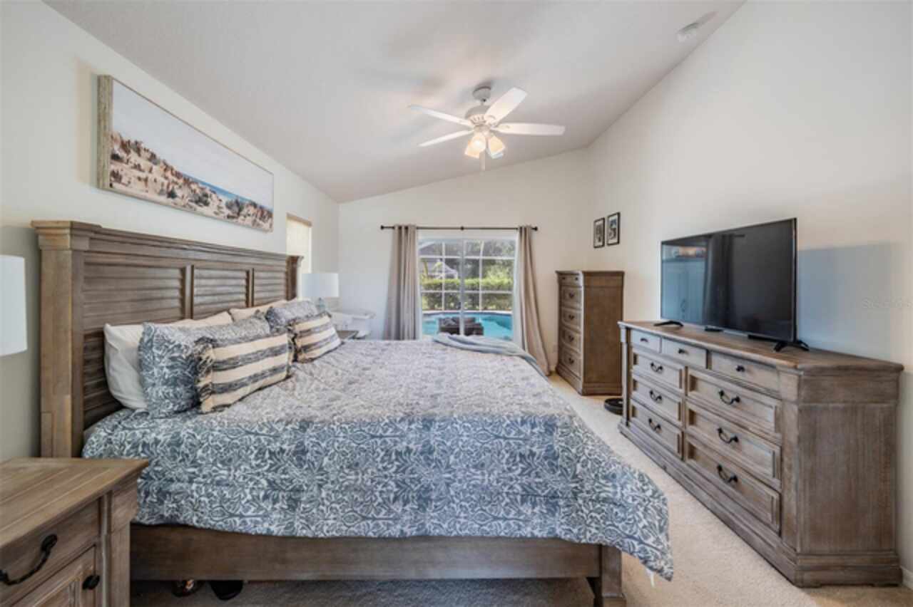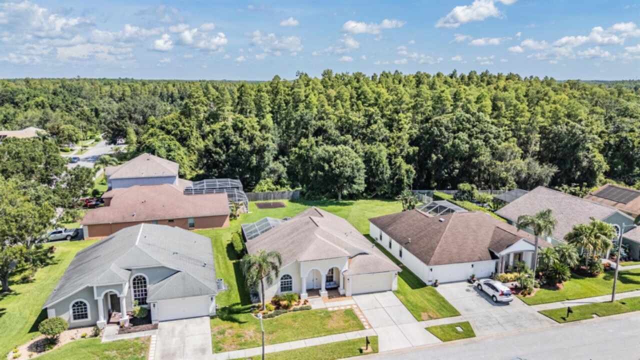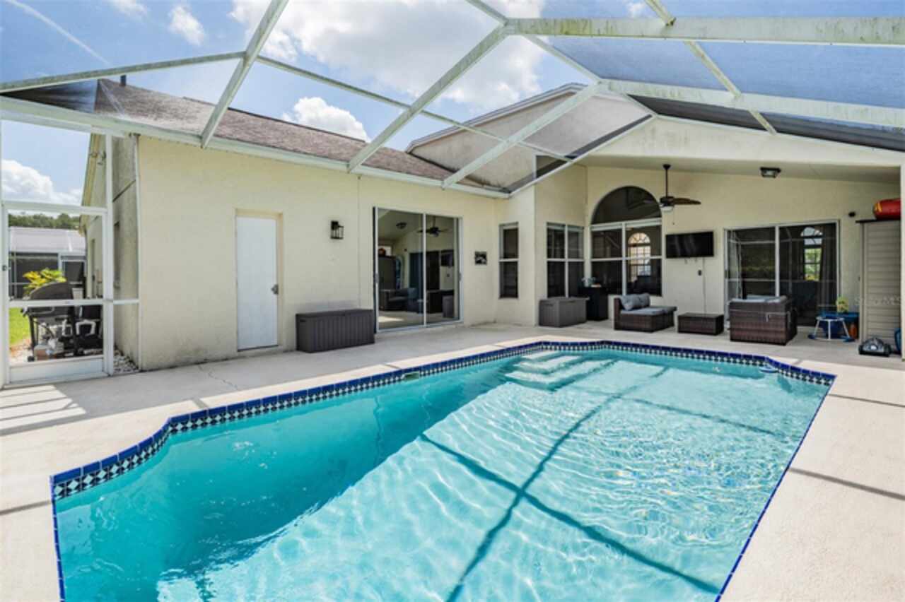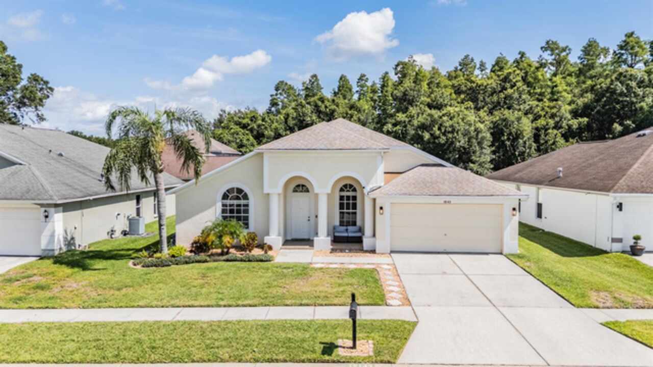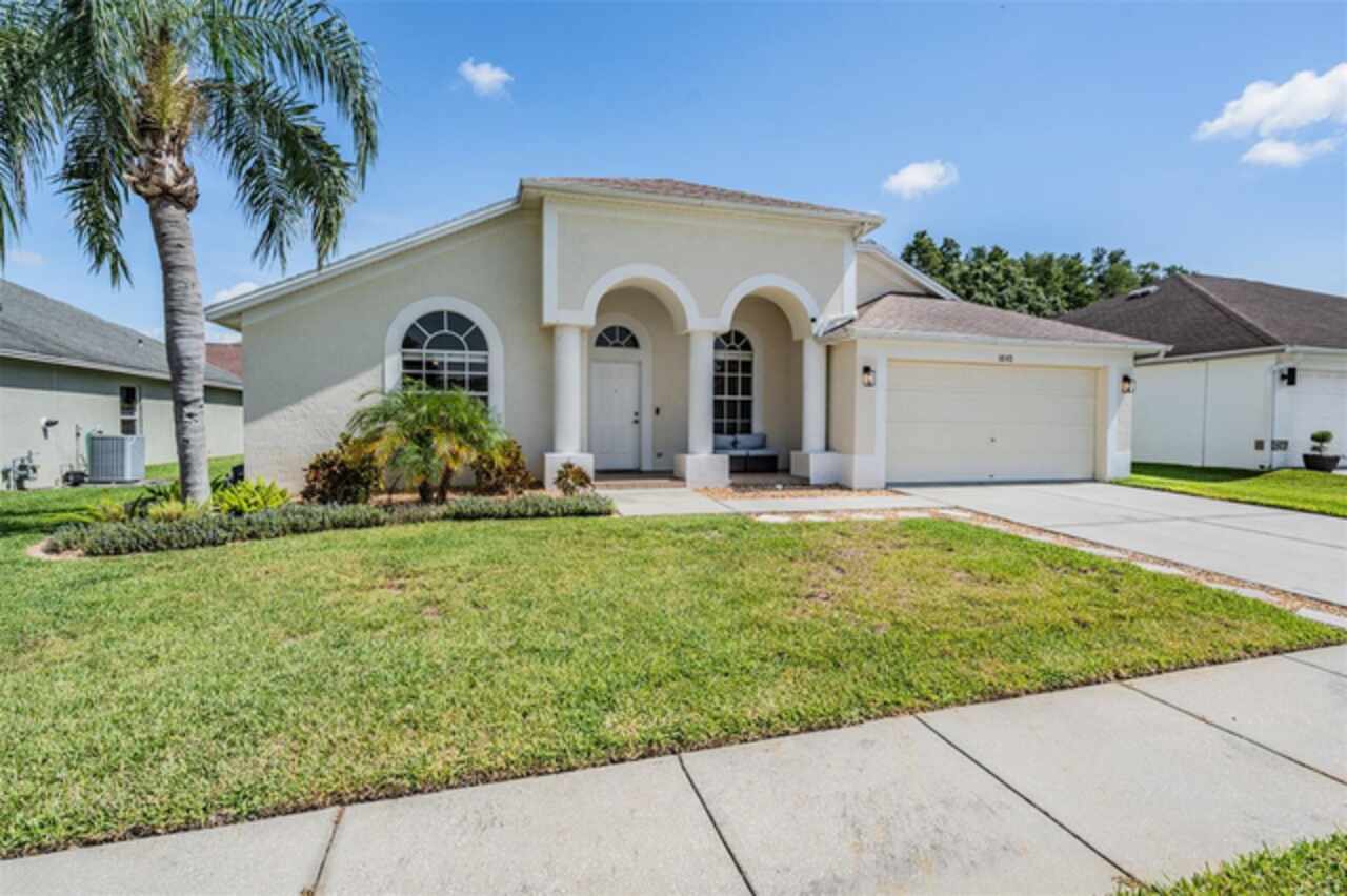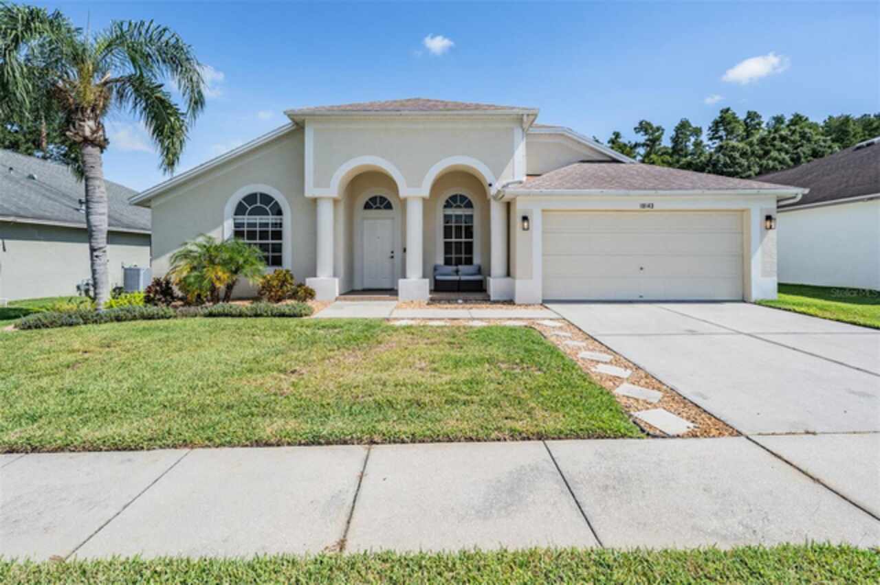 18143 Palm Breeze Drive- This property features a spacious layout with Four bedrooms, Three bathrooms, Two Car Garage, Pool, and a large backyard. Showcasing super clean living areas with New LVP flooring throughout, including carpeted bedrooms. The home boasts a modern kitchen with Quartz Countertops, Gas range, and updated Cabinets with pull out drawers, Stainless Steel Appliances, Water Softener and all newly painted interior 2025. The Master Bathroom has a walk in closet, double Vanities along with a separate tub and shower. The high ceilings and inset lights create an airy atmosphere. Additional amenities include a painted garage floor, New fans and light fixtures, a resurfaced pool with a 10 year warranty and new LED lighting. The HVAC (2022) and sprinkler systems (2024) are newly updated, with very LOW HOA fees and NO CDD fees, making it a desirable option for comfortable and affordable living!