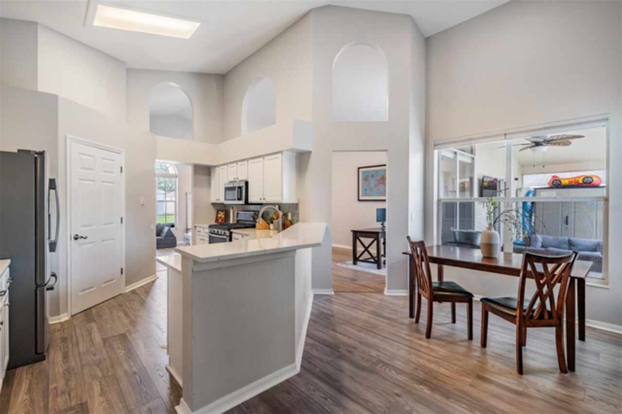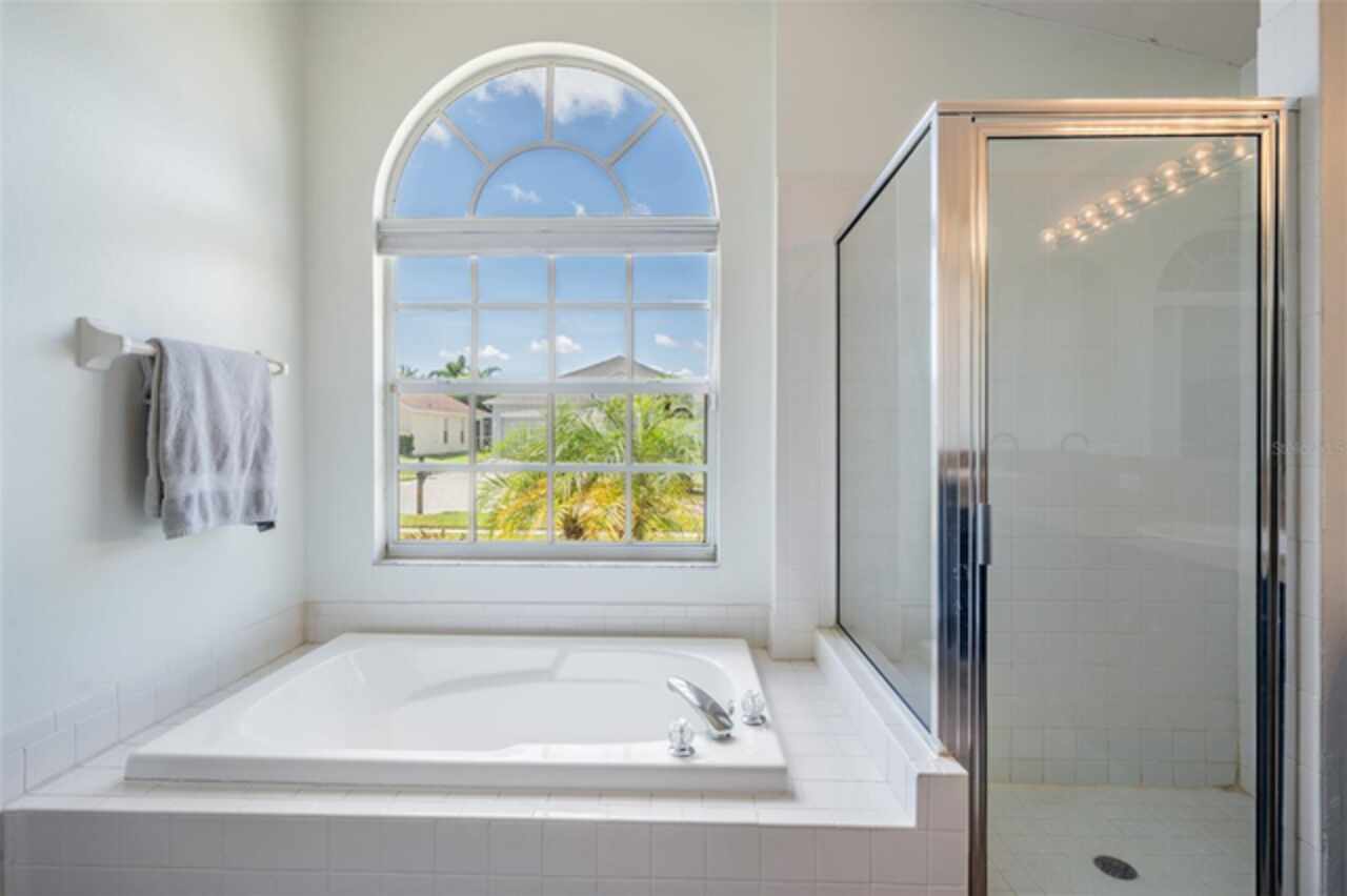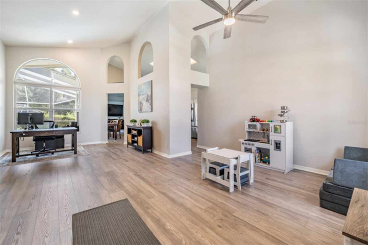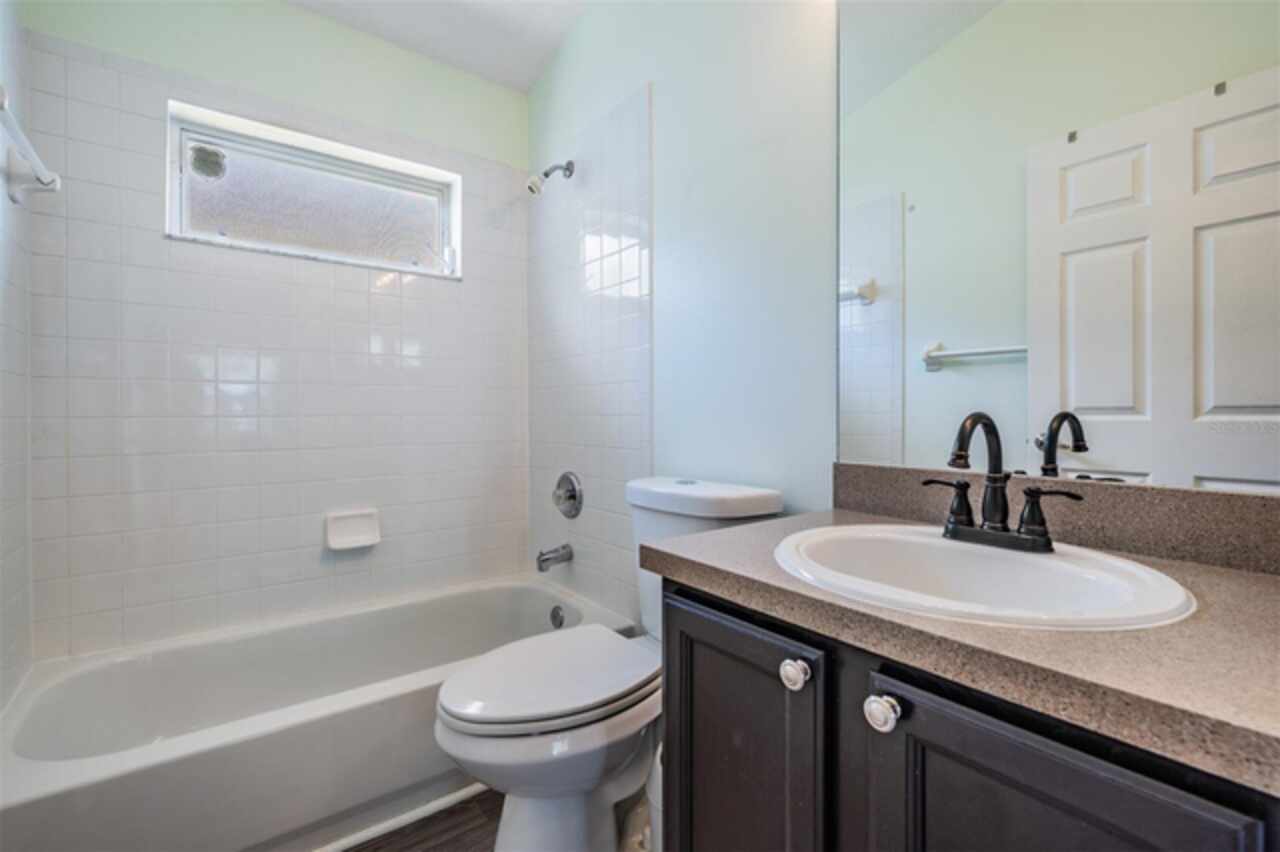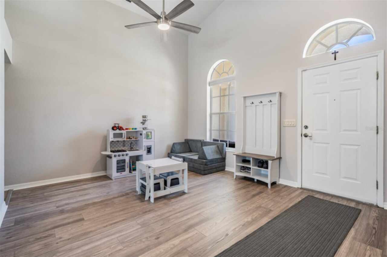 18143 Palm Breeze Drive- This property features a spacious layout with Four bedrooms, Three bathrooms, Two Car Garage, Pool, and a large backyard. Showcasing super clean living areas with New LVP flooring throughout, including carpeted bedrooms. The home boasts a modern kitchen with Quartz Countertops, Gas range, and updated Cabinets with pull out drawers, Stainless Steel Appliances, Water Softener and all newly painted interior 2025. The Master Bathroom has a walk in closet, double Vanities along with a separate tub and shower. The high ceilings and inset lights create an airy atmosphere. Additional amenities include a painted garage floor, New fans and light fixtures, a resurfaced pool with a 10 year warranty and new LED lighting. The HVAC (2022) and sprinkler systems (2024) are newly updated, with very LOW HOA fees and NO CDD fees, making it a desirable option for comfortable and affordable living!