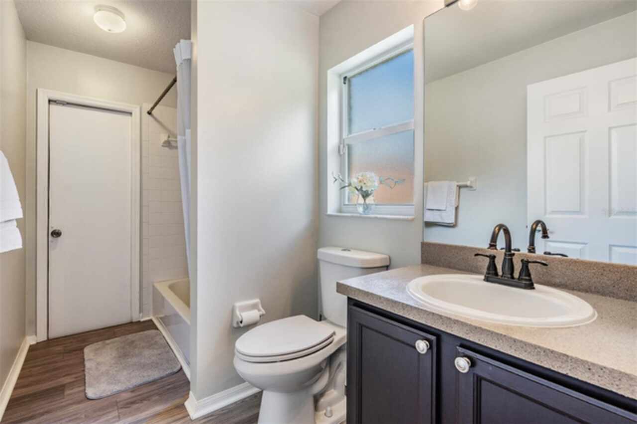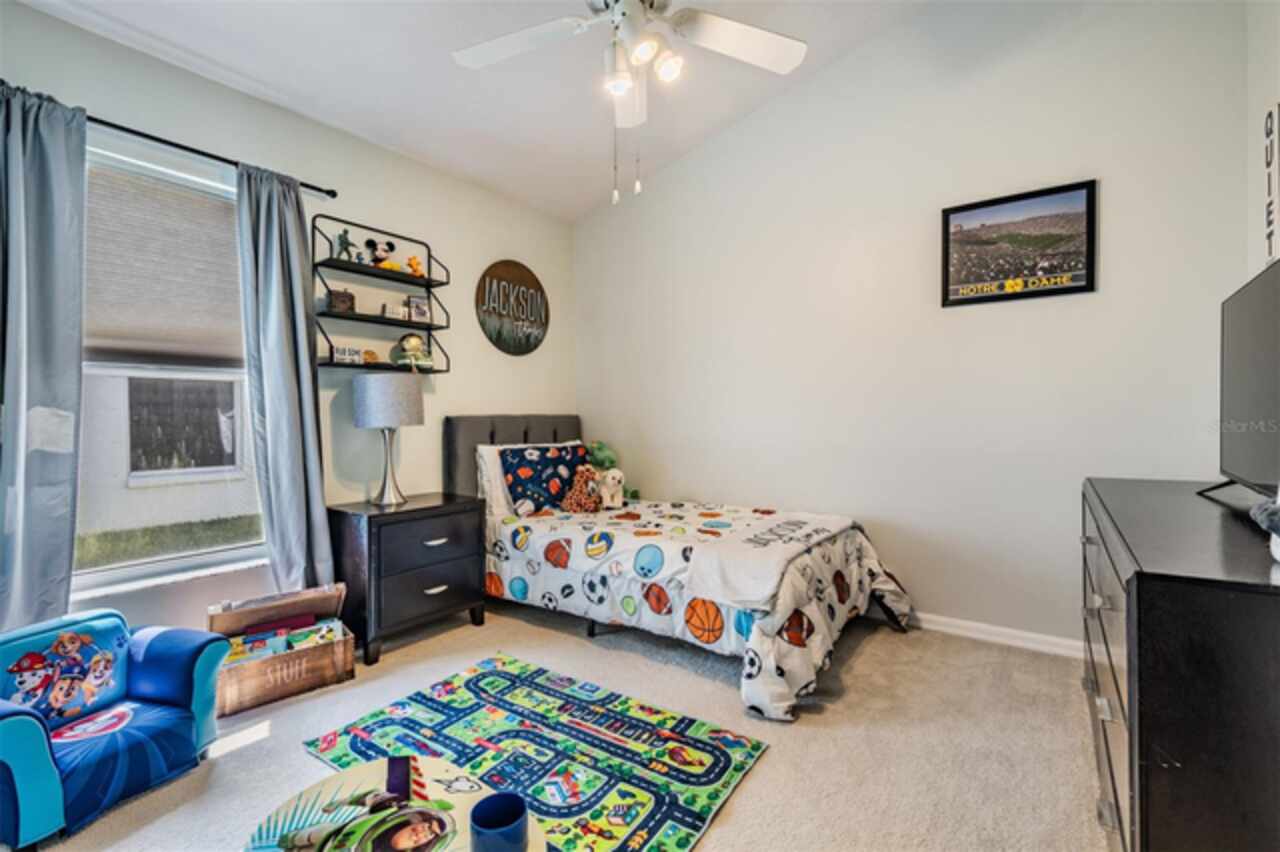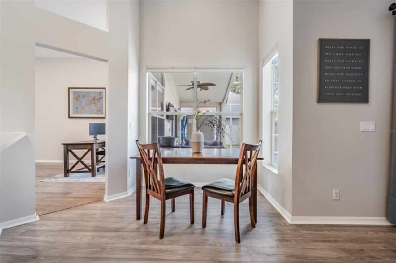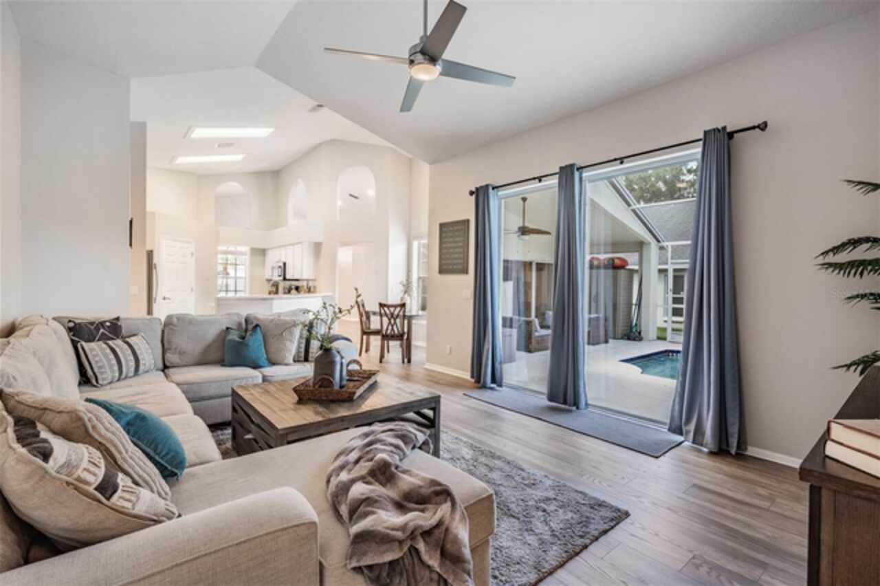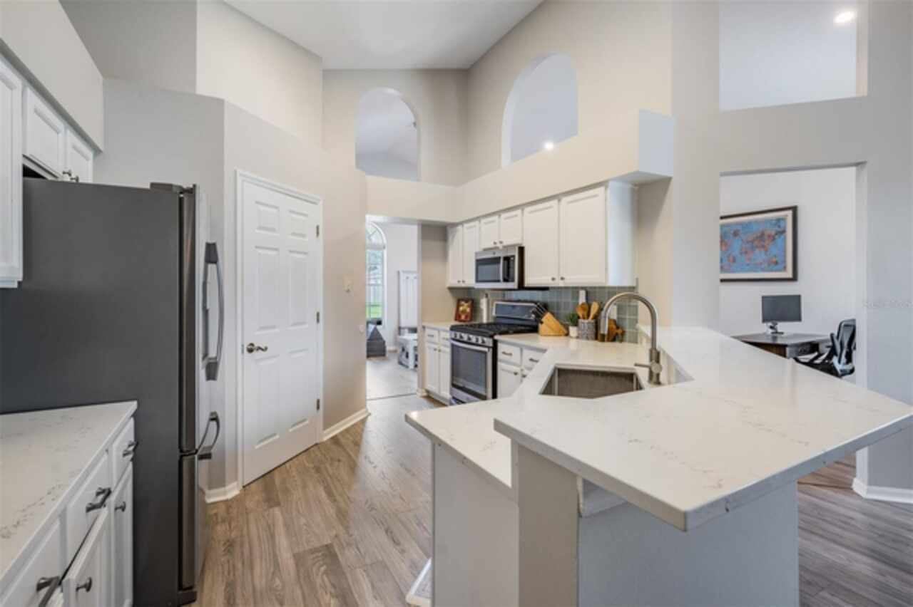 18143 Palm Breeze Drive- This property features a spacious layout with Four bedrooms, Three bathrooms, Two Car Garage, Pool, and a large backyard. Showcasing super clean living areas with New LVP flooring throughout, including carpeted bedrooms. The home boasts a modern kitchen with Quartz Countertops, Gas range, and updated Cabinets with pull out drawers, Stainless Steel Appliances, Water Softener and all newly painted interior 2025. The Master Bathroom has a walk in closet, double Vanities along with a separate tub and shower. The high ceilings and inset lights create an airy atmosphere. Additional amenities include a painted garage floor, New fans and light fixtures, a resurfaced pool with a 10 year warranty and new LED lighting. The HVAC (2022) and sprinkler systems (2024) are newly updated, with very LOW HOA fees and NO CDD fees, making it a desirable option for comfortable and affordable living!