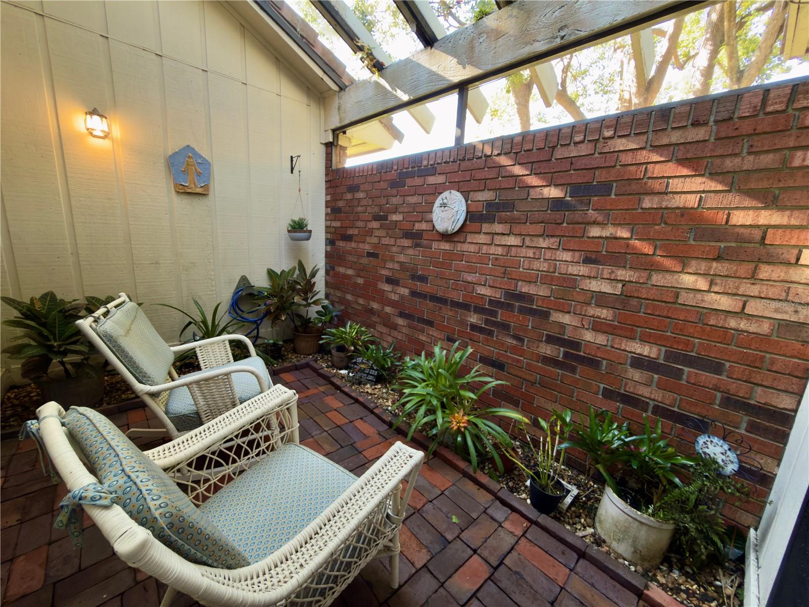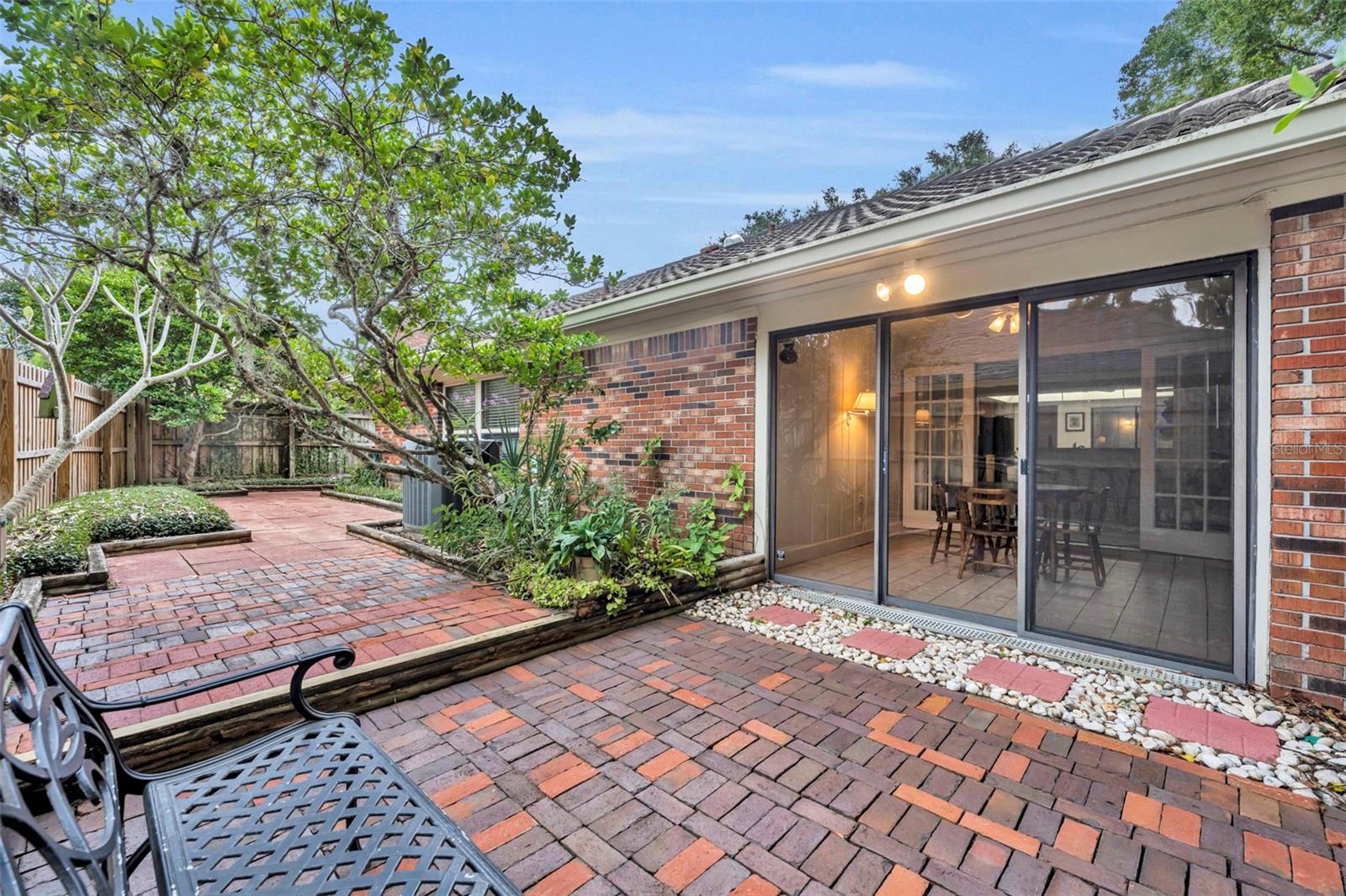 Under contract-accepting backup offers. Beautifully situated on an elevated 50-by-106-foot lot in the Waterbridge community, this spacious single-story home enjoys a quiet cul-de-sac setting overlooking a small neighborhood park and is adjacent to a green space that enhances privacy. The property has wonderful curb appeal with mature trees, a wide driveway, an oversized two-car garage, and an inviting entrance courtyard that creates a sheltered transition into the home. Inside, the floor plan offers generous room sizes and excellent flow, beginning with a large foyer that opens to both the formal living room and the formal dining room. The 17’ x 12’ living room features a vaulted ceiling and large-format windows. The formal dining room is spacious and opens through sliding glass doors to a private side courtyard ideal for container gardening or quiet outdoor seating. The kitchen is sizable and well designed, with extensive counter space and abundant cabinetry, and offers convenient access to the side courtyard. The kitchen opens to the family room, allowing easy interaction between the two spaces, and extends into the Florida room beyond. The Florida room is one of the most charming areas of the home, with a brick façade along one wall, sliding glass doors, and views of the brick-covered and maturely landscaped backyard. This light-filled space is perfect for casual dining, a reading nook, or year-round indoor–outdoor living. The bedroom wing is thoughtfully spaced away from the main living areas. The primary suite is generously proportioned at roughly 21’ x 17’, with a vaulted ceiling, walk-in closet, and a spacious bathroom that includes a standalone tub, separate shower, long vanity with significant counter space, and a dedicated makeup area. Two additional bedrooms are comfortable in size with reach-in closets and share a full hallway bath with a long vanity and a tub-shower combination. Closet space and storage are abundant throughout the home, including hall storage, bedroom closets, built-ins, and a deep garage with workshop potential. Outdoor living is a highlight of the property. In addition to the front entrance courtyard and the private dining courtyard, the home features a lovely brick-paved backyard framed by mature landscaping, planting beds, and established greenery. The space is low-maintenance and provides multiple areas for seating, gardening, and relaxation. Recent updates include replacement of the electrical panels, which is set for final permit closing inspection; a 2017 HVAC; and a 2018 full home replumb. A current four-point inspection is available and will be updated to reflect the electrical panel replacement once the permit is closed. With its cul-de-sac location, elevated lot, multiple courtyards, flexible living areas, and desirable proximity to Park Avenue, Baldwin Park, the Cady Way Trail, the nearby dog park, and Downtown Orlando, the home enjoys an exceptional setting within a highly regarded Winter Park school zone. Meticulously maintained and built on excellent bones, it offers the uncommon opportunity to move right in or renovate with vision and create something extraordinary.