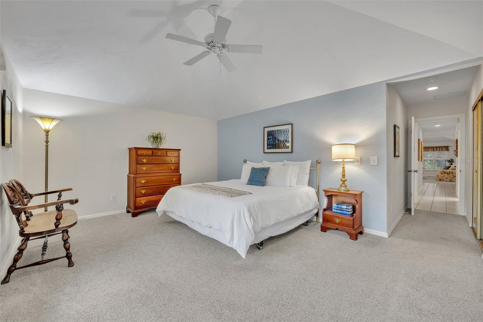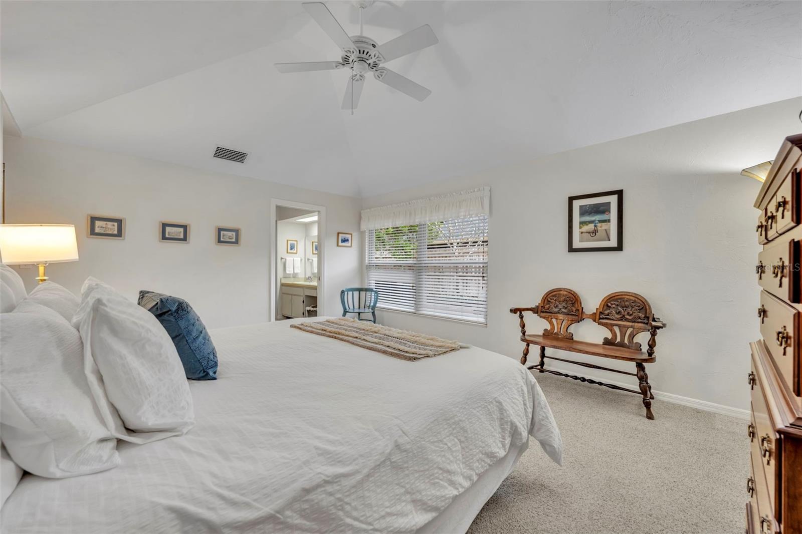 Cathedral Ceiling(s), Ceiling Fans(s), Primary Bedroom Main Floor, Solid Surface Counters, Thermostat, Vaulted Ceiling(s), Walk-In Closet(s), Window Treatments