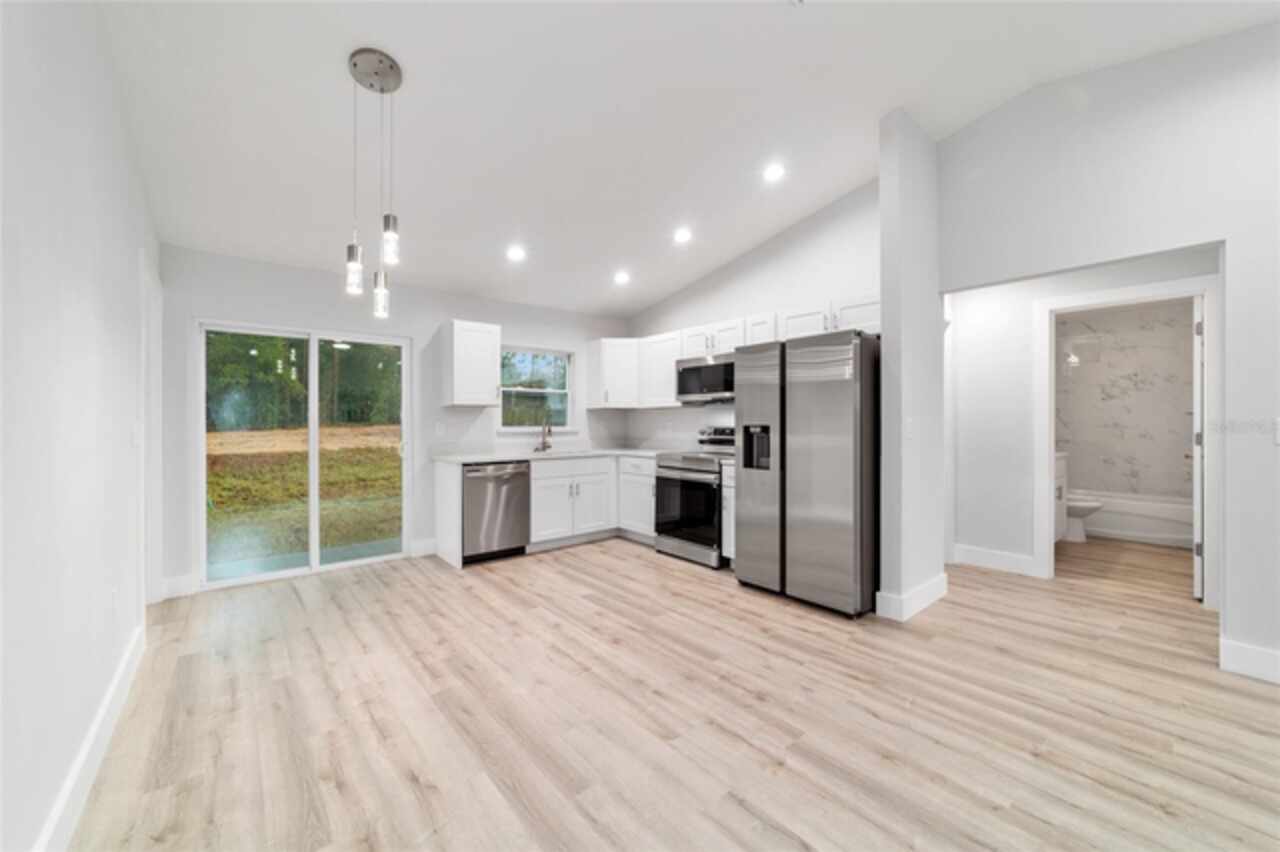 Under Construction. Welcome to this brand-new “Aleida” model by Bakan Homes. With 1, 058 square feet of living space, this charming wood-frame home is designed to offer modern comforts at an accessible price point. Step inside to discover an open concept living area featuring waterproof vinyl plank flooring in the social spaces and plush carpet in the bedrooms. The stylish L-shaped kitchen is equipped with sleek quartz countertops and stainless-steel appliances including a dishwasher. Enjoy the contemporary touch of LED pendant lighting in the dining area, adding a touch of elegance to the space. Located in a growing community, this home offers the perfect combination of affordability, modern finishes, and convenience. Don’t miss the opportunity to own this new construction home in Ocala—perfect for first-time buyers or those looking to downsize. Your investment is protected by a limited Builder Warranty that expires 1 year after the issuance of the Certificate of Occupancy. Pictures are of a recently completed model. Colors, finishes, and appliances may vary from home to home. Estimated completion dates are only an estimate and can be delayed due to unforeseen circumstances.