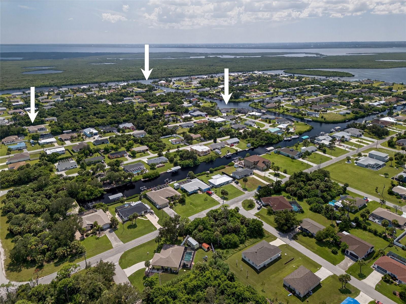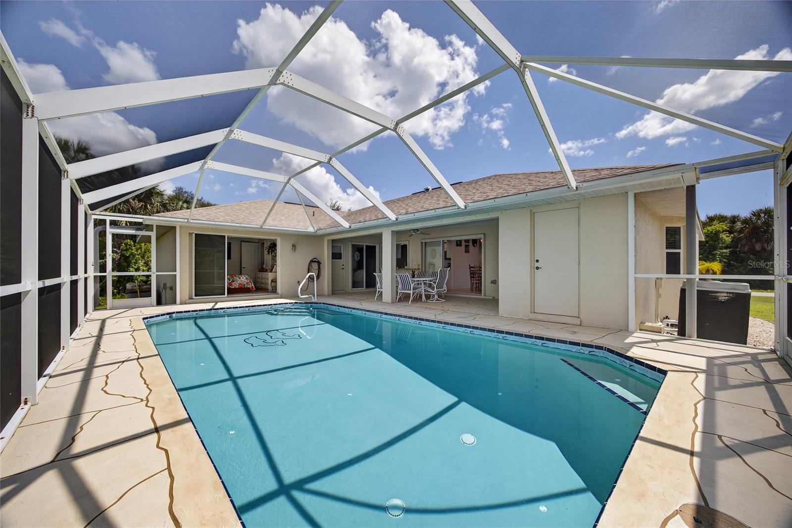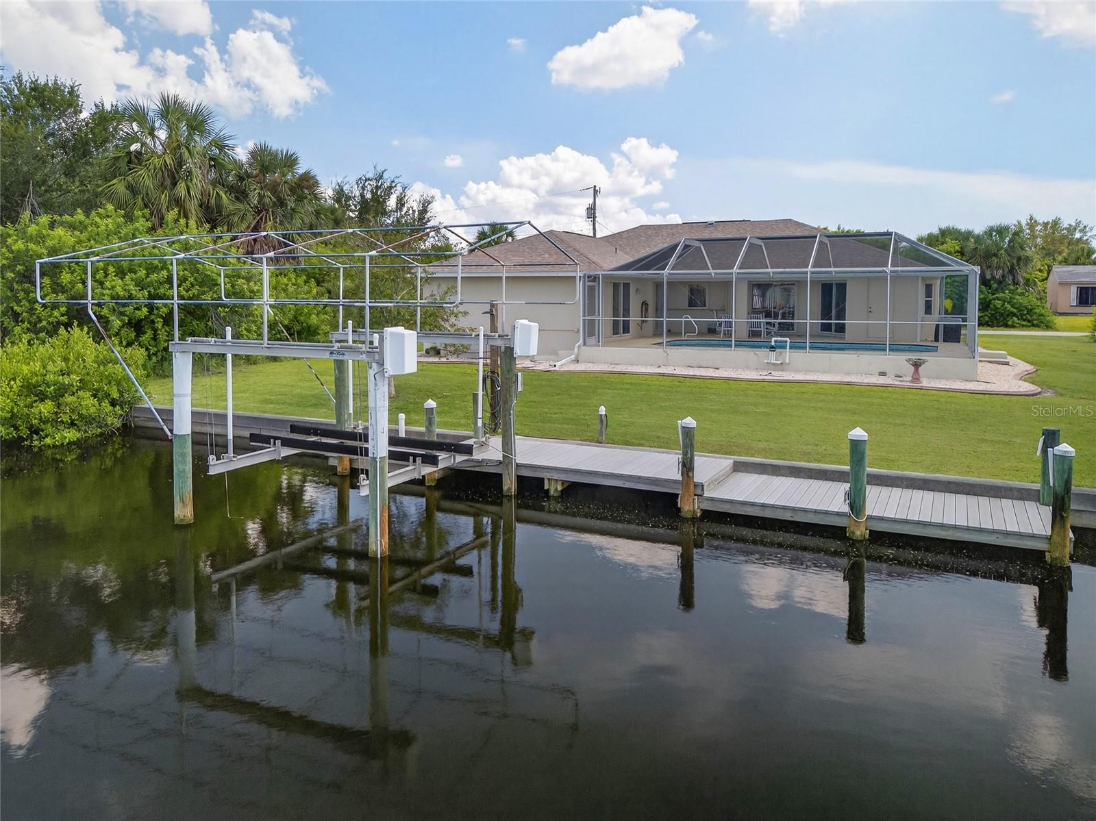 WATERFRONT 3 BEDROOM, 2 BATH, 2 CAR GARAGE, POOL HOME WITH SAILBOAT ACCESS TO CHARLOTTE HARBOR LEADING TO THE GULF! 80 FT OF WATER FRONTAGE, 38 FT TREX DOCK WITH WATER AND ELECTRIC PLUS 10, 000 LB. LIFT. Recent updates include newer roof 2022, new exterior paint 2021, lanai resurfacing 2020 & new motors for boatlift 2025. Step inside through screened entryway, split floor plan with water views, high ceilings, and tile floors throughout. The kitchen offers ample cabinetry for storage, new stainless-steel appliances 2024, farmer sink and pass-through window overlooking the lanai and pool, and breakfast bar great for entertaining. Generous primary suite features access to lanai, his and her walk-in closets and private en-suite bath featuring a vanity and walk-in shower. Split floor plan provides guests with plenty of privacy with 2 additional bedrooms with walk-in closets and full guest with access to lanai. Additional features include inside laundry room with new washer and dryer 2024, new AC 2022, whole house water filter, whole house surge protector on main electric box, generator plug 2022, new garage door opener 2024, new pool water heater 2025, newer pool pump 2023, and self-cleaning pool system, private dock and boat slip, breathtaking water views—perfect for fishing or simply soaking in the beautiful surroundings. Outdoor entertaining area features covered lanai with heated screened pool including 40 ft. dock with Trex decking and boat lift. Located on a quiet street with no HOA close to Murdock restaurant and shopping district, schools, beautiful parks, golf and just a short 20-minute drive to downtown historic Punta Gorda with world-class fishing and boating, community events and entertainment and easy access to gulf beaches. Don't miss your chance to own this waterside treasure! Schedule your private showing today!