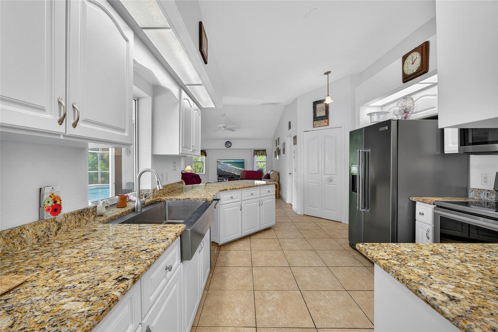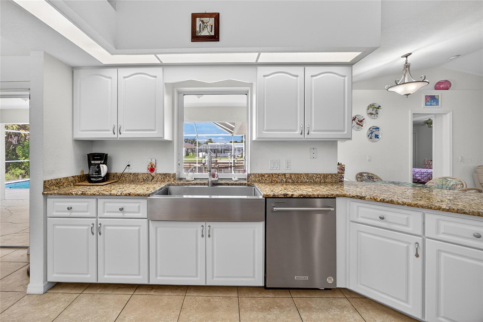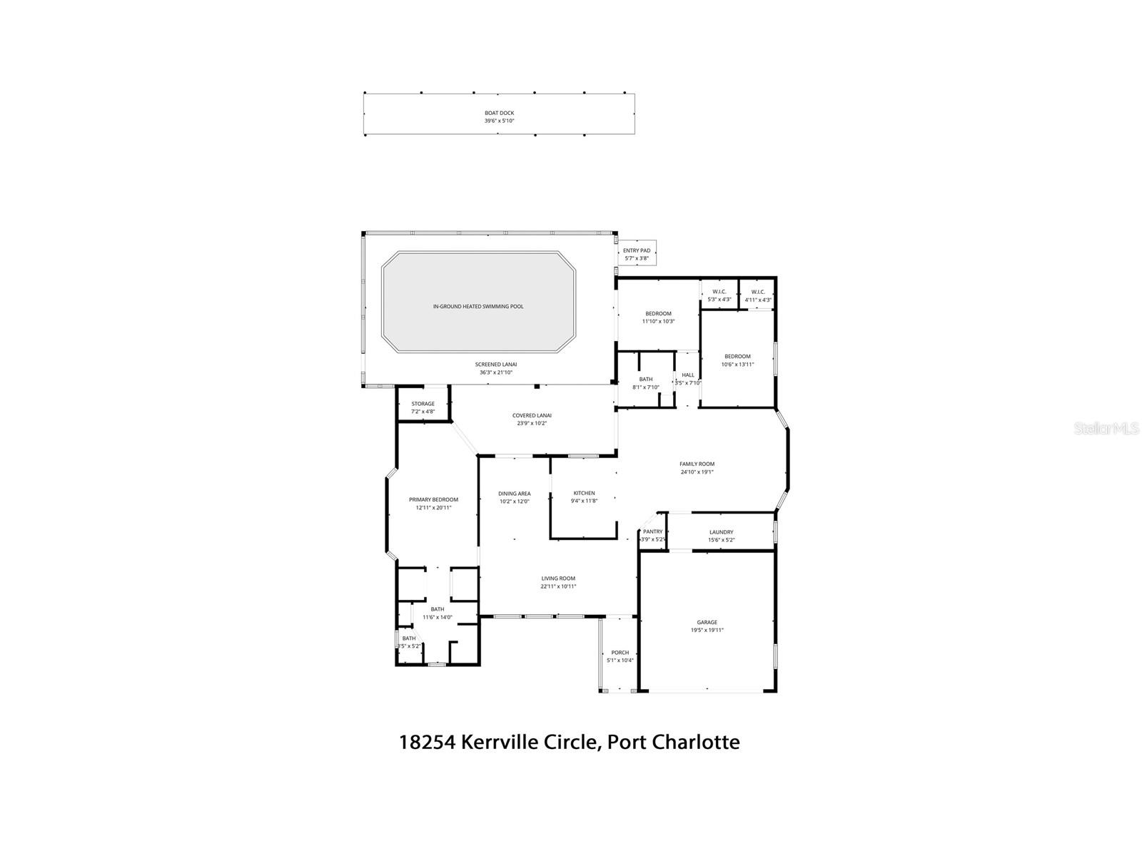 WATERFRONT 3 BEDROOM, 2 BATH, 2 CAR GARAGE, POOL HOME WITH SAILBOAT ACCESS TO CHARLOTTE HARBOR LEADING TO THE GULF! 80 FT OF WATER FRONTAGE, 38 FT TREX DOCK WITH WATER AND ELECTRIC PLUS 10, 000 LB. LIFT. Recent updates include newer roof 2022, new exterior paint 2021, lanai resurfacing 2020 & new motors for boatlift 2025. Step inside through screened entryway, split floor plan with water views, high ceilings, and tile floors throughout. The kitchen offers ample cabinetry for storage, new stainless-steel appliances 2024, farmer sink and pass-through window overlooking the lanai and pool, and breakfast bar great for entertaining. Generous primary suite features access to lanai, his and her walk-in closets and private en-suite bath featuring a vanity and walk-in shower. Split floor plan provides guests with plenty of privacy with 2 additional bedrooms with walk-in closets and full guest with access to lanai. Additional features include inside laundry room with new washer and dryer 2024, new AC 2022, whole house water filter, whole house surge protector on main electric box, generator plug 2022, new garage door opener 2024, new pool water heater 2025, newer pool pump 2023, and self-cleaning pool system, private dock and boat slip, breathtaking water views—perfect for fishing or simply soaking in the beautiful surroundings. Outdoor entertaining area features covered lanai with heated screened pool including 40 ft. dock with Trex decking and boat lift. Located on a quiet street with no HOA close to Murdock restaurant and shopping district, schools, beautiful parks, golf and just a short 20-minute drive to downtown historic Punta Gorda with world-class fishing and boating, community events and entertainment and easy access to gulf beaches. Don't miss your chance to own this waterside treasure! Schedule your private showing today!