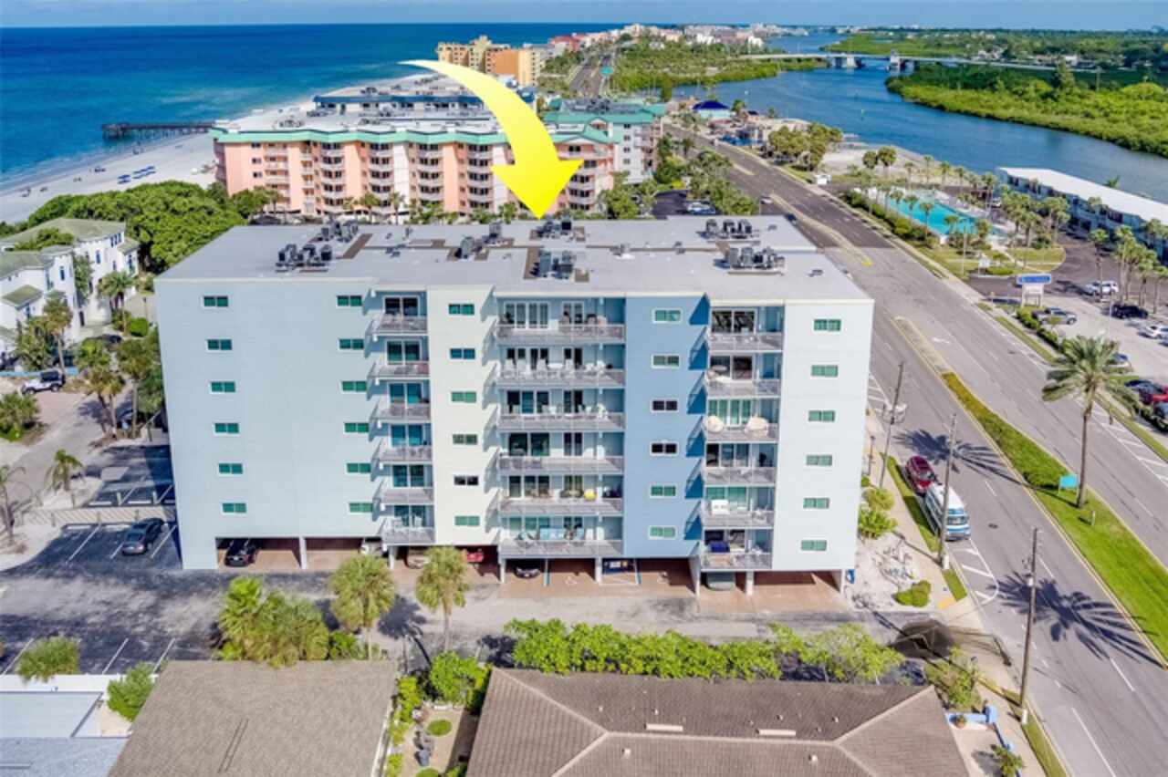 NO ASSESSMENTS DUE, MILESTONE INSPECTION REPORT COMPLETED AND ALL REPAIRS FINISHED. The building itself with 39 units had no damage except the ground floor which essentially is the parking area. The exterior of the building has as of Spring 2024 been completely redone, with the total cost being $2.3 million. New windows, sliders, balcony repairs and handrails are just some of the upgrades. The roof is 3 years old. Heated swimming pool, hot tub and Cabana with bathrooms have also seen repairs and upgrades including new interlocking pavers. The condo unit's AC system, water heater and appliances are all newer. View every sunset and sunrise from your large 8x28 balcony. Condo comes completely furnished including plantation shutters. This condo has the potential to be a wonderful rental or a second home!
