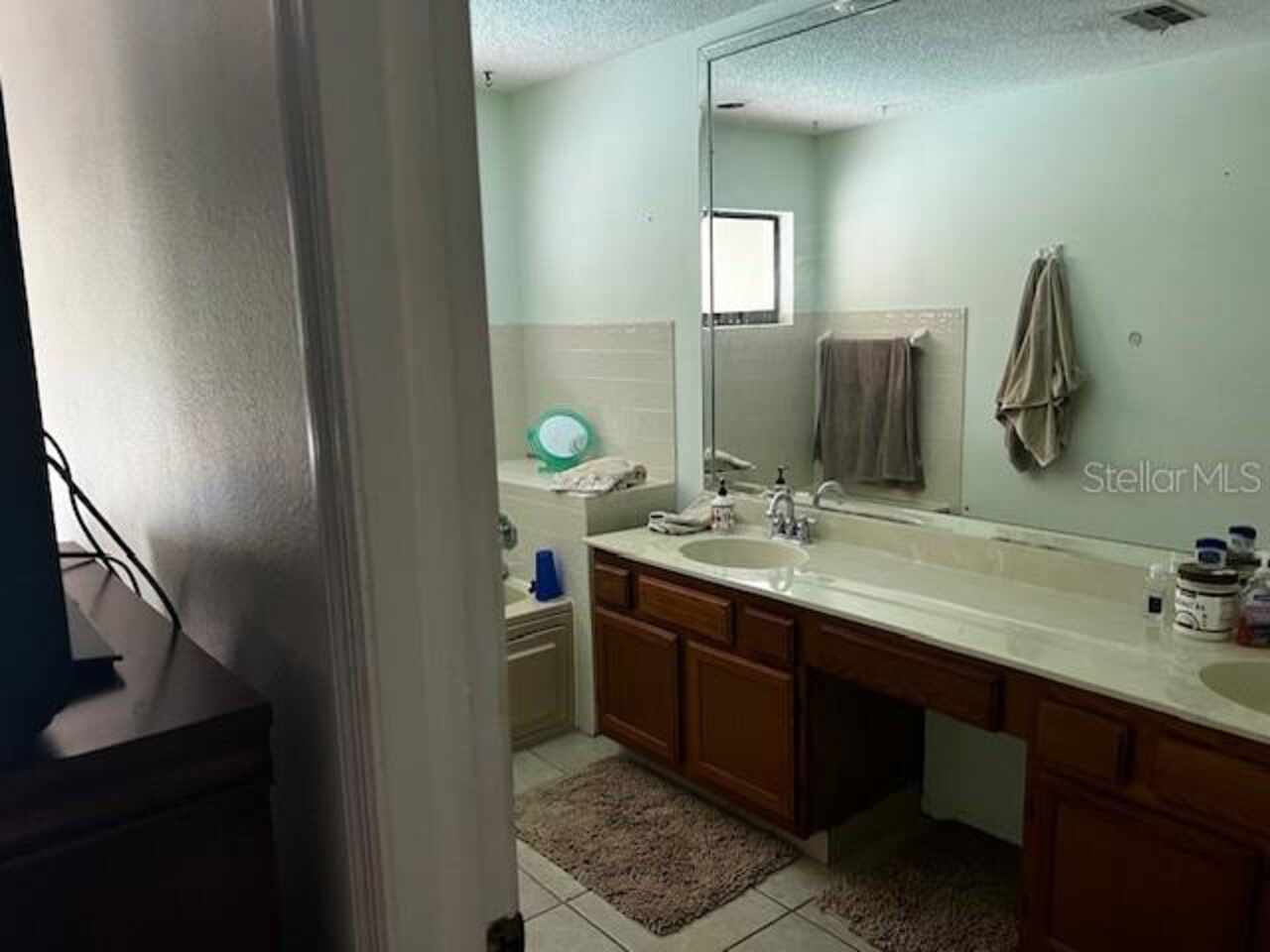 Short Sale. Experience the best of Florida living in the sought-after golf community of Pebble Creek in New Tampa. This spacious 4-bedroom, 3-bathroom pool home offers over 2, 300 square feet of living space, including two separate living areas, a wood-burning fireplace, and built-in shelving. The thoughtfully designed layout provides seamless access to the screened lanai, pool (30’x12’), and spa, perfect for relaxing or entertaining. The kitchen serves as the heart of the home, featuring granite countertops, wood cabinetry, a pantry, breakfast bar, beverage cooler, and wet bar with a pass-through to the dining area. The owner’s suite offers a spacious ensuite bath with dual vanities, garden tub, separate shower, and direct access to the lanai and pool. A secondary bedroom with an ensuite bath is ideal for guests, teens, or as an in-law suite. The remaining two bedrooms also include walk-in closets, ceiling fans, and share a full bath. The fully fenced backyard includes fruit trees and provides excellent privacy. Recent updates include: roof (2019), exterior paint (2019), HVAC (2010), and water heater (2015). Pebble Creek offers tree-lined streets, multiple community entrances, and one of the lowest HOA fees in New Tampa—with no CDD. Community amenities include a pool, tennis, basketball, and volleyball courts, parks, and playgrounds. Conveniently located near I-75, top hospitals (Advent, VA, Moffitt), dining and shopping destinations (Wiregrass Mall, Premium Outlets, Center Ice), and A/B+ rated schools, USF, and HCC. Just 25 minutes to Tampa International Airport. Schedule your showing today—this one won’t last!