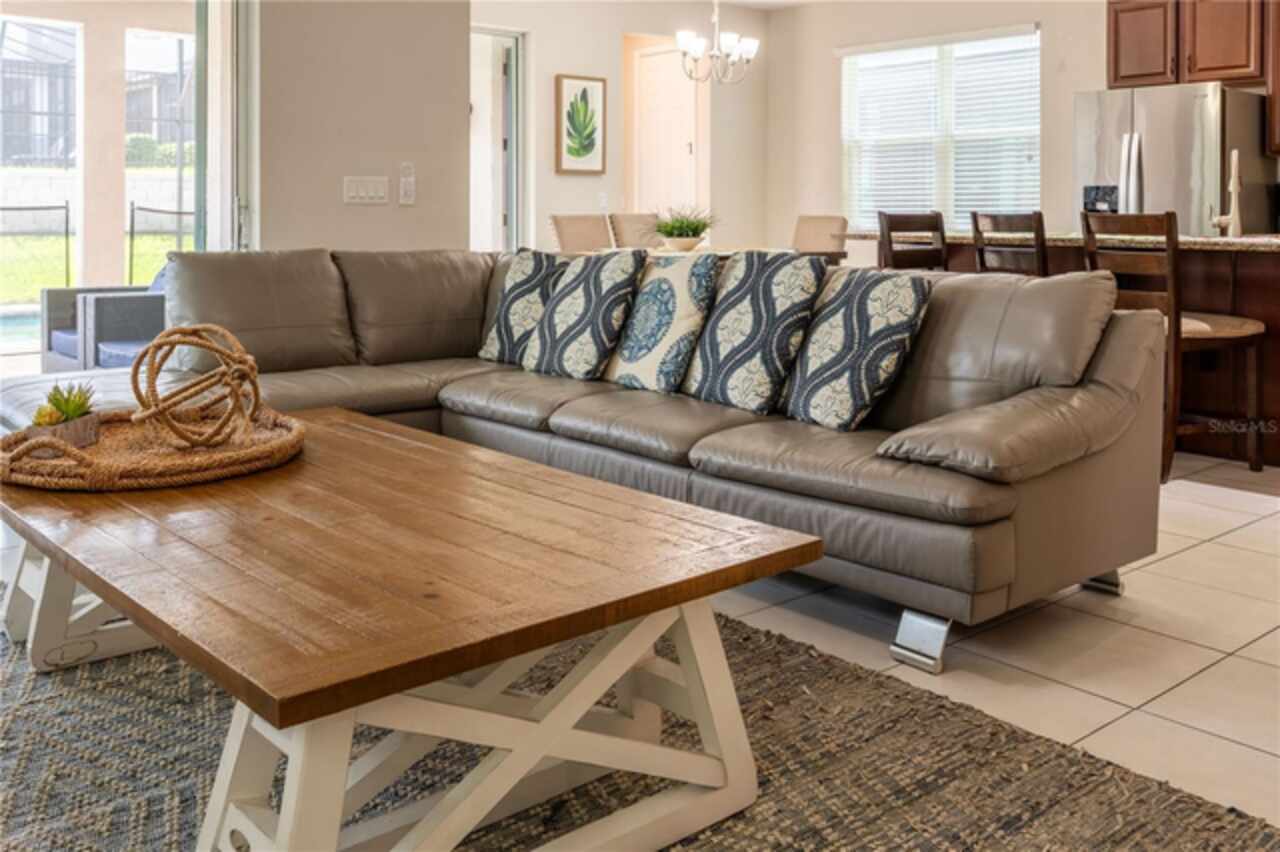 This beautifully furnished 6-bedroom, 4.5-bath home is located in the highly desirable Solara Resort, just minutes from Walt Disney World, Universal Studios, and Orlando’s premier shopping and dining. With room for the whole family, the home features a spacious open floor plan, a modern kitchen with granite countertops and stainless steel appliances, and multiple gathering areas perfect for relaxing or entertaining. Each bedroom is thoughtfully designed for comfort—including themed rooms the kids will absolutely love. This home also features solar panels, offering energy efficiency and reduced utility costs—an incredible bonus for homeowners and vacationers alike. Step outside to your private, screened-in pool and spa, ideal for a refreshing swim or a peaceful evening soak. Whether you’re sipping morning coffee on the patio or winding down after a day of adventure, the outdoor space is a true highlight. As a guest in Solara Resort, you’ll have access to incredible amenities including a resort-style pool, splash pad, water slide, and the one-of-a-kind FlowRider surf simulator. The clubhouse features a full-service restaurant and bar, fitness center, sports courts, playgrounds, and even a convenience store for your everyday needs. And now, with the highly anticipated Universal Epic Universe theme park, this property is positioned even more attractively. Located just about 20 miles (32 km) from Solara Resort—roughly a 30 to 40-minute drive—this new entertainment destination is expected to be a major draw for visitors and vacationers alike. Whether you're planning a magical family getaway, hosting a group retreat, or searching for a high-performing short-term rental investment, this turn-key home delivers the best of resort-style living with all the comforts of home. Don’t miss your chance to own a piece of paradise in Central Florida!