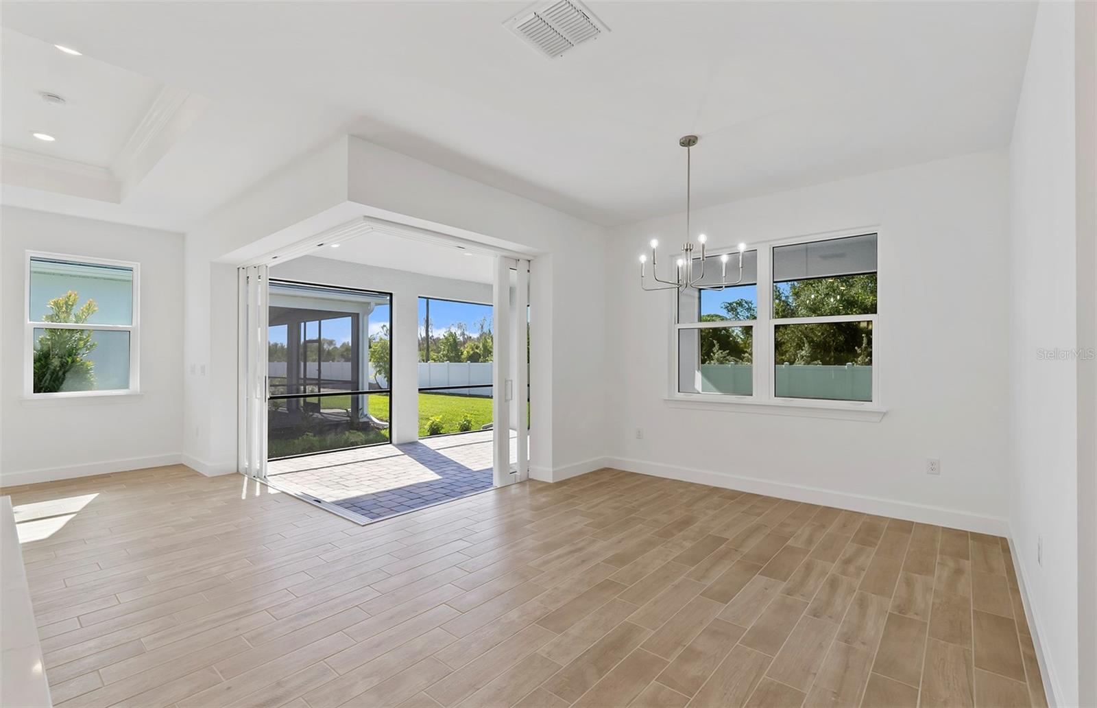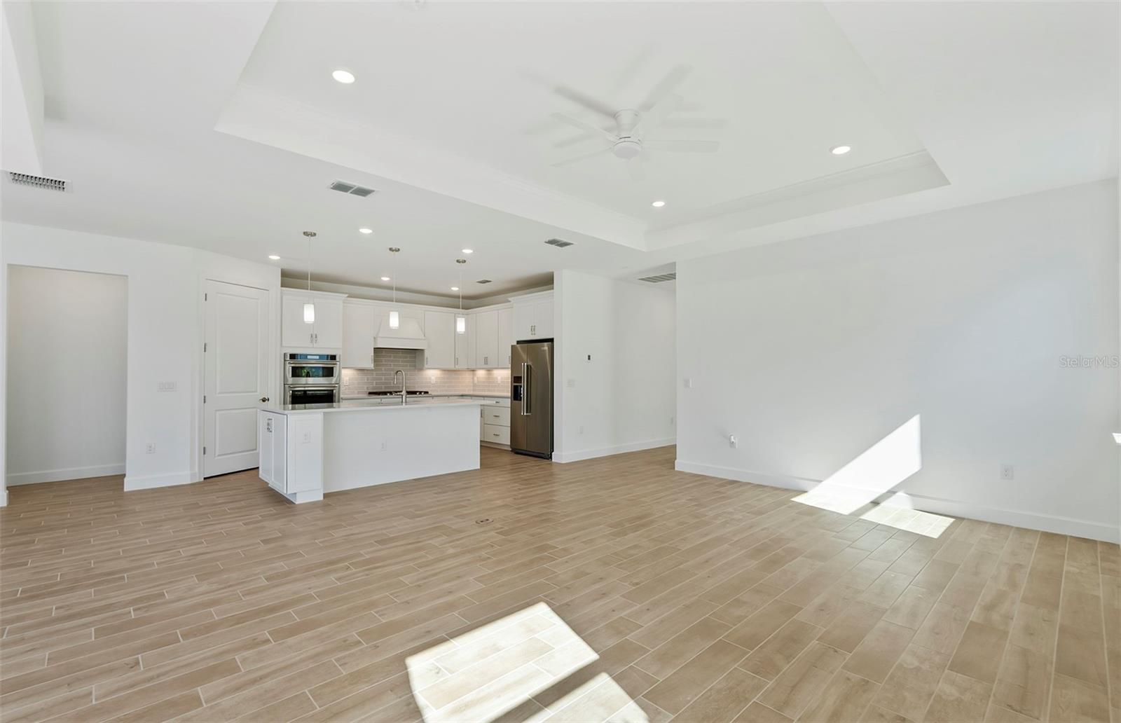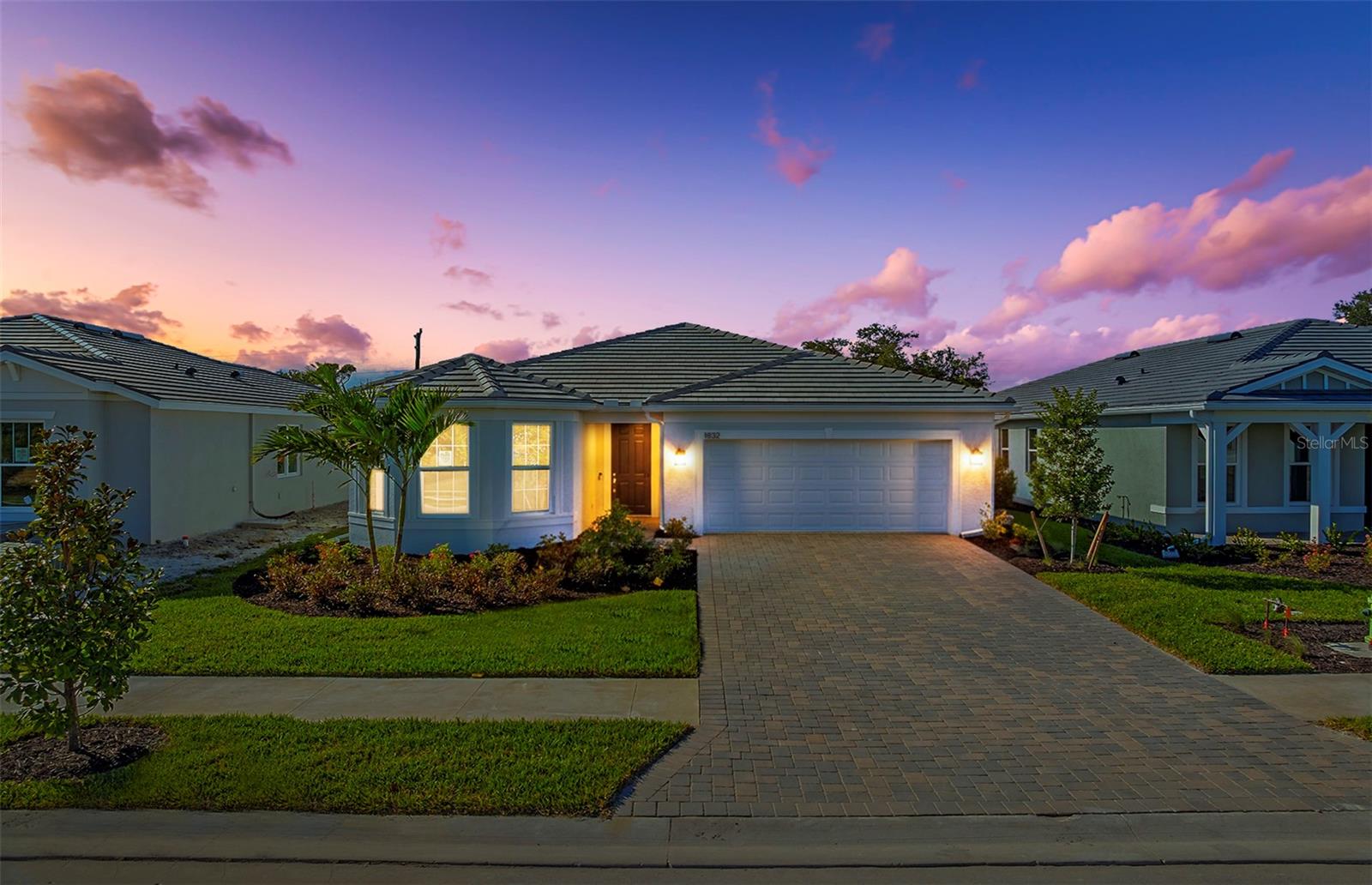 Under Construction. This beautiful Mystique floor plan with front porch offers 3 bedrooms, 3 baths, and a 2-car garage, nestled in a brand new boutique style community. This home features an open floor plan with "wood look" tile flooring throughout, impact-resistant doors and windows, a tray ceiling in the gathering room with "zero corner" sliders to bring the outdoors "in"! The kitchen is a chef’s delight with gas cooking, a built-in microwave/wall oven combo, white cabinetry w/undercounter lighting & Silestone countertops. Other features include an enlarged shower in the owner's bedroom, upgraded laundry rm w/sink and cabinetry, extended screened lanai and washer/dryer/fridge are included! Relaxation is easy at the community pool and cabana while cooking at the BBQ grill area. Don't miss this opportunity to own a brand-new home only 3.5 miles to the beach! Photos are from a furnished model. Options for this home may vary.