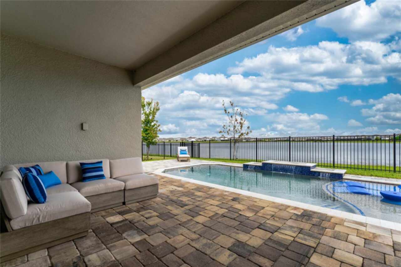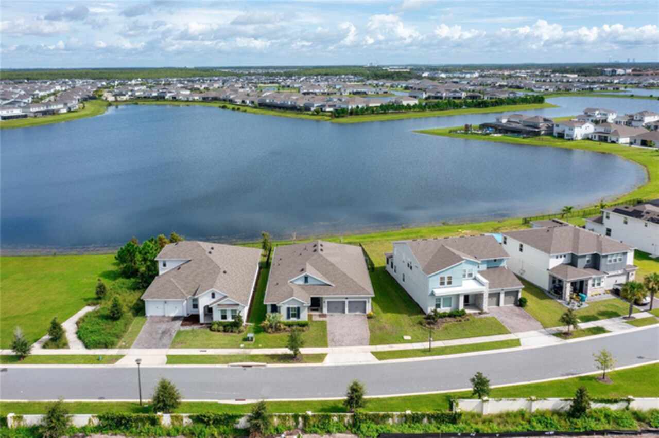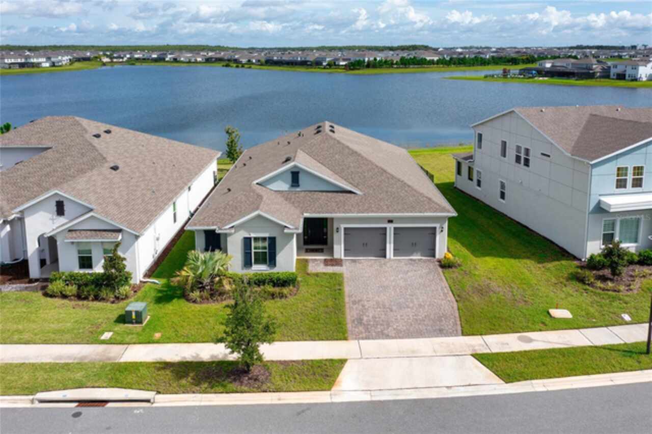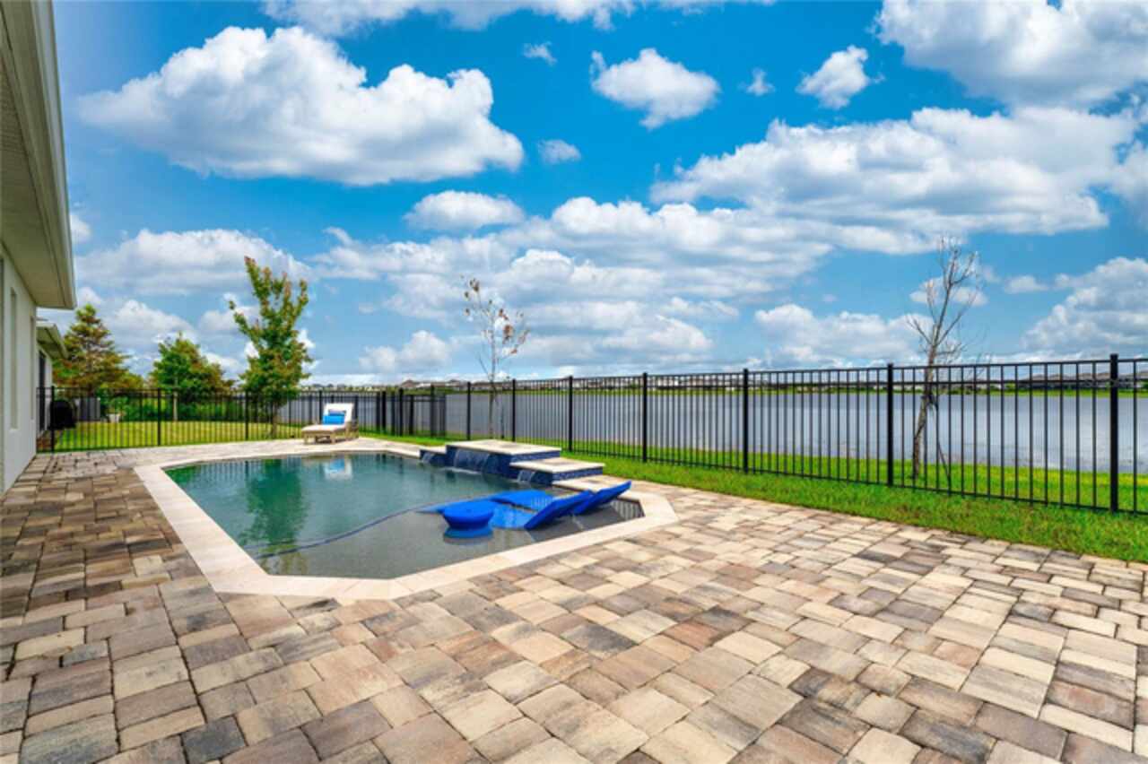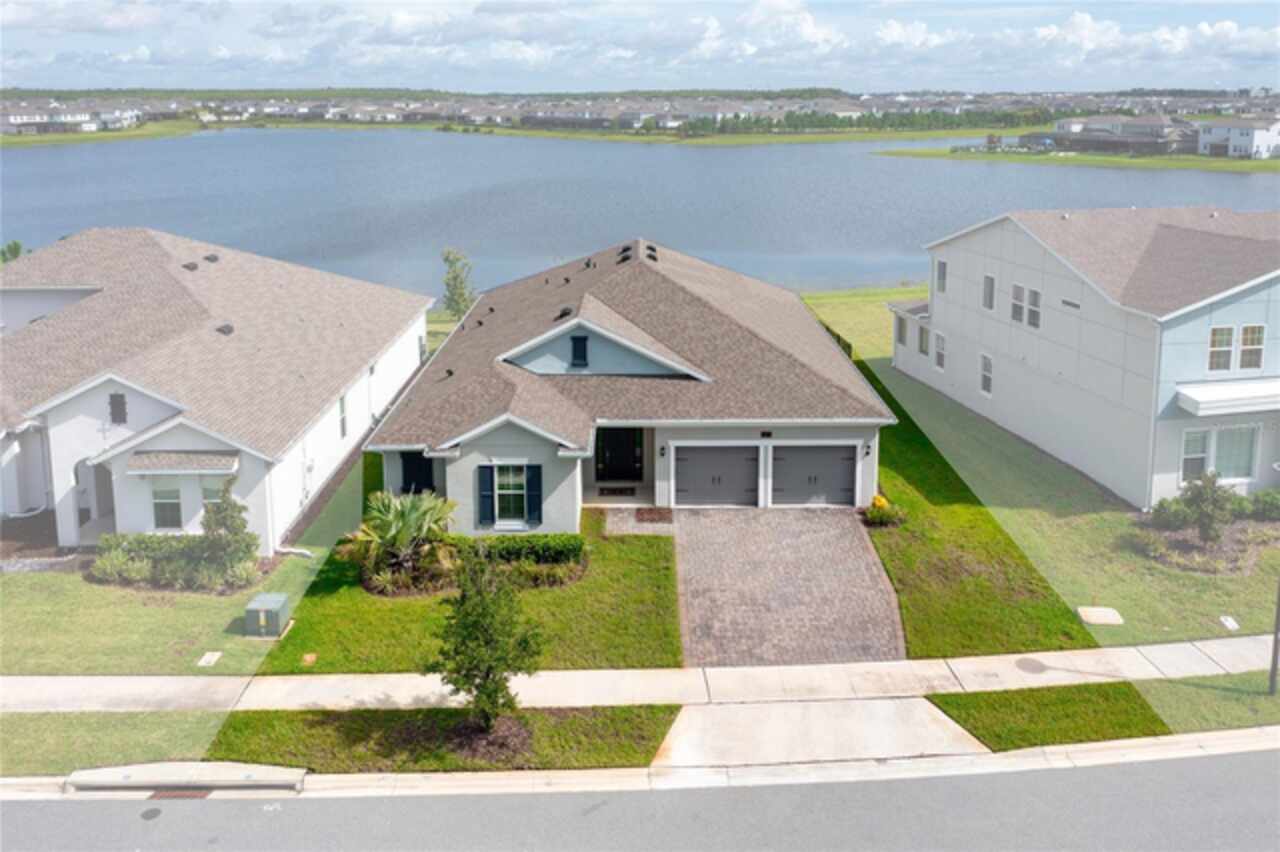 Live the lakefront dream in this impeccably upgraded, single-story stunner. Built in 2023 and zoned for Laureate Park Elementary, this home blends elegance and ease with panoramic water views and a private saltwater pool just steps from your covered patio. Inside, you'll find upgraded tile floors throughout, plantation shutters on every window, and custom electric fireplaces in both the living room and the primary suite. The gourmet kitchen opens to a spacious living area with your private pool and waterfront views —perfect for work or play. The primary suite is a true retreat, featuring high-end custom closets and a spa-inspired bath with a soaking tub, glass shower, and dual vanities. Additional custom closets extend to the pantry and laundry room, offering thoughtful storage throughout. The garage is equally refined, with an epoxy floor and built-in organization. A dedicated office provides flexibility and can easily convert into a fourth bedroom if desired. This is more than a home — it’s a lifestyle upgrade. Minutes from Lake Nona Medical City, dining, and major highways, yet tucked into a peaceful lakeside setting. This home is available immediately.