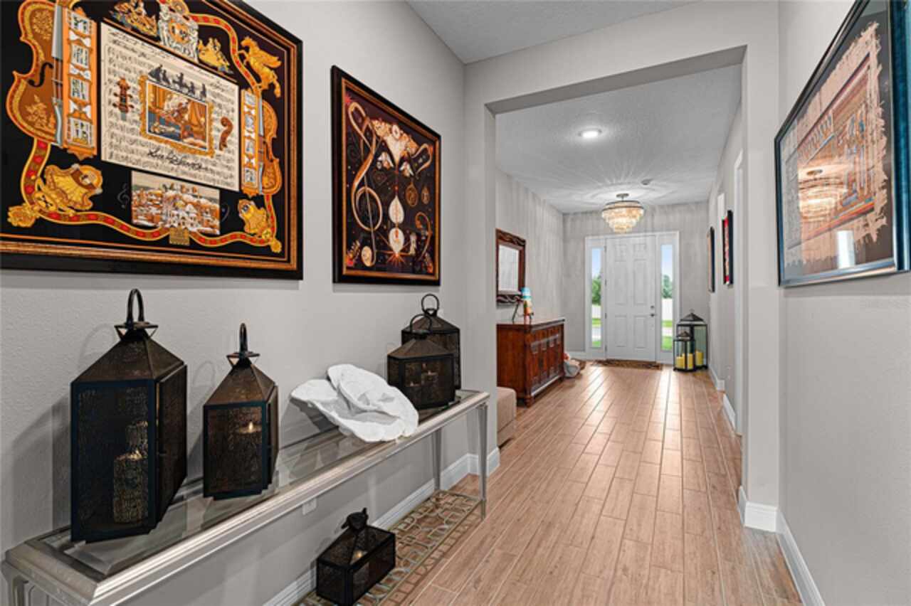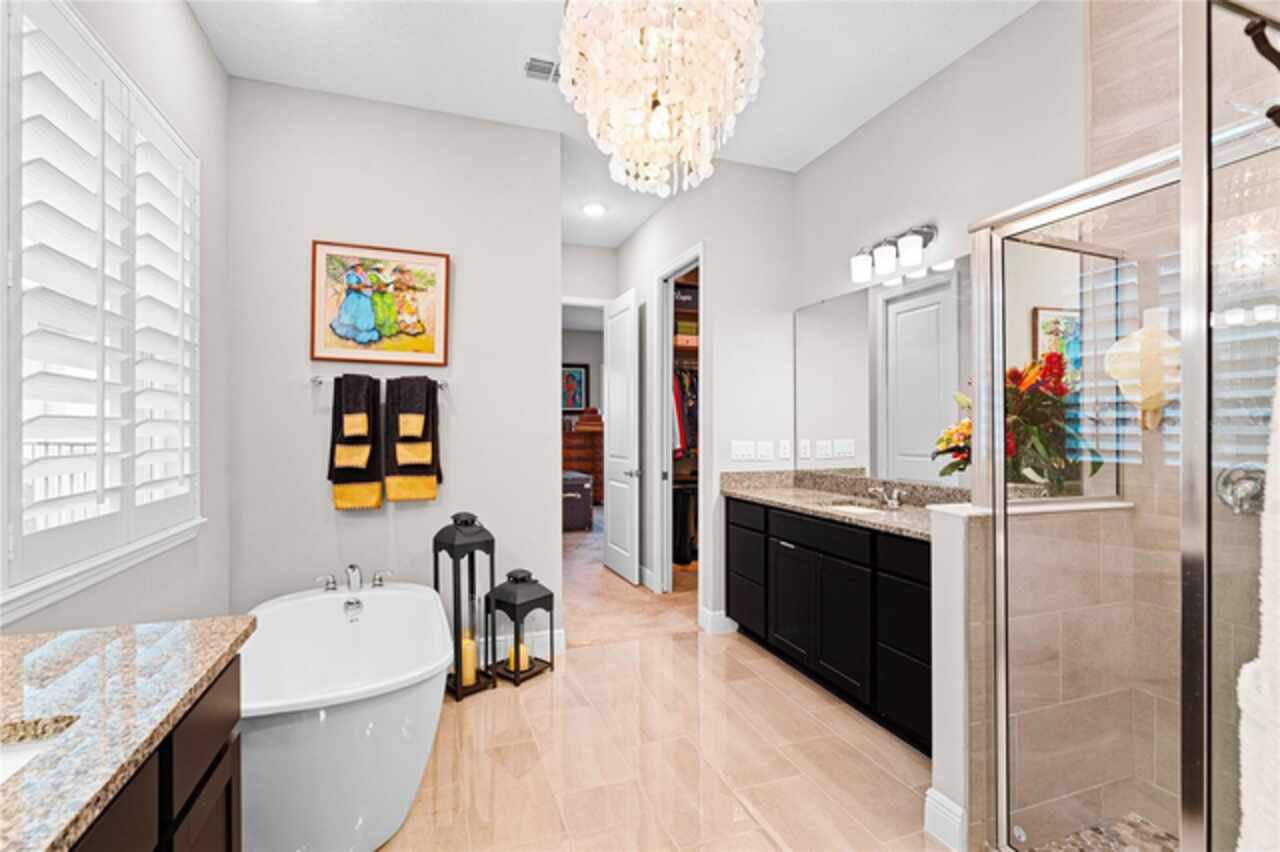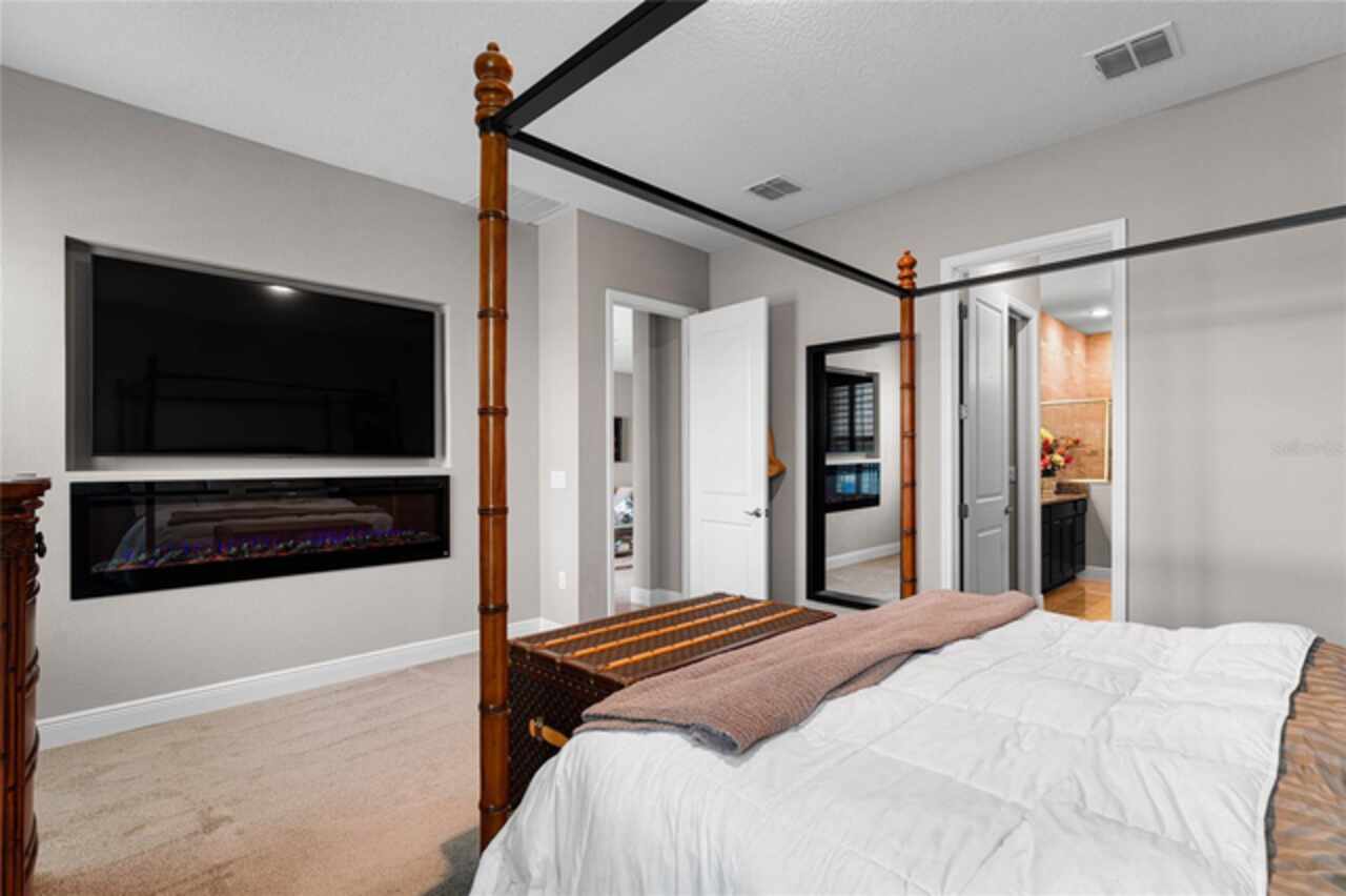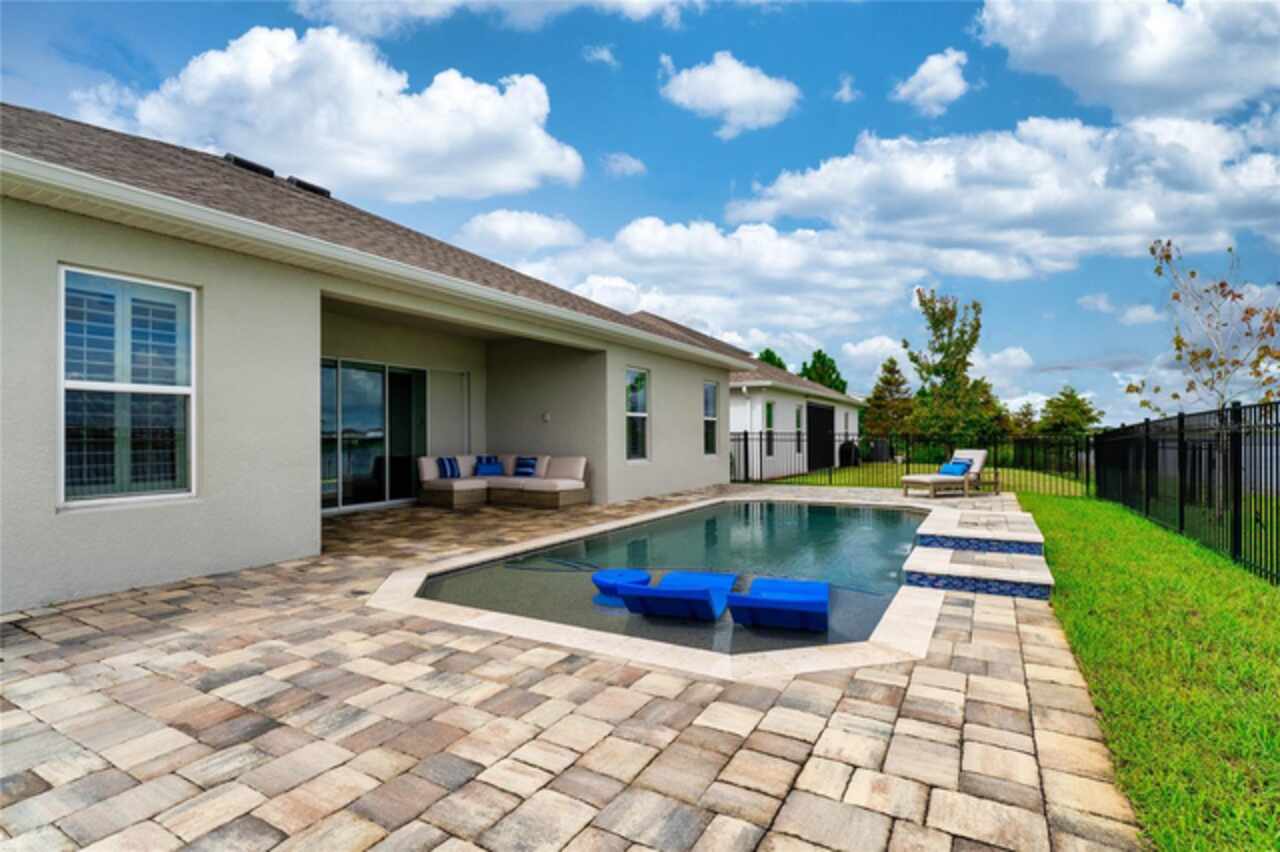 Live the lakefront dream in this impeccably upgraded, single-story stunner. Built in 2023 and zoned for Laureate Park Elementary, this home blends elegance and ease with panoramic water views and a private saltwater pool just steps from your covered patio. Inside, you'll find upgraded tile floors throughout, plantation shutters on every window, and custom electric fireplaces in both the living room and the primary suite. The gourmet kitchen opens to a spacious living area with your private pool and waterfront views —perfect for work or play. The primary suite is a true retreat, featuring high-end custom closets and a spa-inspired bath with a soaking tub, glass shower, and dual vanities. Additional custom closets extend to the pantry and laundry room, offering thoughtful storage throughout. The garage is equally refined, with an epoxy floor and built-in organization. A dedicated office provides flexibility and can easily convert into a fourth bedroom if desired. This is more than a home — it’s a lifestyle upgrade. Minutes from Lake Nona Medical City, dining, and major highways, yet tucked into a peaceful lakeside setting. This home is available immediately.