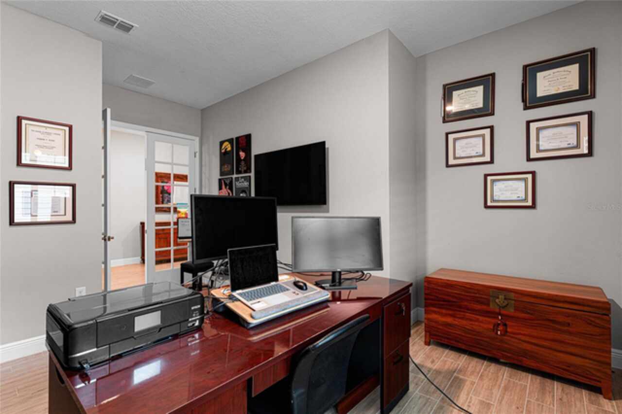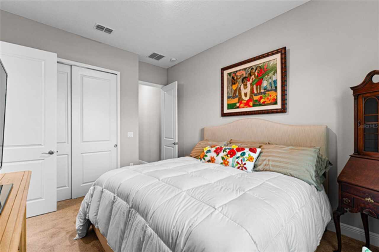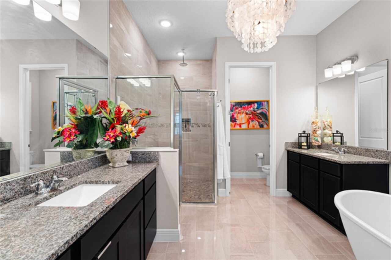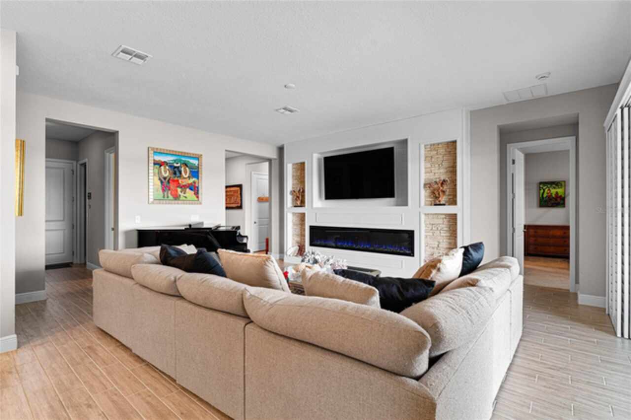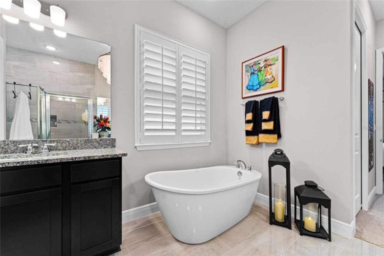 Live the lakefront dream in this impeccably upgraded, single-story stunner. Built in 2023 and zoned for Laureate Park Elementary, this home blends elegance and ease with panoramic water views and a private saltwater pool just steps from your covered patio. Inside, you'll find upgraded tile floors throughout, plantation shutters on every window, and custom electric fireplaces in both the living room and the primary suite. The gourmet kitchen opens to a spacious living area with your private pool and waterfront views —perfect for work or play. The primary suite is a true retreat, featuring high-end custom closets and a spa-inspired bath with a soaking tub, glass shower, and dual vanities. Additional custom closets extend to the pantry and laundry room, offering thoughtful storage throughout. The garage is equally refined, with an epoxy floor and built-in organization. A dedicated office provides flexibility and can easily convert into a fourth bedroom if desired. This is more than a home — it’s a lifestyle upgrade. Minutes from Lake Nona Medical City, dining, and major highways, yet tucked into a peaceful lakeside setting. This home is available immediately.