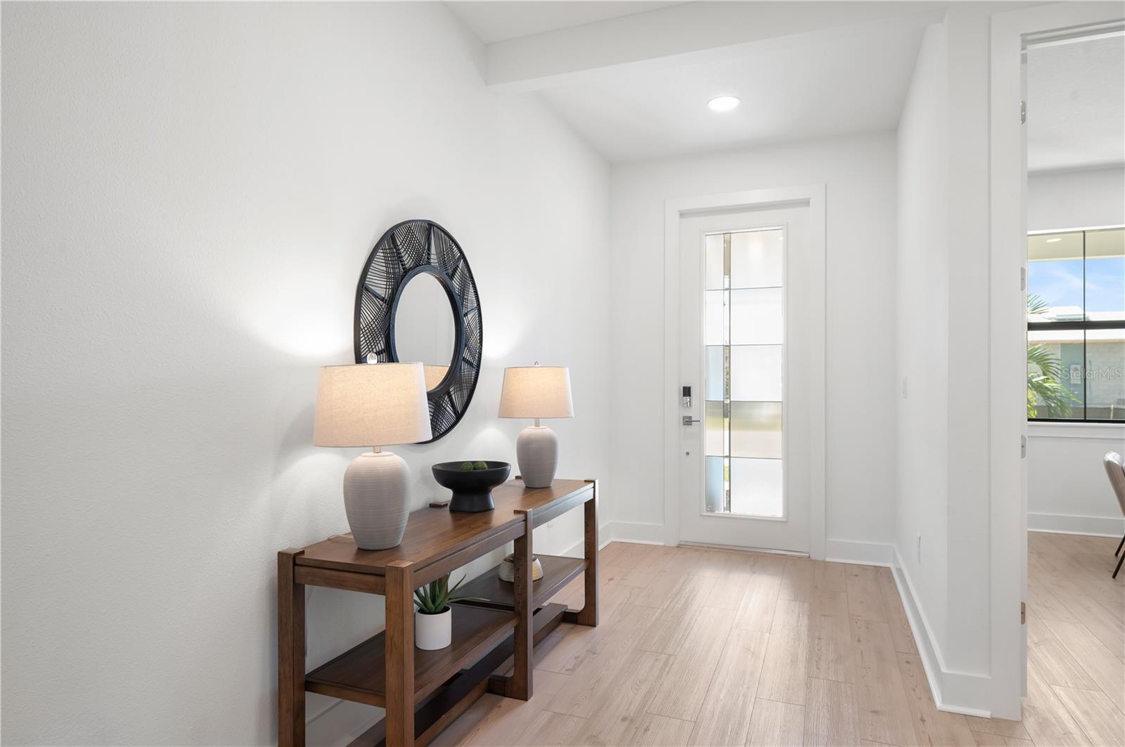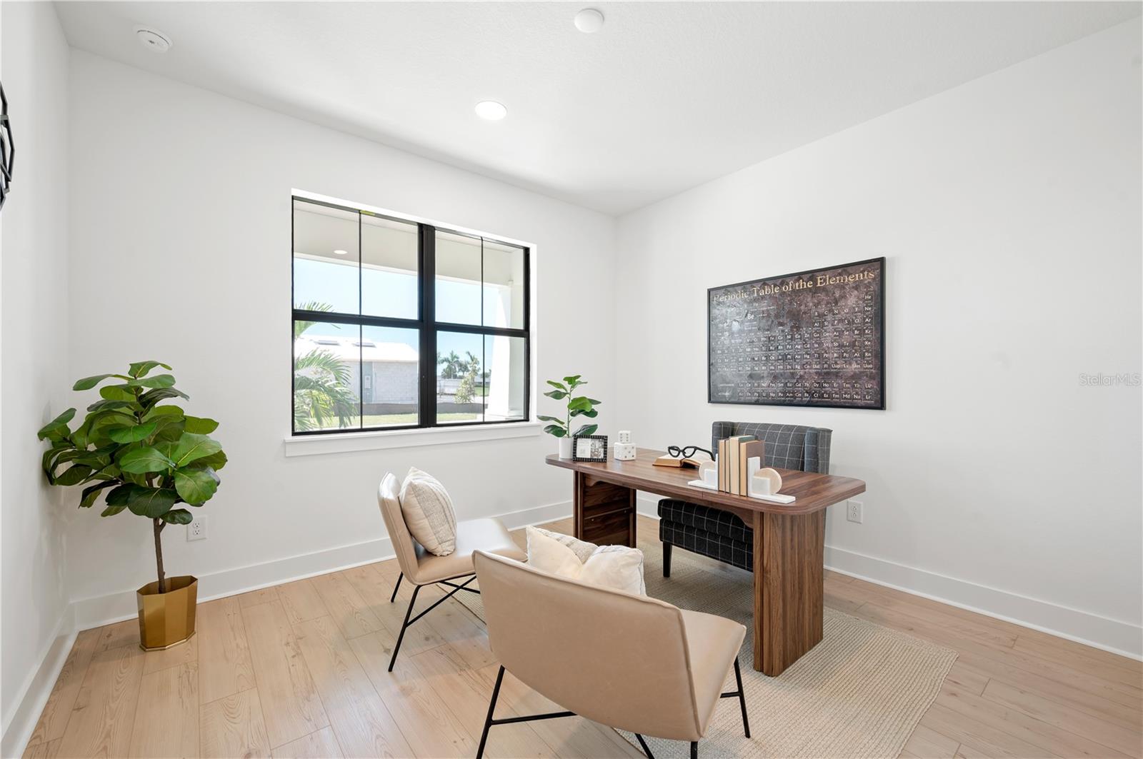 Under Construction. One of the last 3-car garage homes available! Don’t miss this rare opportunity to own a beautifully upgraded single-story, 4-bedroom, 3-bath new construction home in Solstice at Wellen Park. This home features luxury vinyl plank flooring throughout — no carpet — and designer-appointed interior selections for a truly refined look and feel. The gourmet kitchen is a standout, showcasing KitchenAid appliances, elegant stacked cabinets, and a spacious layout perfect for hosting or everyday living. A sliding glass door leads to a covered outdoor space, blending indoor and outdoor living seamlessly.