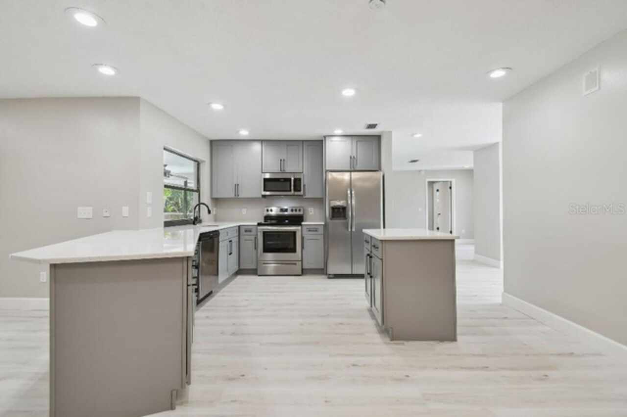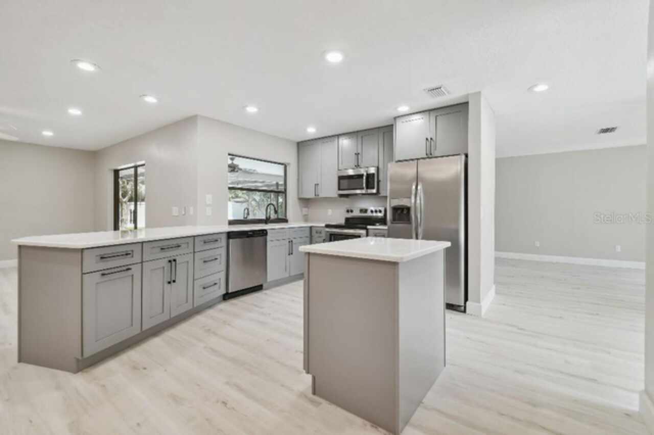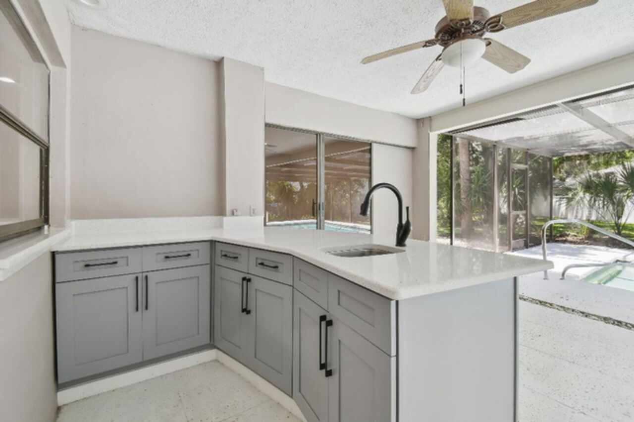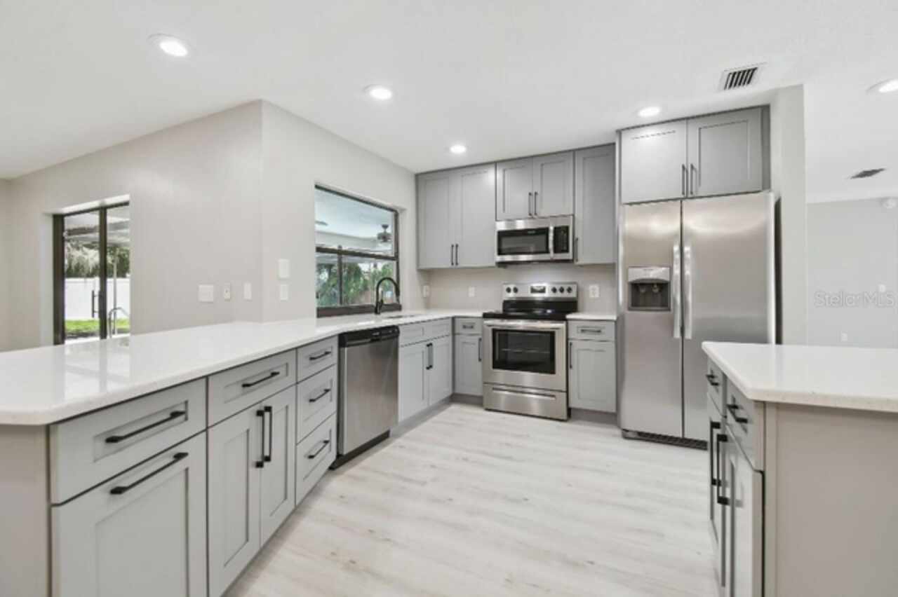 Welcome to this beautifully remodeled three-bedroom, two-bathroom home with screened in pool and outdoor kitchen on a quiet cul-de-sac in Pebble Creek Villages in New Tampa. Situated on a spacious lot with mature landscaping, this home boasts a remodeled kitchen featuring modern finishes, ideal for both everyday living and entertaining. Both the Master bathroom and second bathroom have been remodeled with contemporary touches. The spacious layout provides comfort and versatility for any lifestyle. Located in the established Pebble Creek community, residents benefit from a low HOA and no CDD fees, making this home not only stylish but also financially appealing. With close proximity to top-rated schools, medical facilities, shopping, dining, and major highways, this move-in-ready gem offers both convenience and charm in one of New Tampa’s most sought-after neighborhoods. Cul-de-sac Fully remodeled All stainless appliances Pool Screened lanai New outdoor kitchen New kitchen cabinets Quartz countertops New waterproof vinyl plank flooring throughout New master shower New 5” baseboards Over-sized laundry room with utility sink Seller to provide a one-year home warranty at closing.