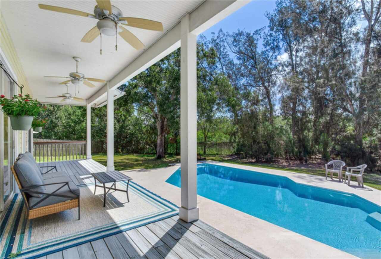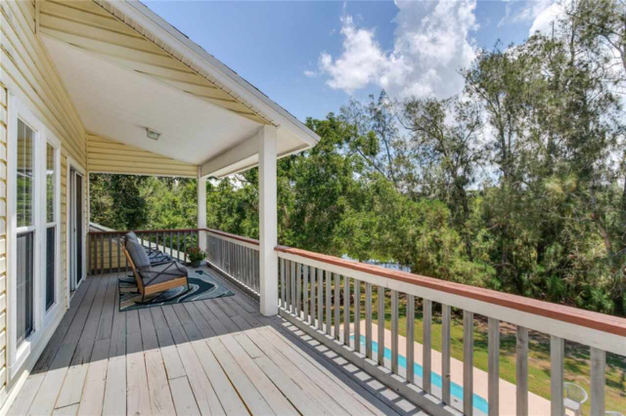 STUNNING 4-BED, 3-BATH POOL HOME ON A PRIVATE CUL-DE-SAC Welcome to 1851 Juanita Ct, a stunning and spacious two-story home tucked away on a quiet cul-de-sac in the heart of Clearwater. This beautifully updated 4-bedroom, 3-bath residence offers over 2, 800 square feet of living space and is perfectly designed for comfort, style, and entertaining. Set on an oversized lot with no rear neighbors and surrounded by mature trees, the home provides rare privacy and a peaceful natural backdrop. Step inside to find soaring ceilings, wood-look flooring throughout, and abundant natural light that highlights every detail. The open-concept layout features a formal living room and dining area with elegant lighting. The fully renovated kitchen is a true showpiece, equipped with soft-close shaker cabinetry, granite countertops, stainless steel appliances, double ovens, a designer backsplash, and a large center island. The sunny breakfast nook overlooks the expansive backyard and sparkling pool, creating a perfect setting for morning coffee or casual dining. The first floor also includes a full guest bedroom and bathroom, ideal for a home office or in-law suite, as well as multiple living areas and a well-appointed laundry room with custom cabinetry. Upstairs, the luxurious primary suite impresses with vaulted ceilings, triple bay windows, a sitting area, and private French doors that lead to a large covered balcony with serene views of the trees and water beyond. The primary bath offers a spa-like experience with a jetted tub, custom tile walk-in shower with a expansive walk-in closet. Two additional bedrooms upstairs share access to the wraparound balcony and feature ample closet space and sliders. The home’s thoughtful layout also includes a bonus flex room and an oversized three-car garage with additional storage space. Outdoors, the fully fenced backyard is a private oasis with a generous pool deck, lush lawn, and direct views of the creek an a peaceful wooded preserve. This home combines exceptional value with unmatched character and functionality. Located just minutes from Clearwater Beach, downtown Dunedin, top-rated schools, shopping, and dining, 1851 Juanita Ct is truly a rare find and move-in ready.