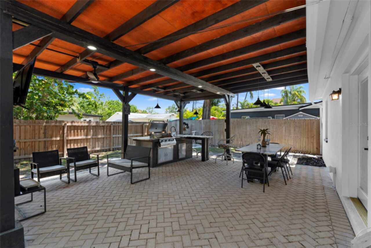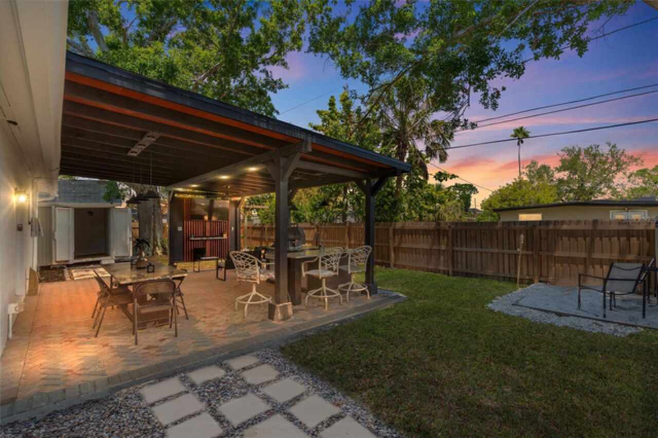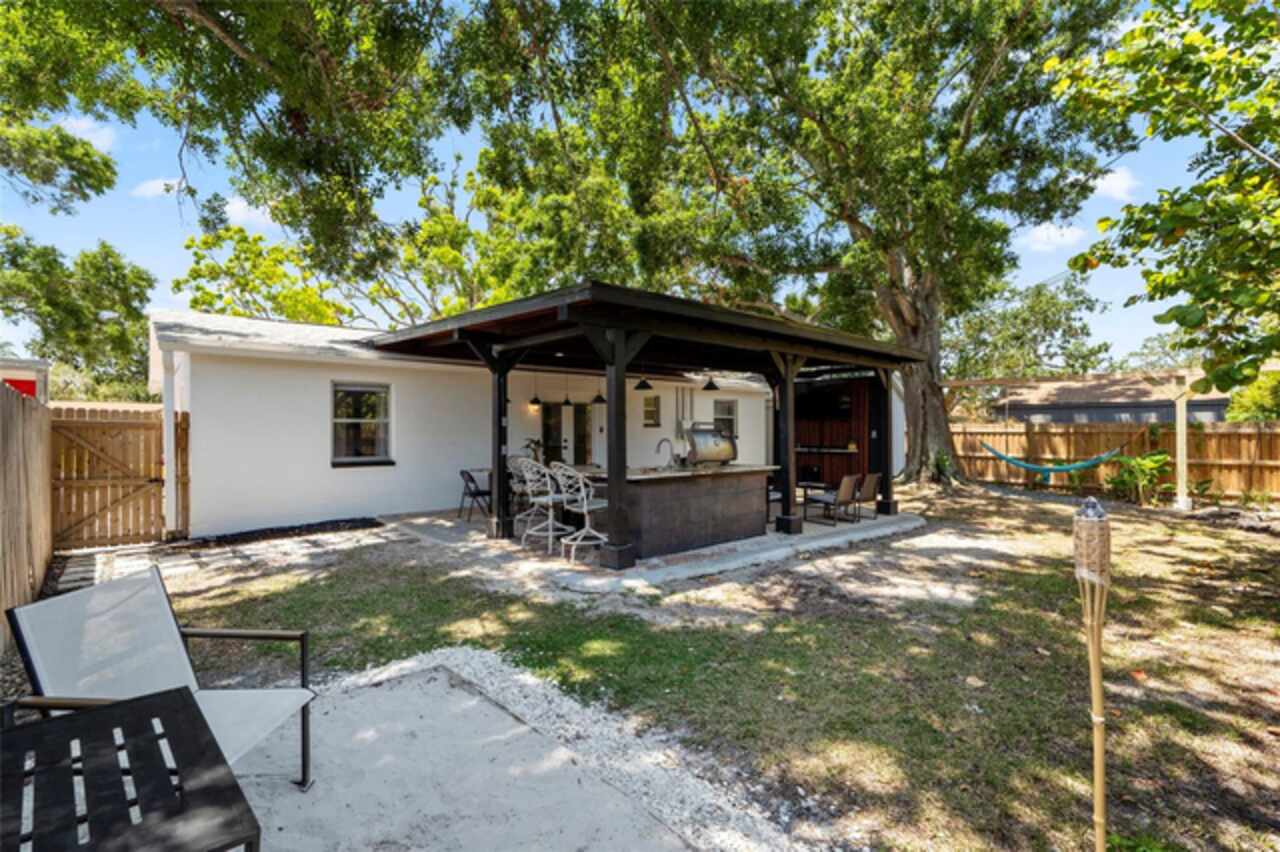 Welcome to your dream Florida retreat! This beautifully renovated 3-bedroom, 2-bath home offers a thoughtfully designed living space, blending comfort, style, and functionality. Step inside to discover a fresh, modern interior featuring brand new appliances, sleek finishes, quartz countertops and a brand new HVAC system for year-round comfort. Every detail has been updated, making this home completely move-in ready. Enjoy dual rainshower heads in your primary ensuite! But the true showstopper? The backyard oasis that feels like your own slice of paradise. Imagine sizzling dinner on the built-in outdoor kitchen, laughter echoing under the spacious covered patio, and string lights twinkling as the sun melts into the horizon. The powered shed offers endless possibilities—create your dream workshop, a cozy art studio, or a quiet reading nook. And when the day winds down, there's no better place to unwind than a hammock gently swaying in the evening breeze, surrounded by the colors of a breathtaking Florida sunset. Whether you're gathering with friends or soaking in a serene moment alone under the stars, this backyard invites you to slow down, breathe deep, and truly enjoy the magic of home. Don’t miss your chance to own this turnkey gem in a great location—schedule your private showing today!