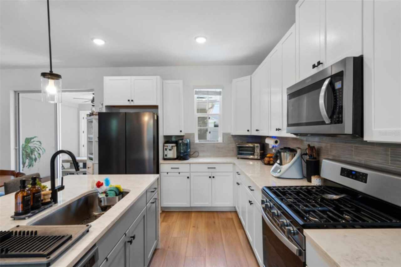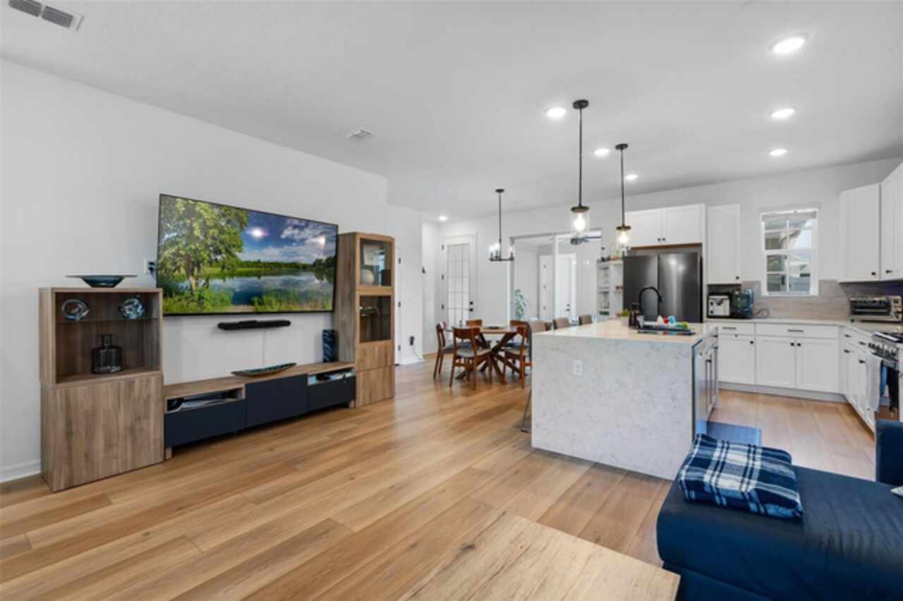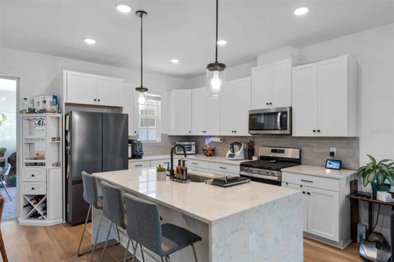 Step into a world of charm and modern flair at this stunning Colonial-style townhome in Celebration’s newest hot spot—Island Village! From the moment you walk in, you’ll be wowed by the warm glow of real hardwood floors, soaring ceilings, and sleek recessed lighting that sets the perfect tone for stylish living. The open-concept layout is made for hosting—from cozy game nights to lively dinner parties, there’s room for it all. Calling all foodies—the chef’s kitchen is an absolute showstopper! With its crisp light cabinetry, chic tile backsplash, and gooseneck faucet over a deep undermount sink, it’s a dreamy mix of form and function. And yes, it’s all decked out with black and stainless steel appliances, including a GAS cooktop and oven, vented microwave, dishwasher, and refrigerator—ready for your next culinary adventure. Slide open the glass doors in the dining area and enjoy the incomparable Florida weather year round on your private patio, featuring a charming brick-paved courtyard—ideal for morning coffee or twilight cocktails. Upstairs, retreat to the spacious primary suite, a serene escape with not one, but two closets and a stunning ensuite bath. Two additional bedrooms and a full bath complete the upper level, perfect for family, guests, or even a creative home office. Just steps away, you’ll find the vibrant heart of Island Village—boutique shops, tasty eateries, and a beautiful clubhouse with a reception room, gym, and sparkling pool. Living here means enjoying Celebration’s best perks: neighborhood parks, playgrounds, over 26 miles of biking and walking trails, and a calendar full of fun. Whether you're grabbing dinner in town, hitting the trails, or heading to Magic Kingdom (just 15 minutes away!), you’re perfectly positioned for fun and relaxation. This home blends timeless style with modern living in one of Florida’s most magical communities. Welcome home to the good life—you’re going to love it here!