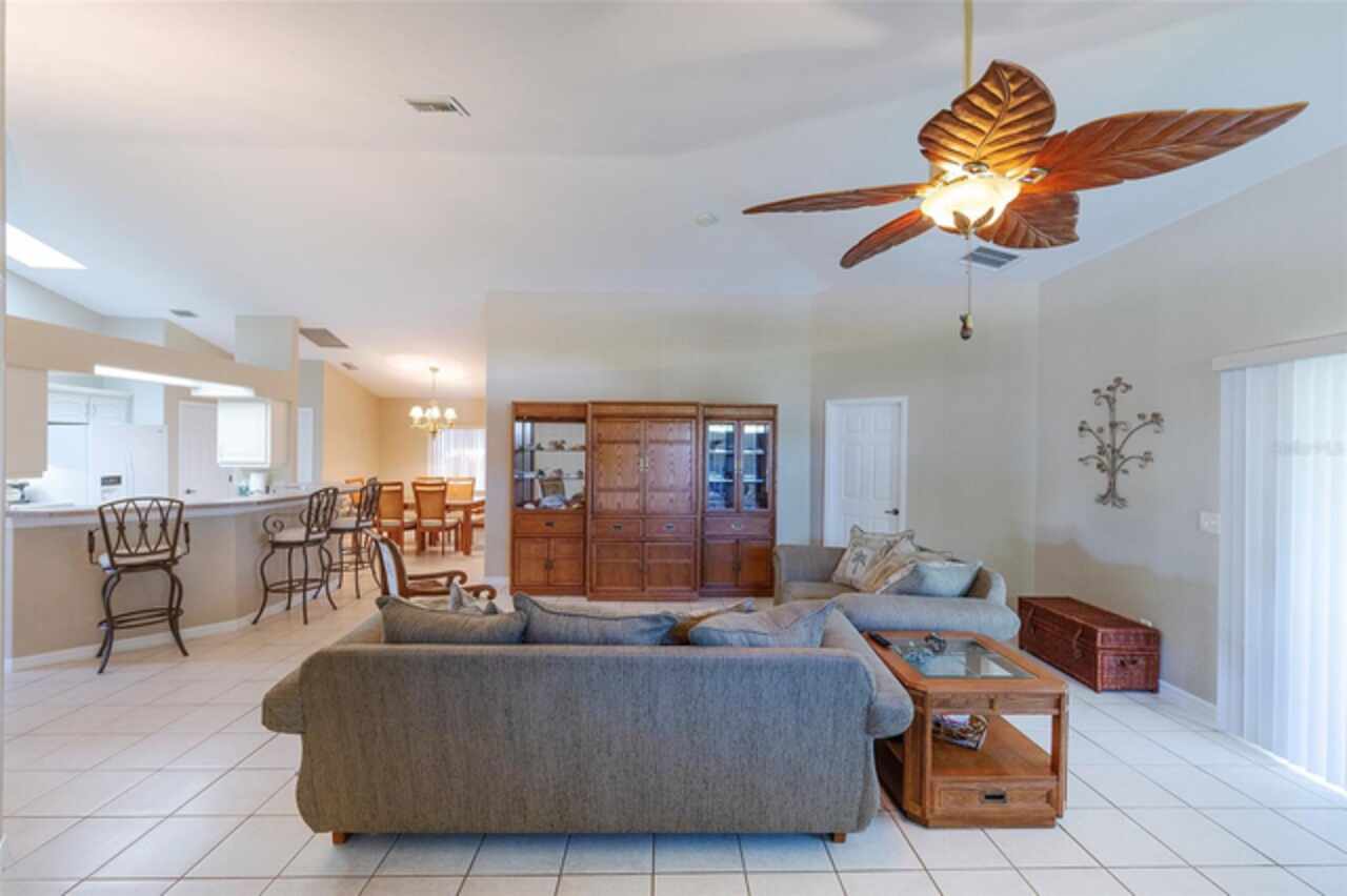 Quality built Cement block Johnson Home with a SAFE ROOM located in a Golf Community, New AC 2022, New Hot Water Heater 2025, Fresh Inside Paint 2024 ( all rooms ), Garbage Disposal 2024, Hurricane Shutters - roll down type on all full size windows, 2 Car Garage Home. Vaulted Ceiling in main living area with Kitchen Skylight, on Large Pool size lot in the Turnbull Bay Country Club Estates, Open Floor Plan with Split Bedrooms, Master bedroom has sliding doors overlooking screened Lanai, Breakfast Bar with skylight, Screened Lanai, Fans through out, Great room has a Sitting Area. Close to the Beach, Intracoastal waterway, Boat Ramps, I-95, Golf Courses and Shopping.