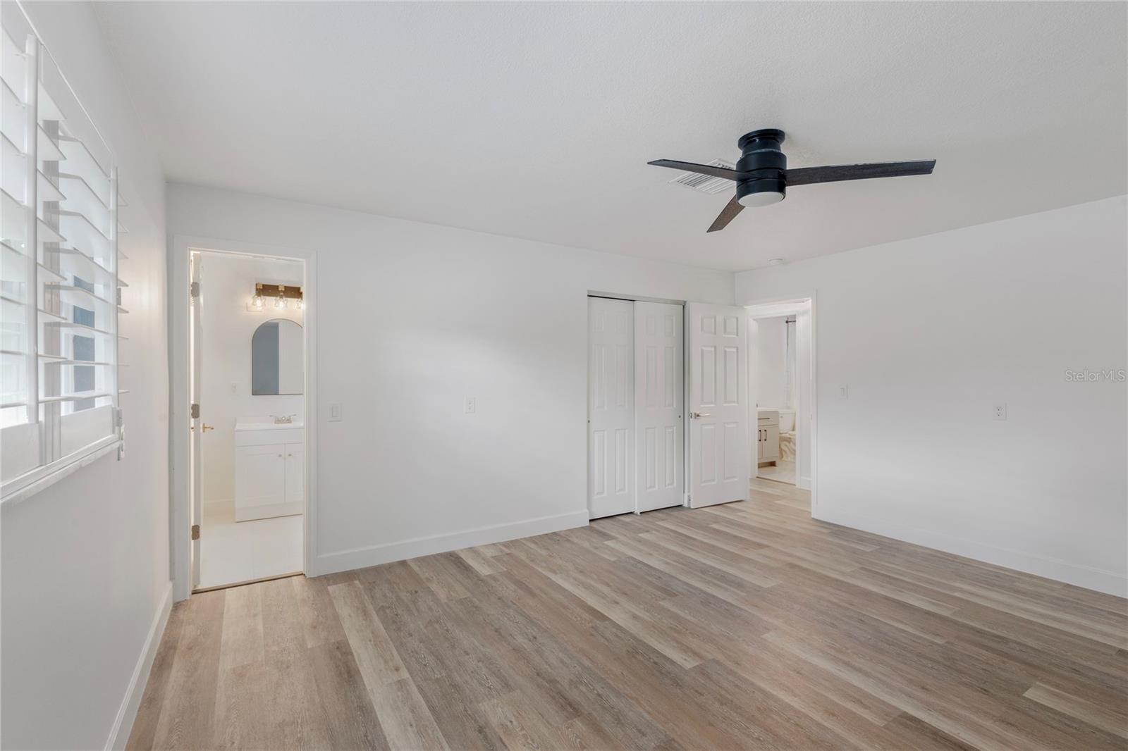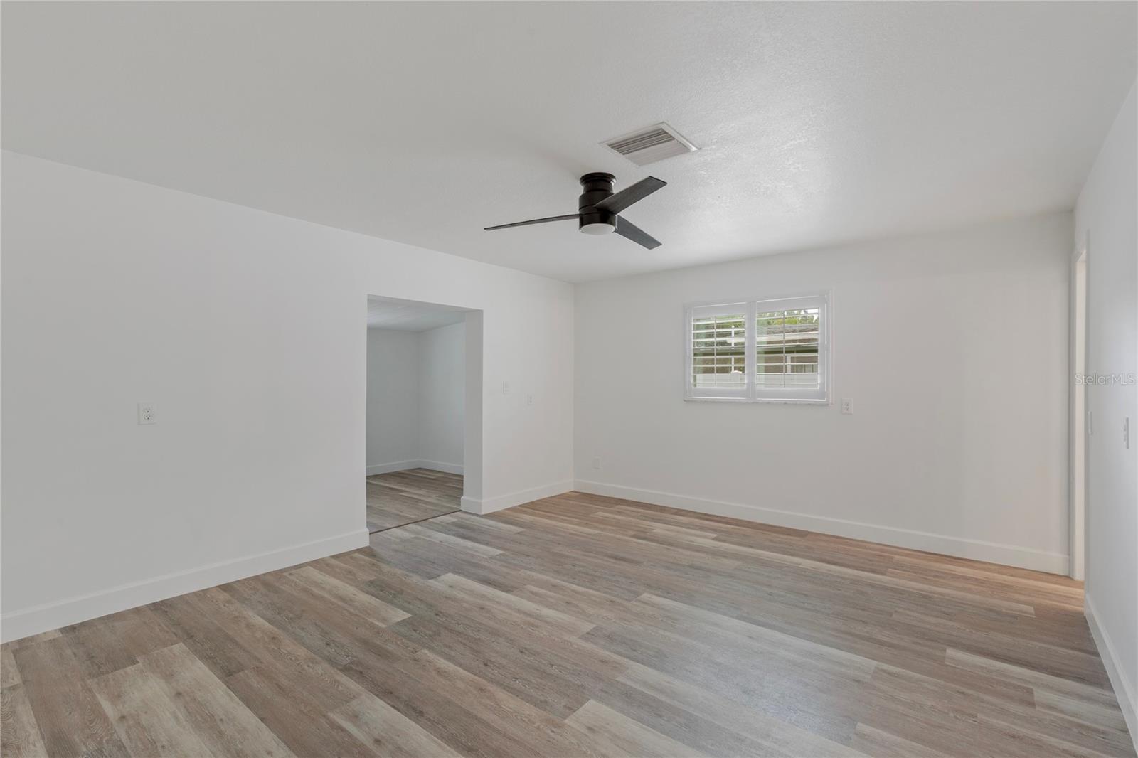 Ceiling Fans(s), Eat-in Kitchen, Kitchen/Family Room Combo, Living Room/Dining Room Combo, Open Floorplan, Primary Bedroom Main Floor, Solid Surface Counters, Split Bedroom, Stone Counters, Thermostat, Window Treatments